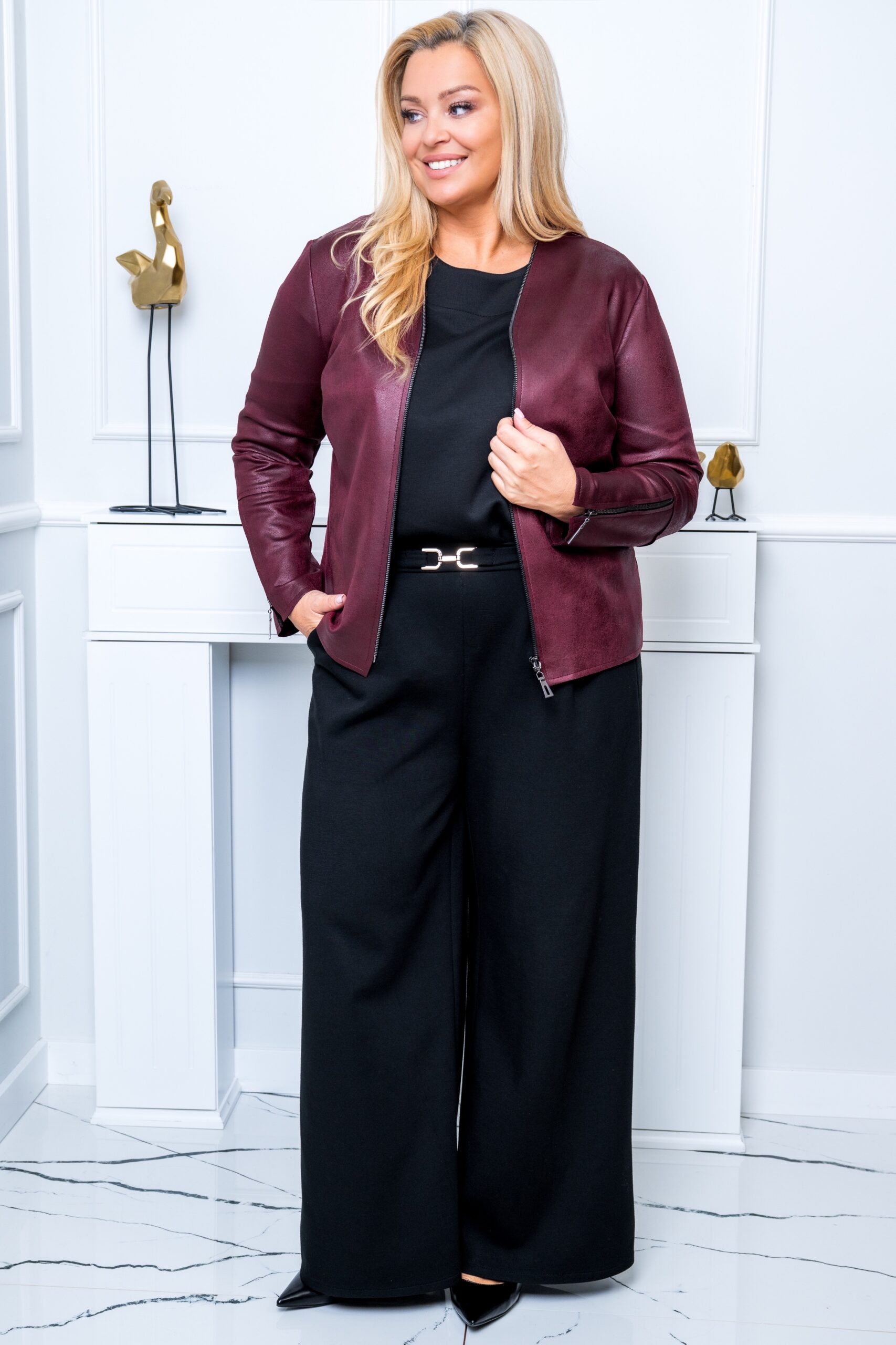 Kurteczka żakiecik CAMELLIA EkoSkóra burgundowa Plus Size 44-56
