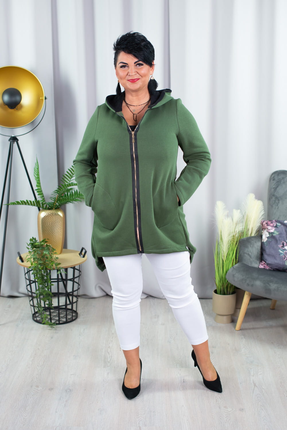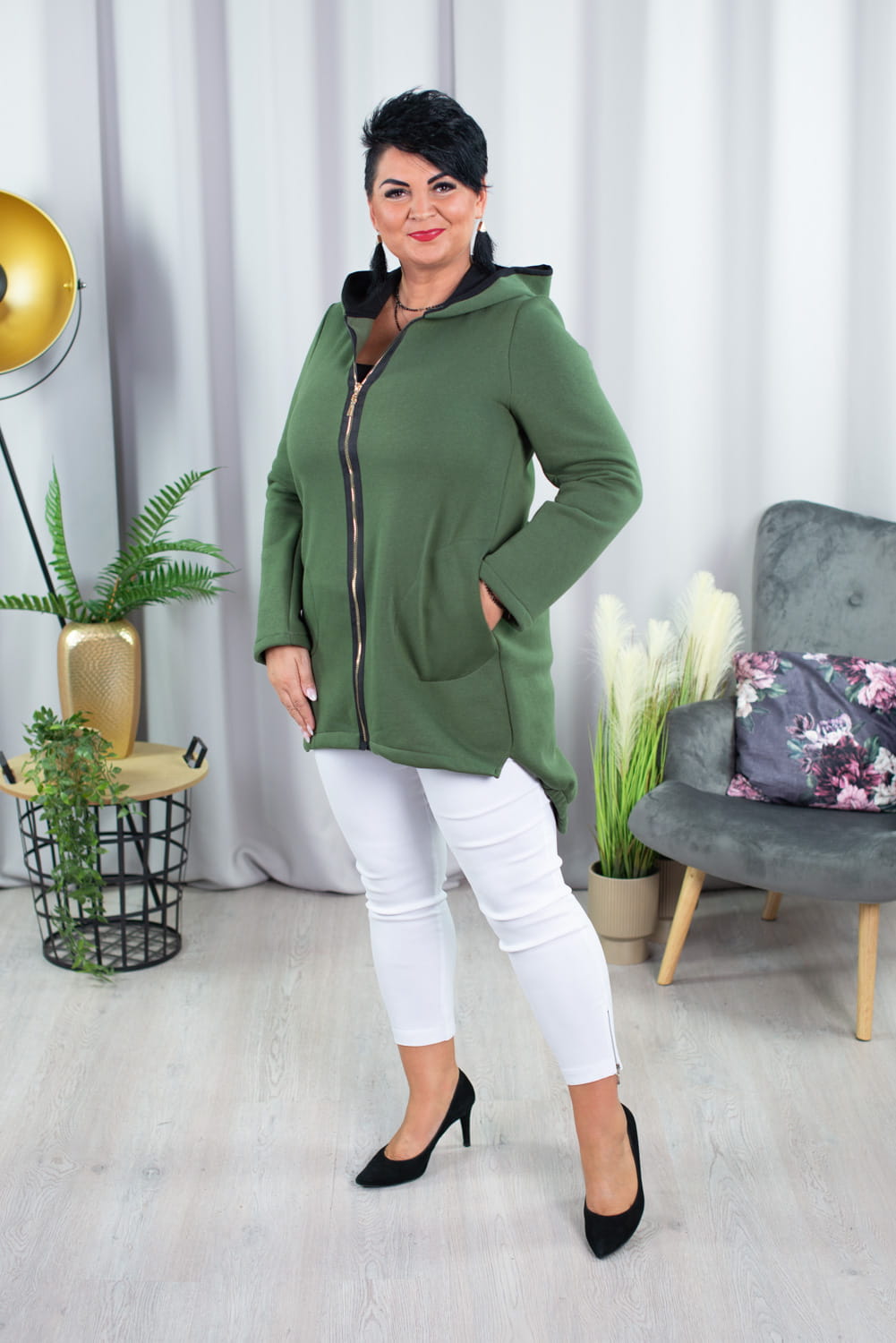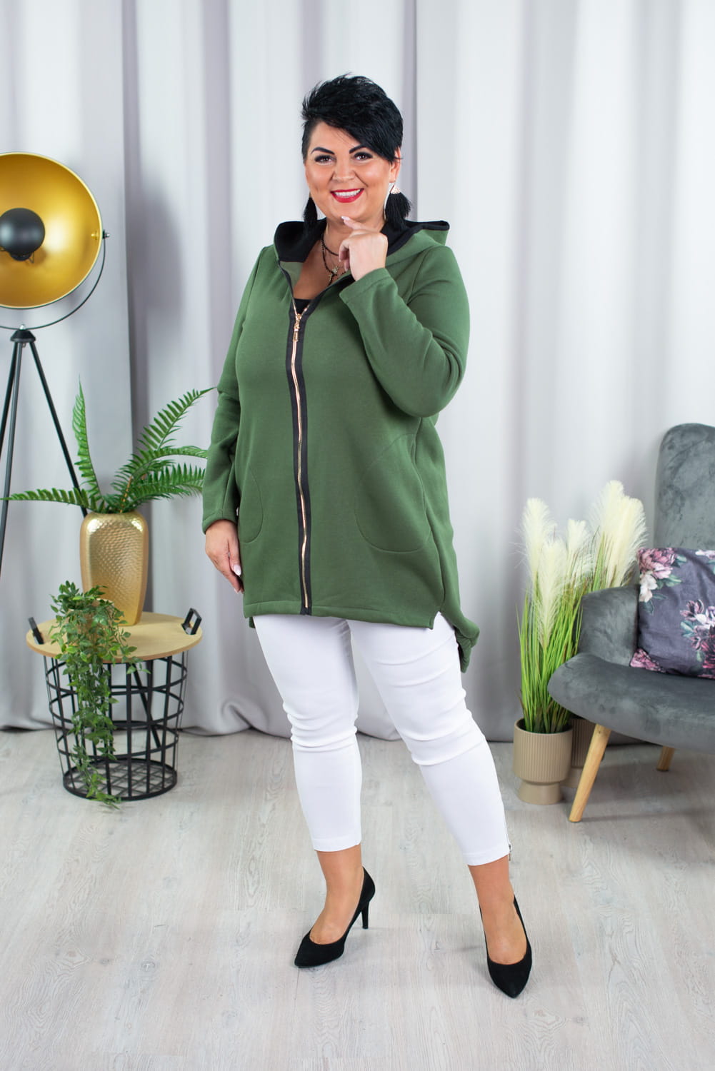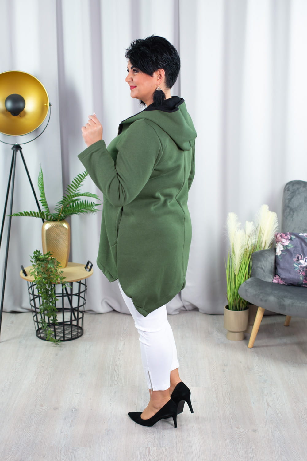 Asymetryczna Ocieplana Bluza PORSHiA khaki Plus Size 44-54