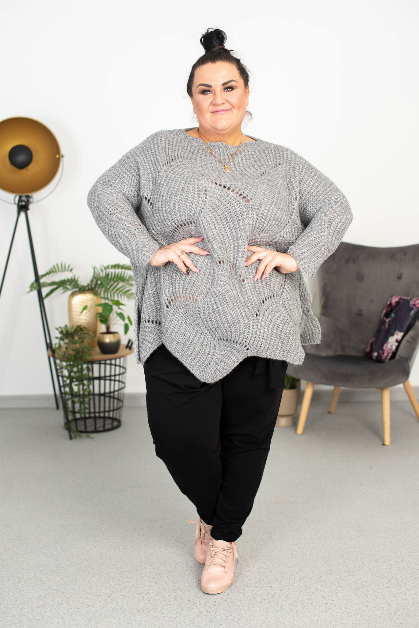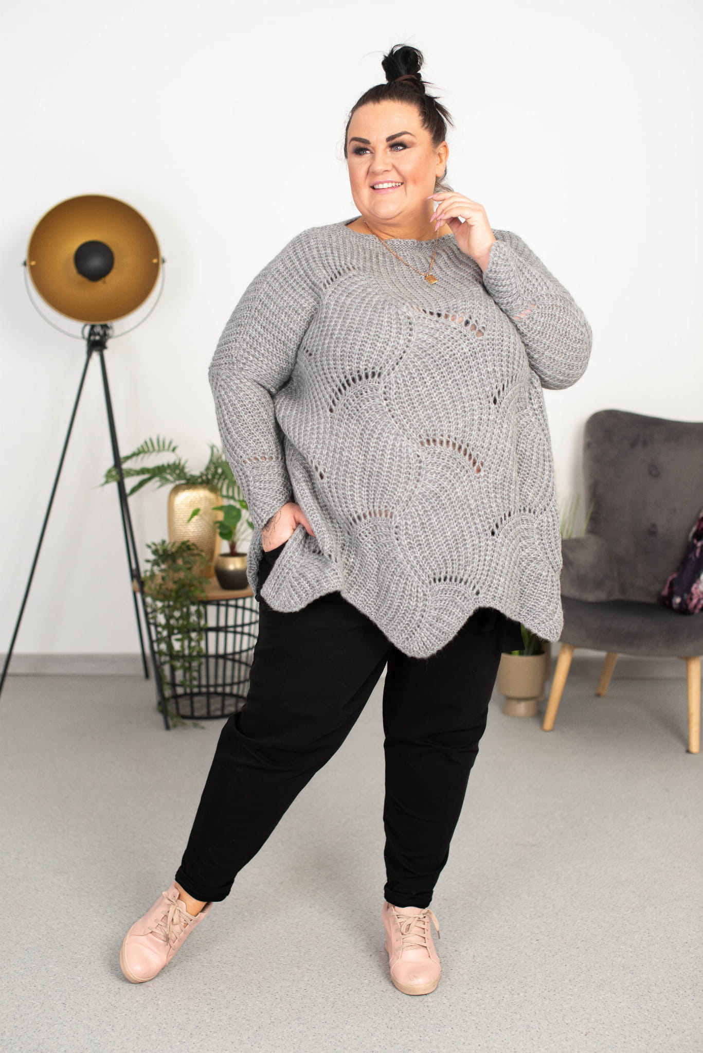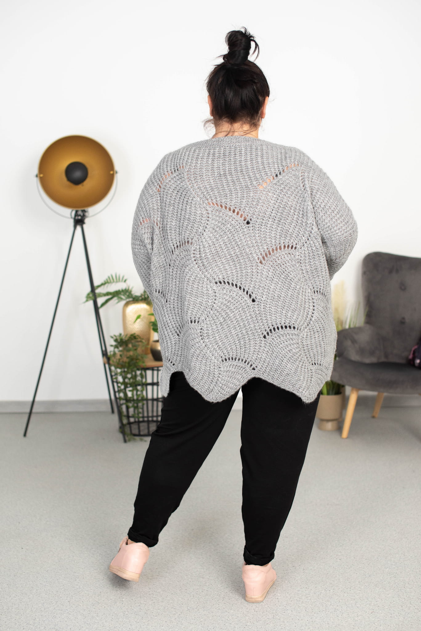 Ażurowy Sweter Oversize ELISE melanż Plus Size 46/54