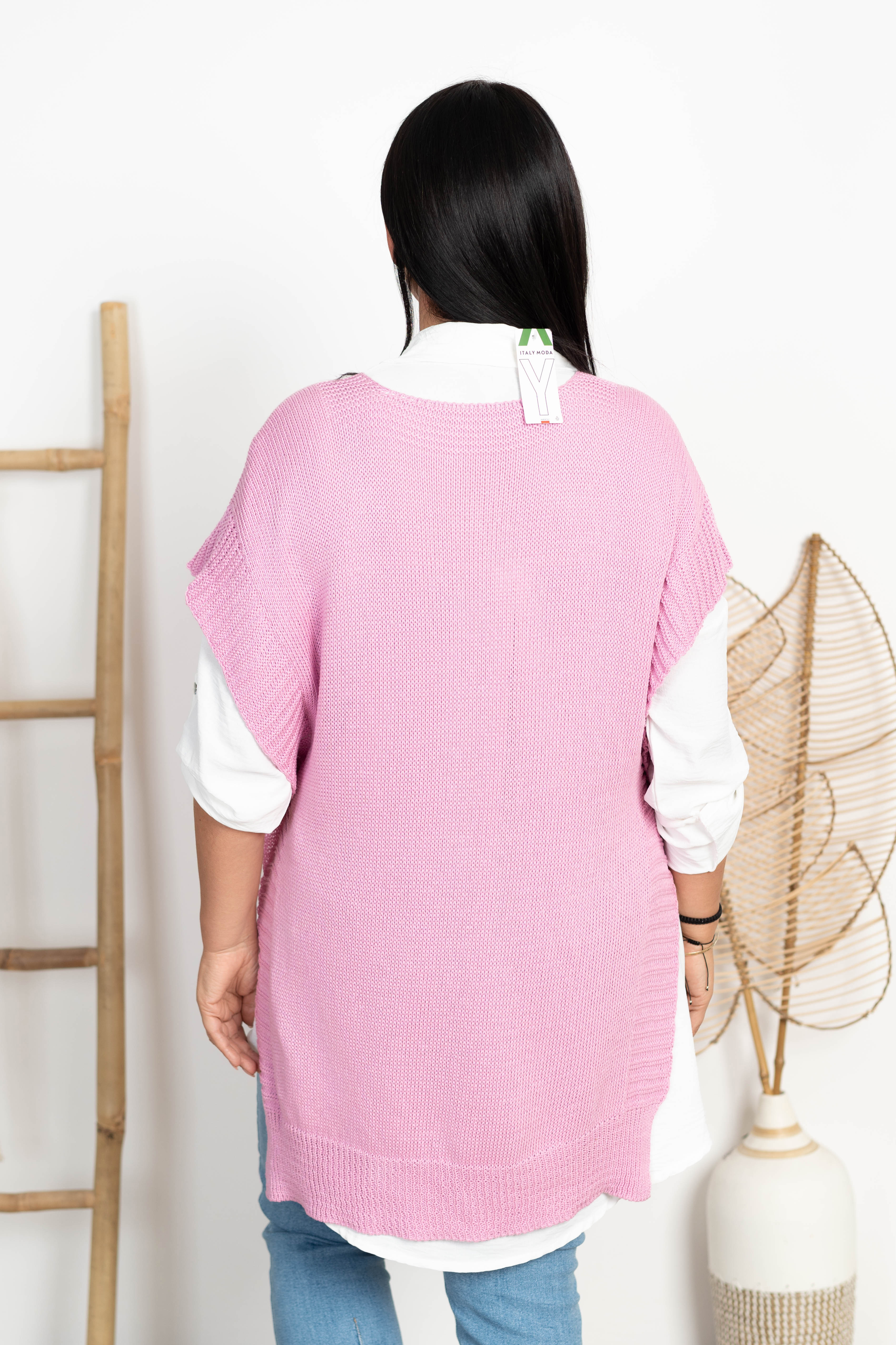 Biała Koszula ze sweterkiem MAJKA puder Plus Size 44/50