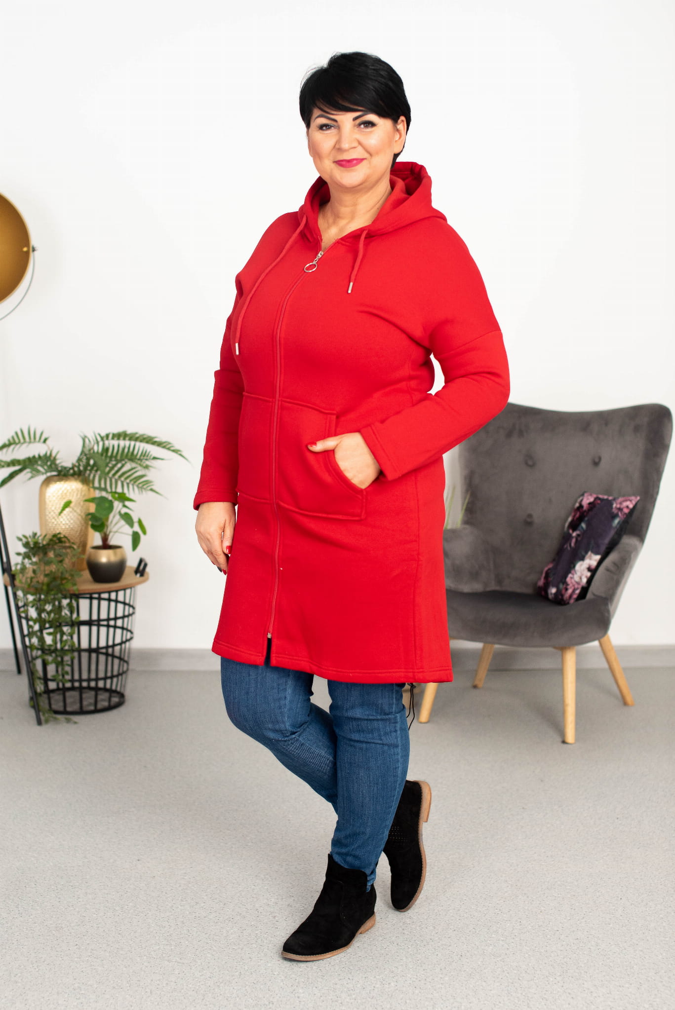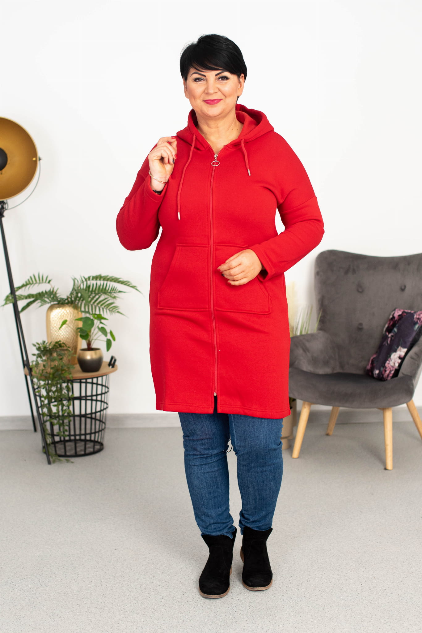 Bluza ocieplana na suwak KORINA czerwona Plus Size 44-48