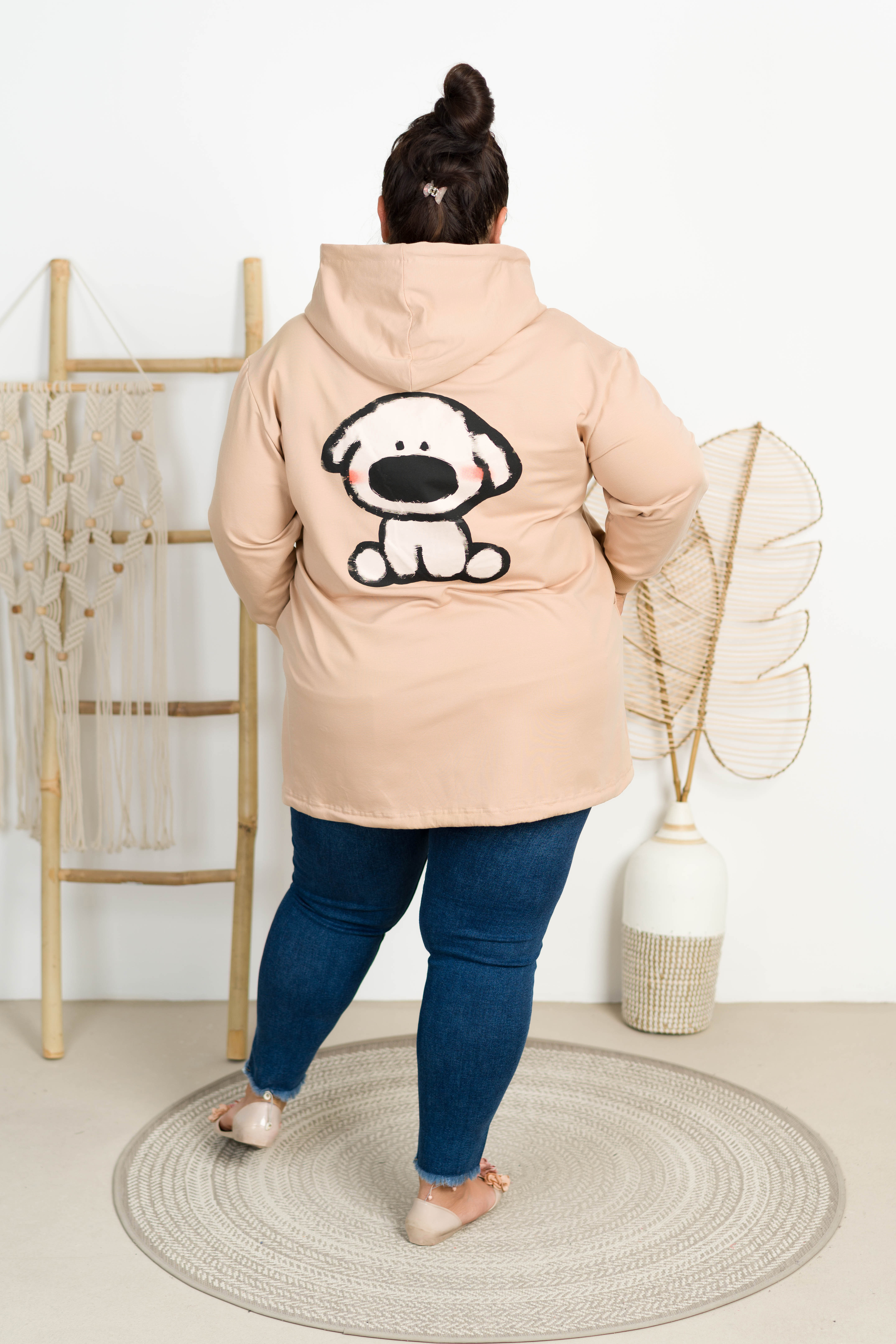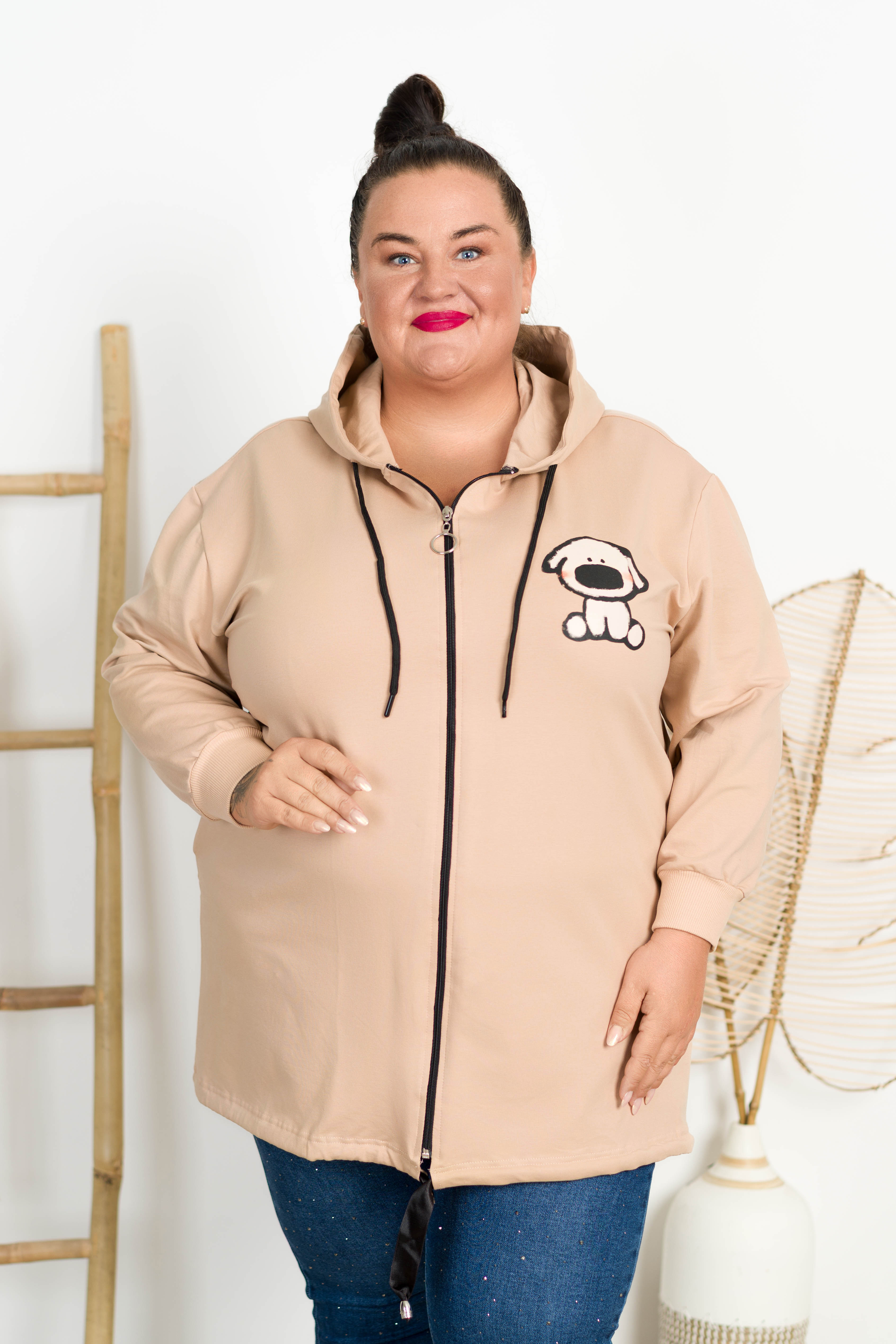 Bluza z kapturem na suwak DELTA PIESEK beżowa Plus Size 48/54