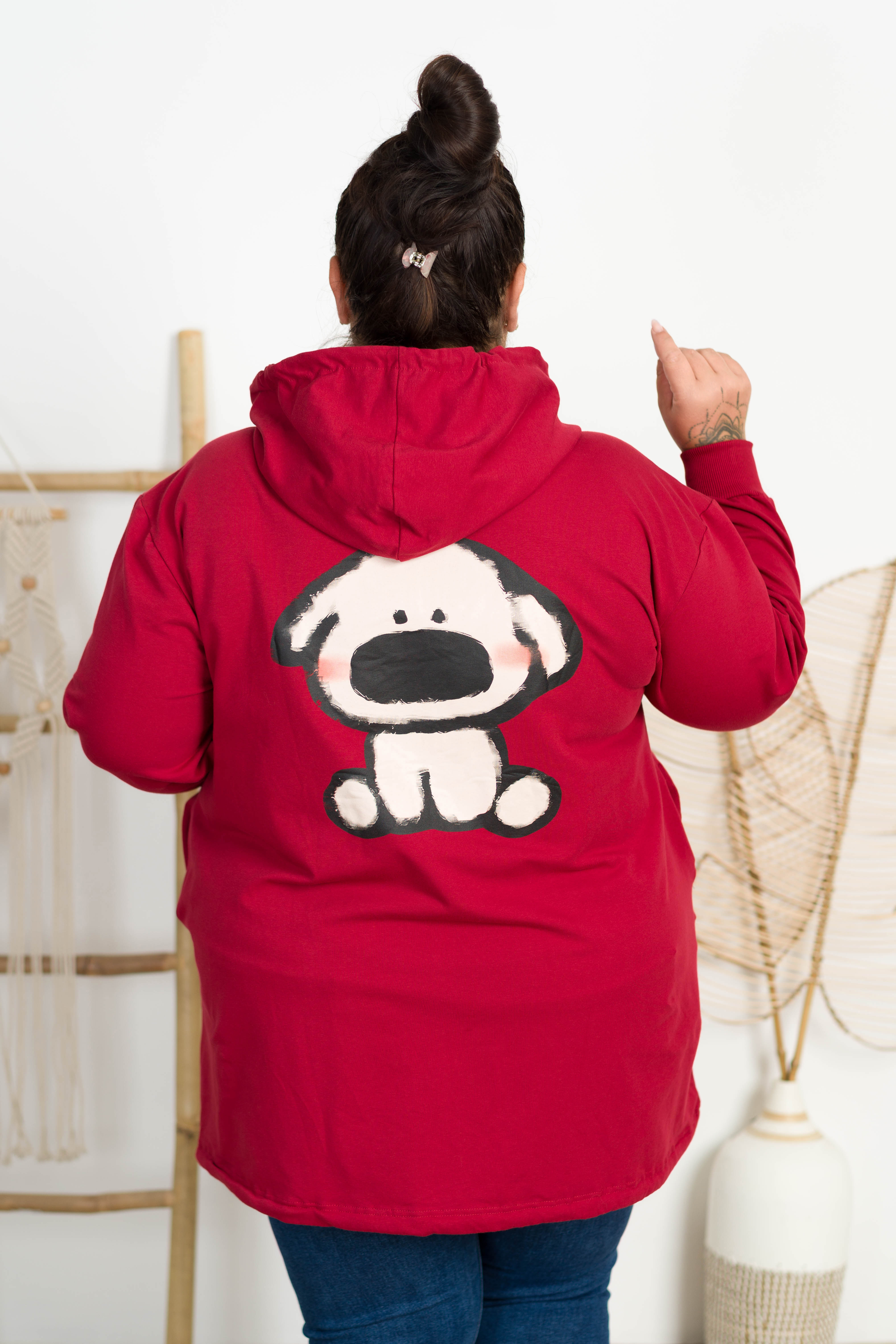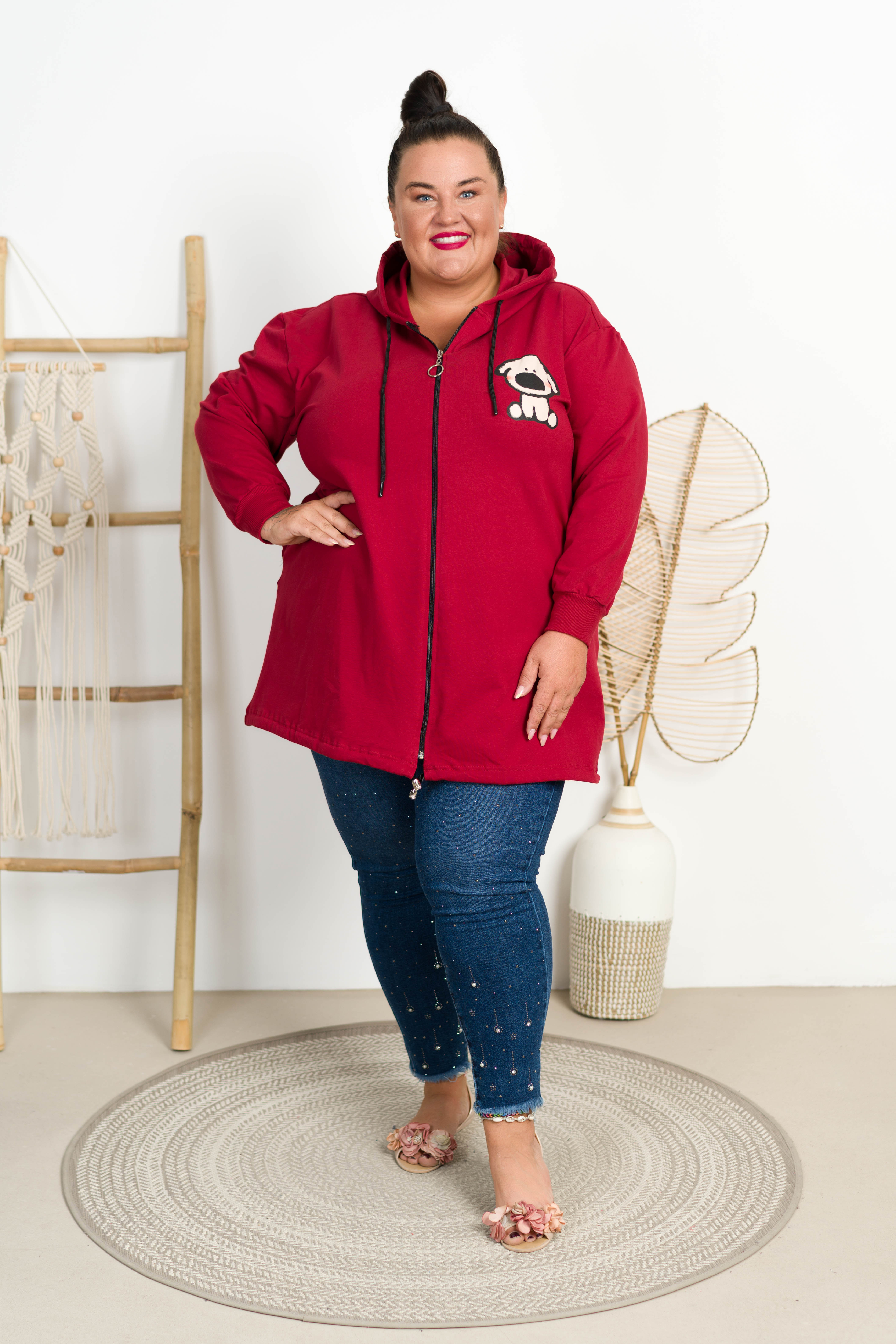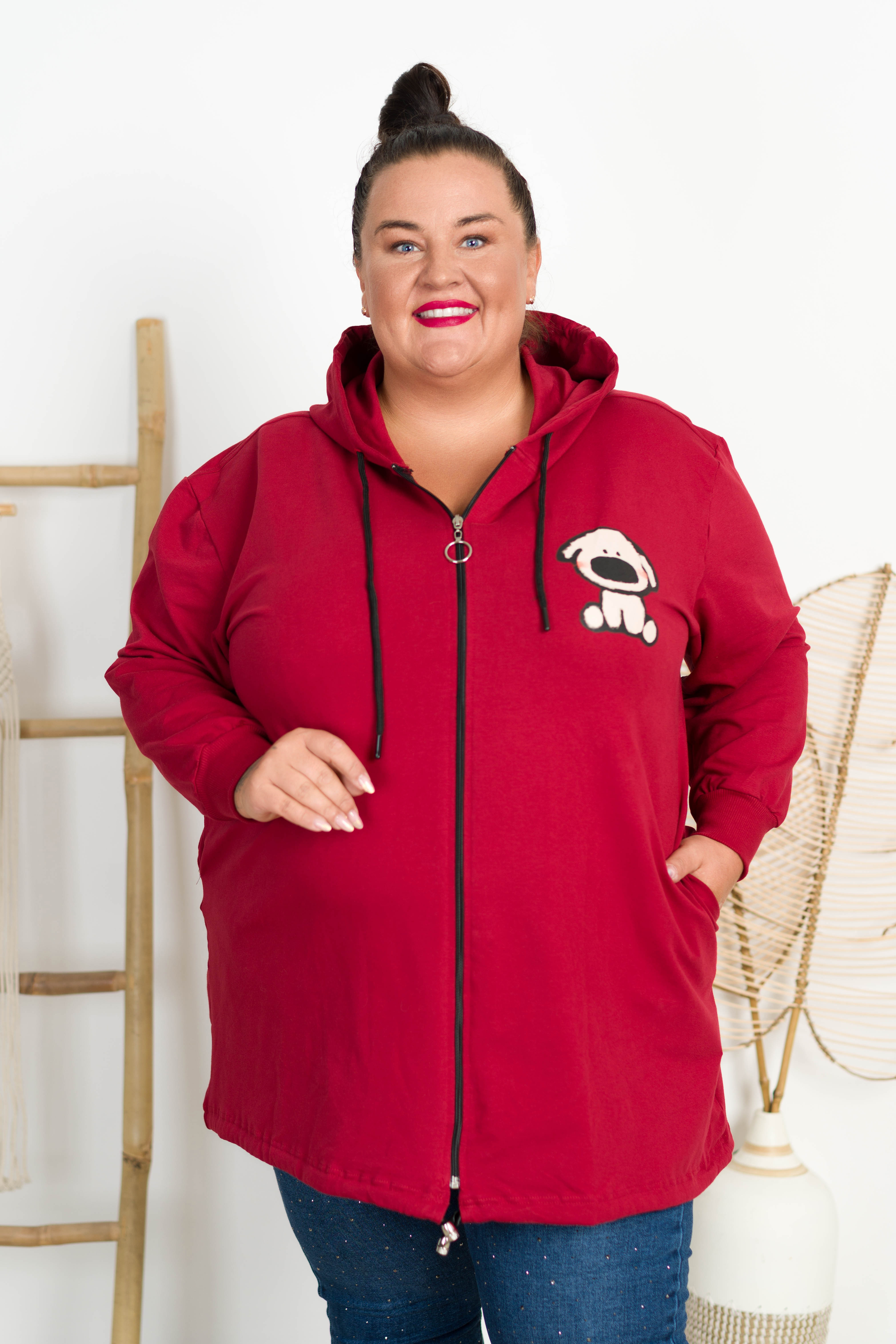 Bluza z kapturem na suwak DELTA PIESEK bordo Plus Size 48/54