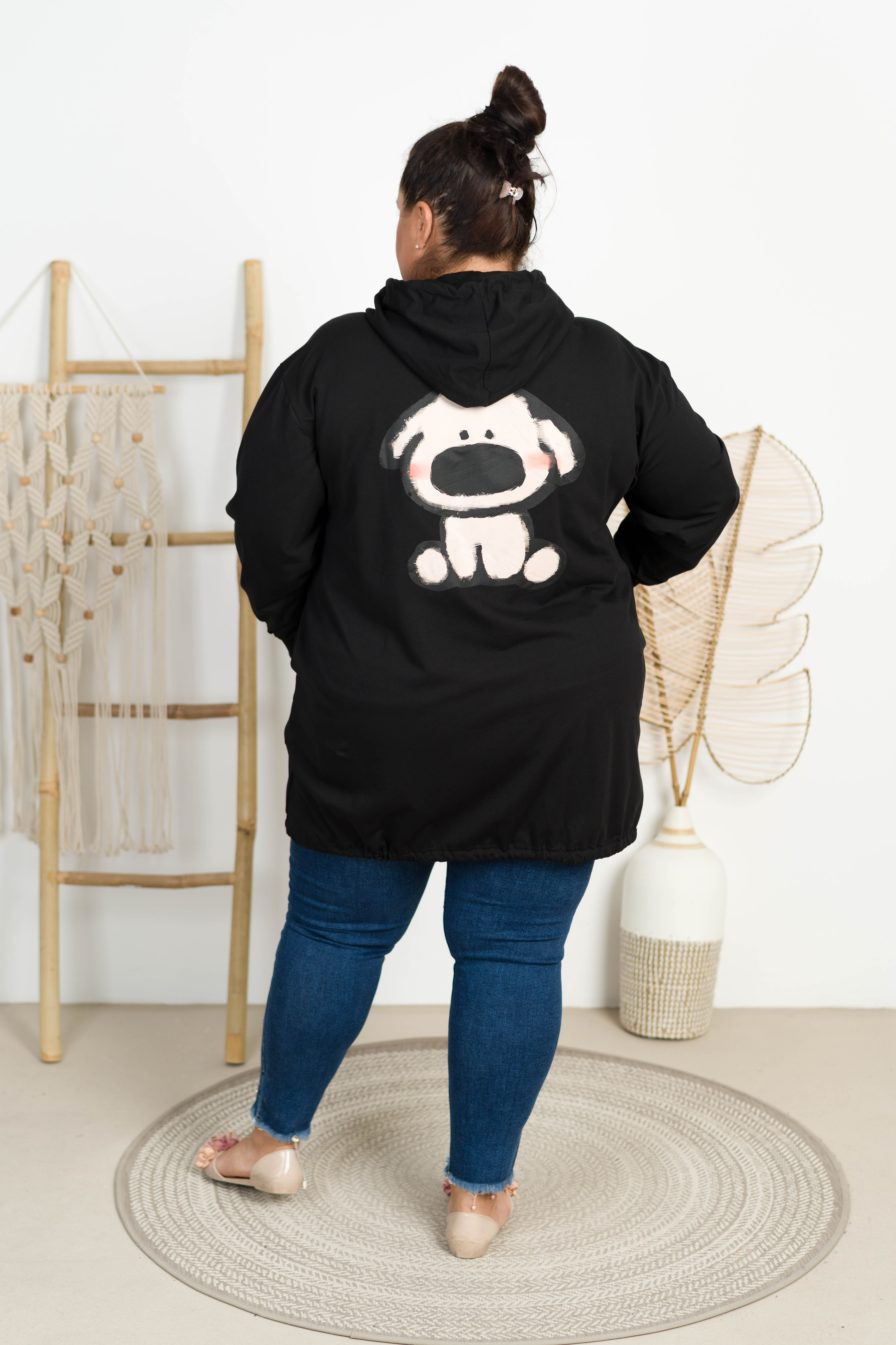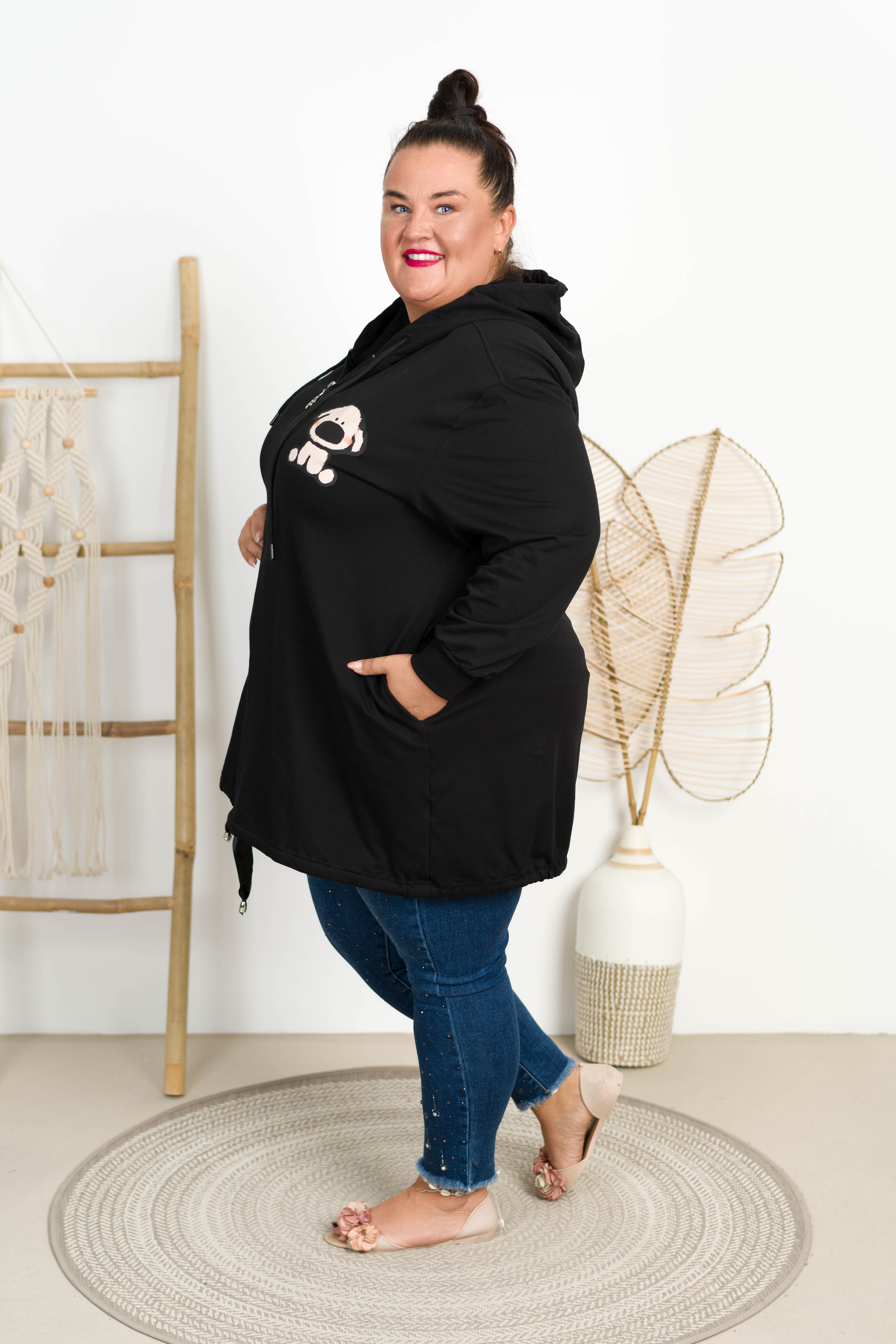 Bluza z kapturem na suwak DELTA PIESEK czarna Plus Size 48/54