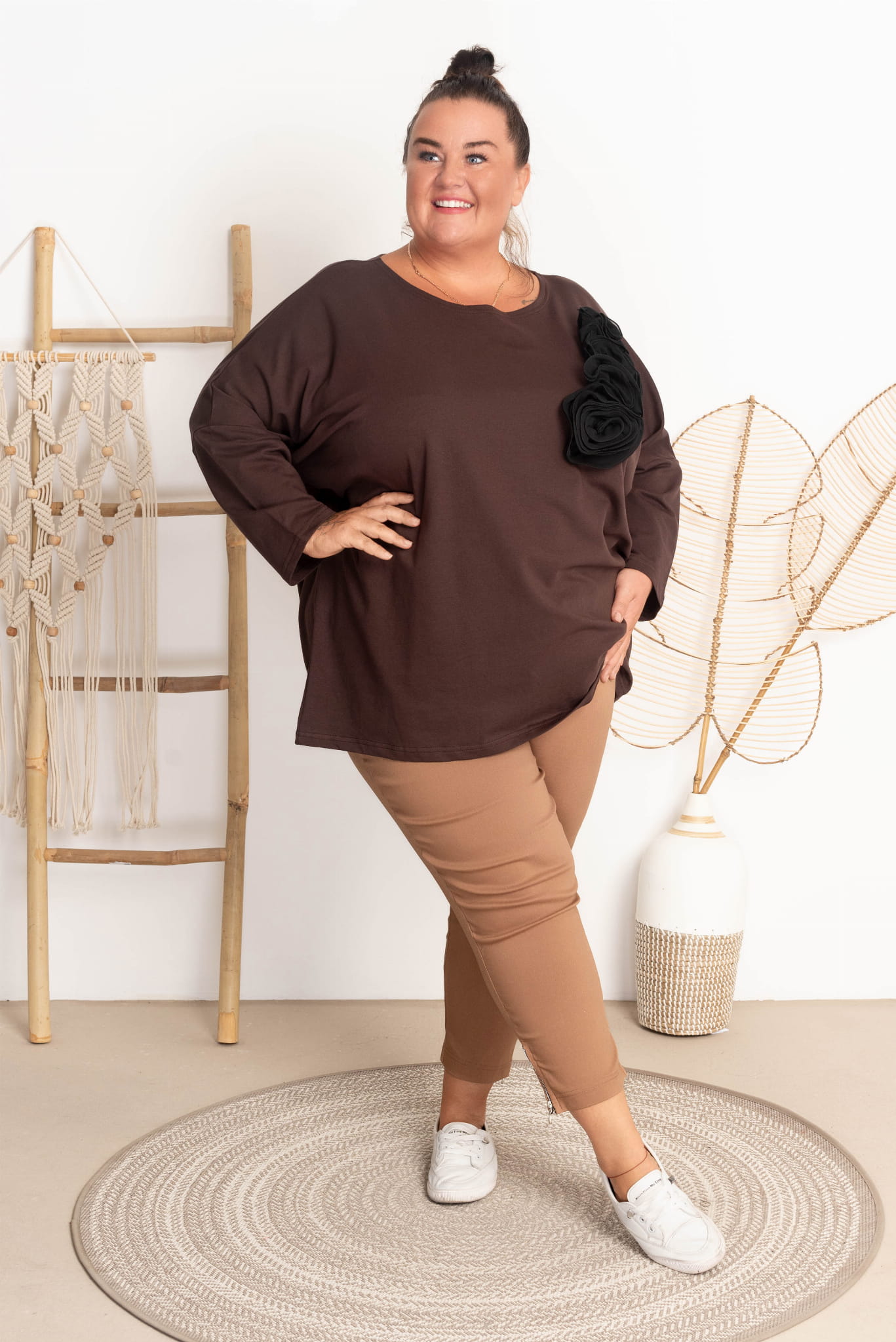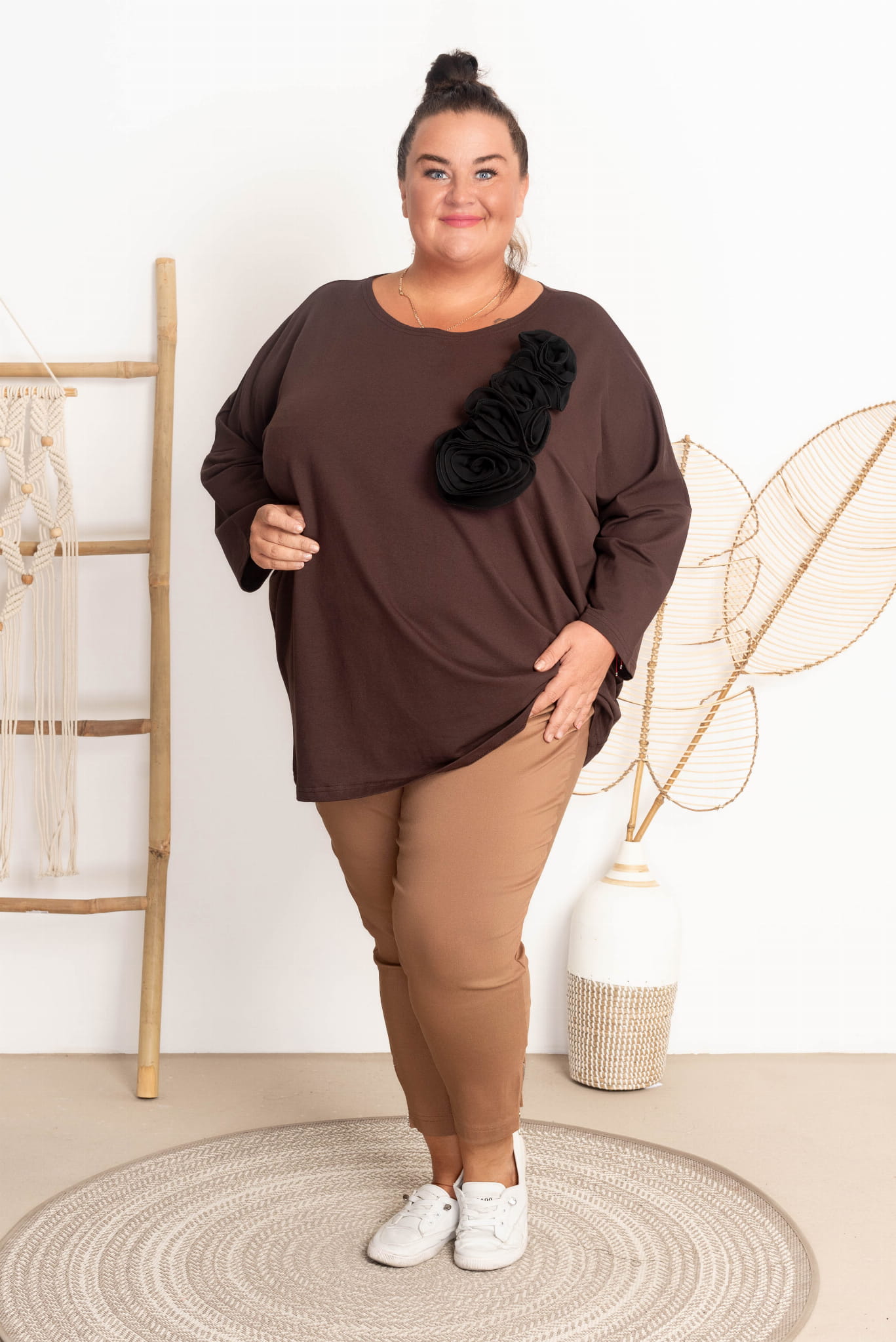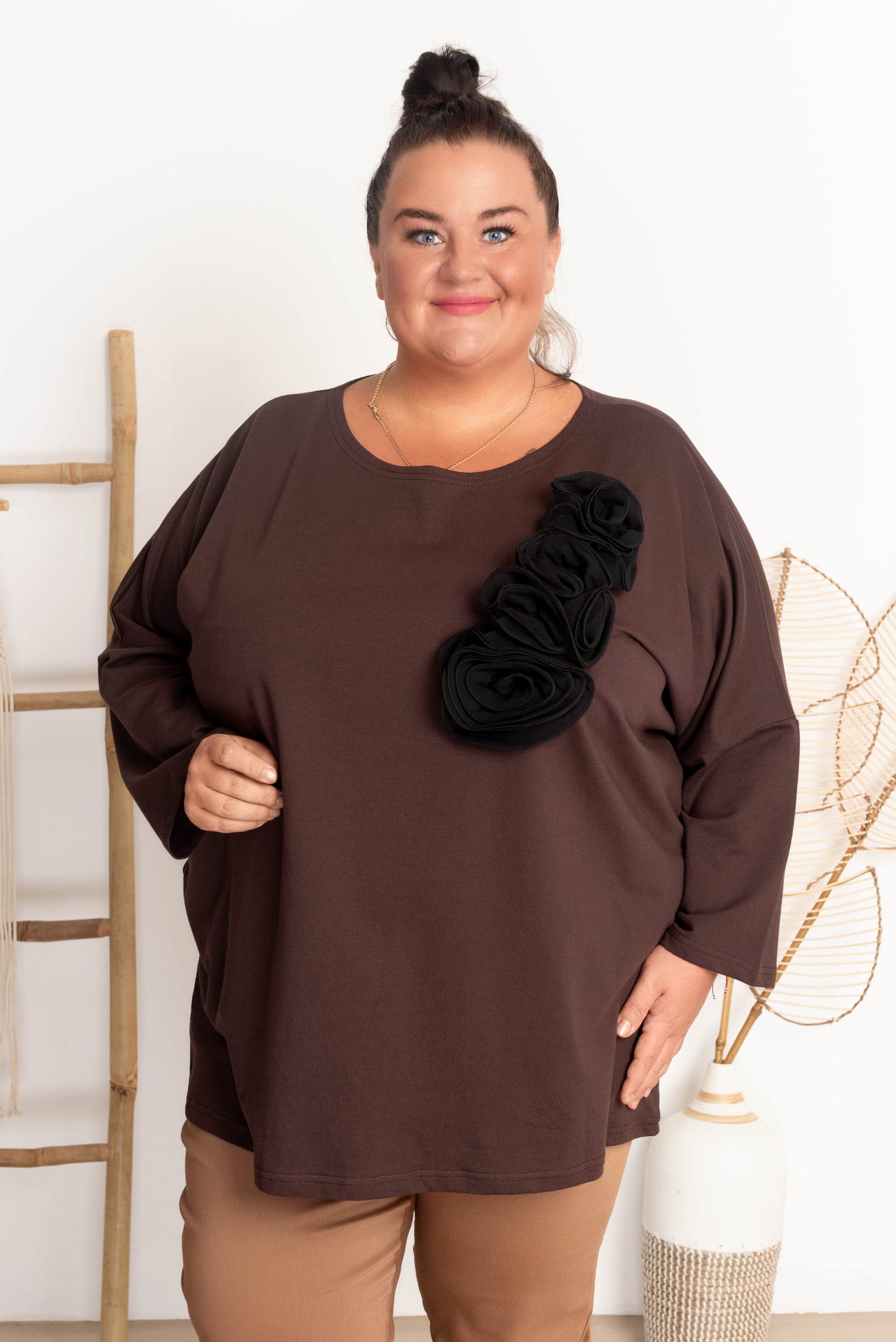 Bluza z kotylionem SELINA czekoladowa Plus Size 48-58
