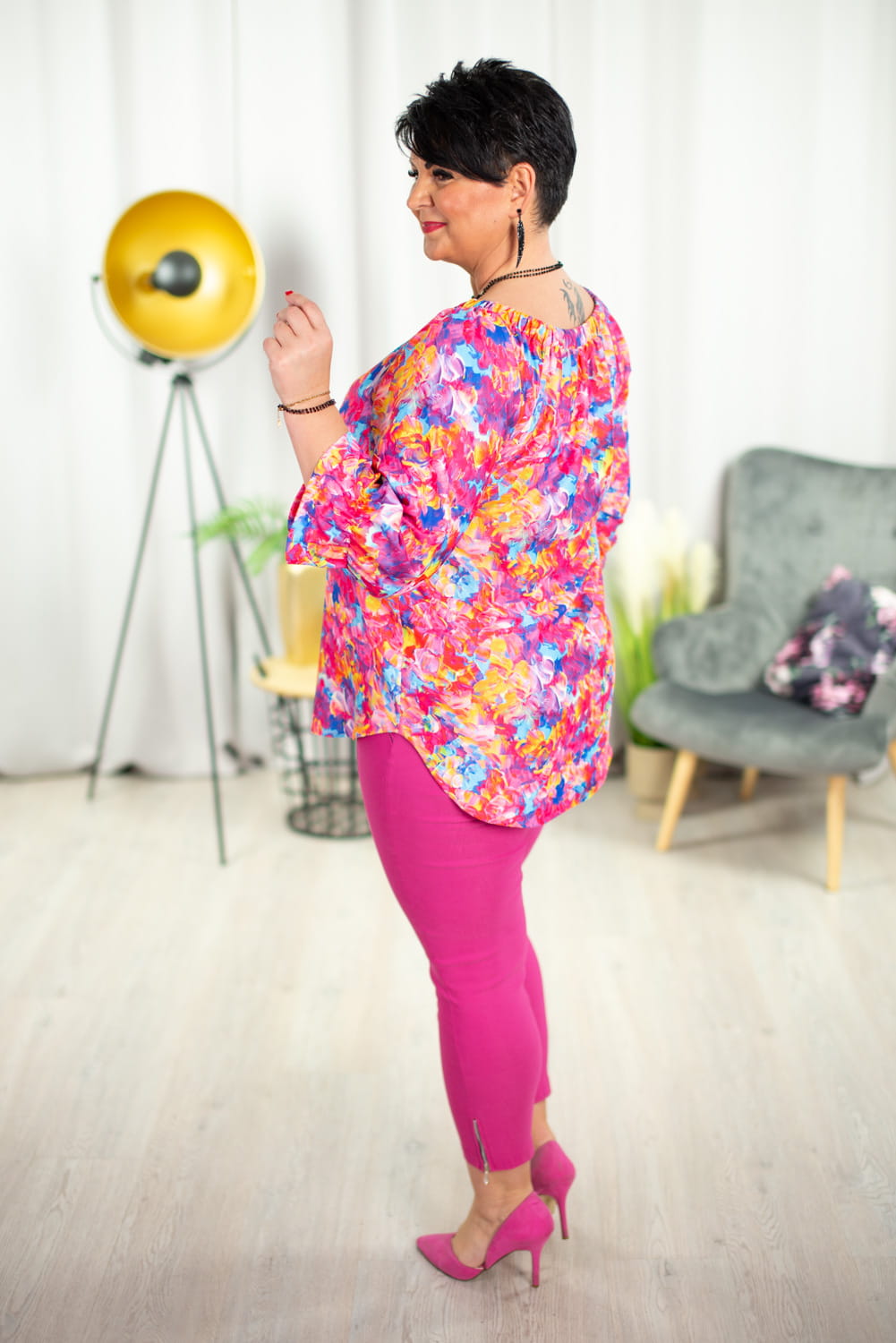 Bluzka Hiszpanka VERA kwiaty róż Plus Size 44-52