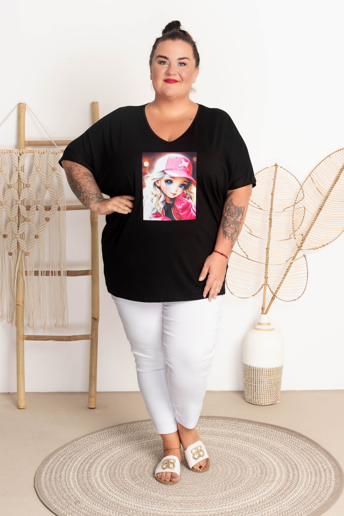 Bluzka Vneck z laleczką #2 COLIN czarna Plus Size 50-58