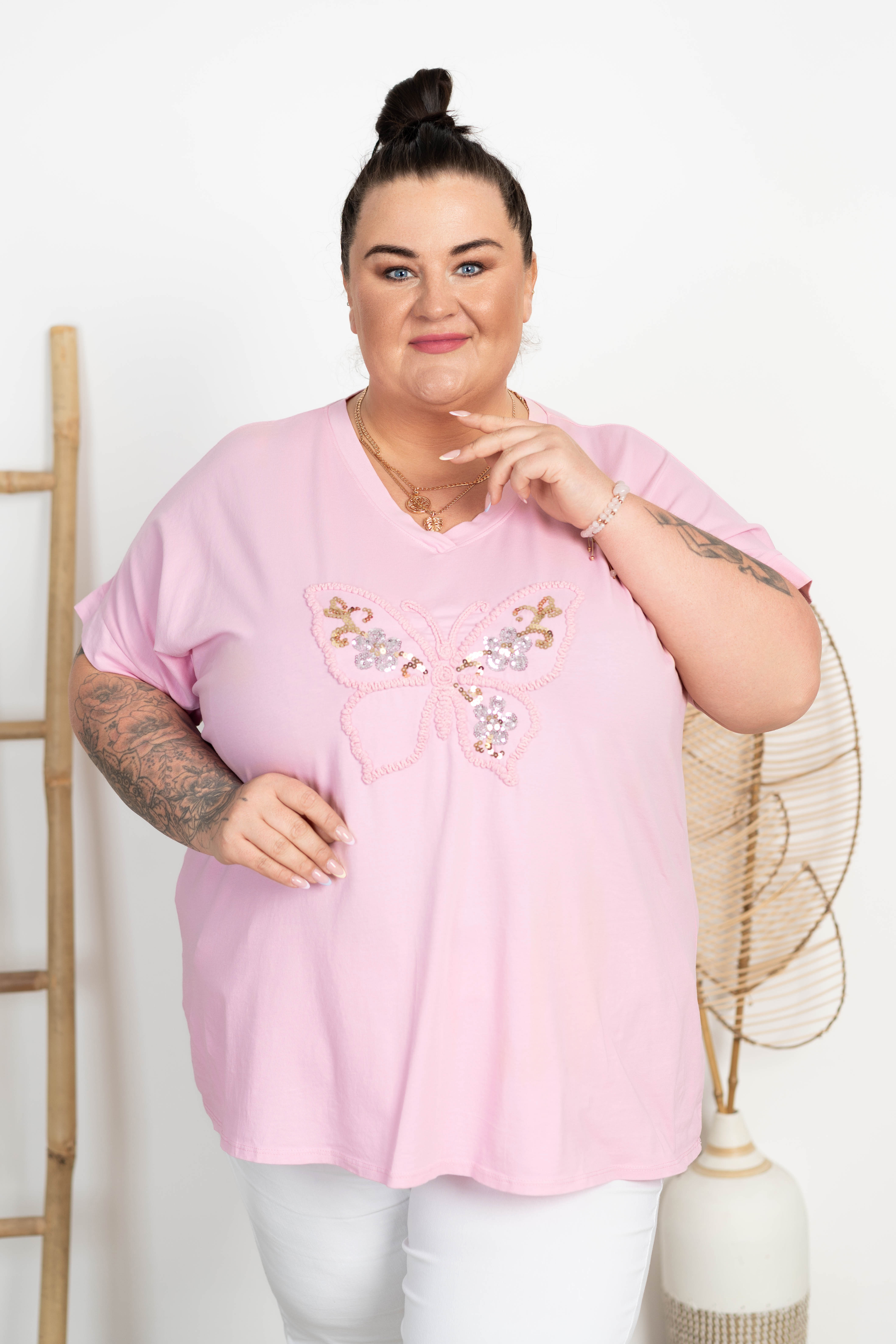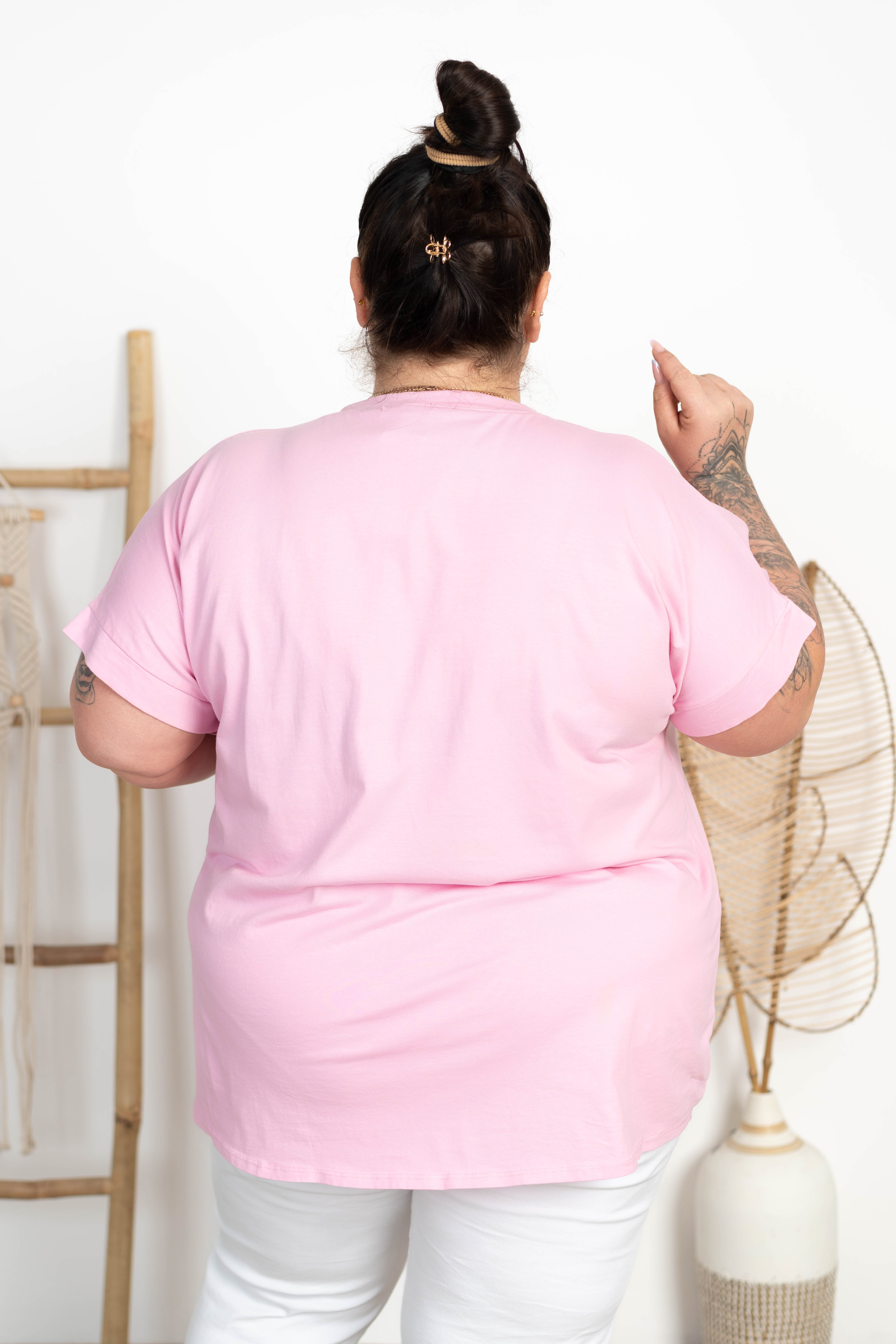 Bluzka bawełniana Dekolt V MAGDA pudrowa Plus Size 50/56