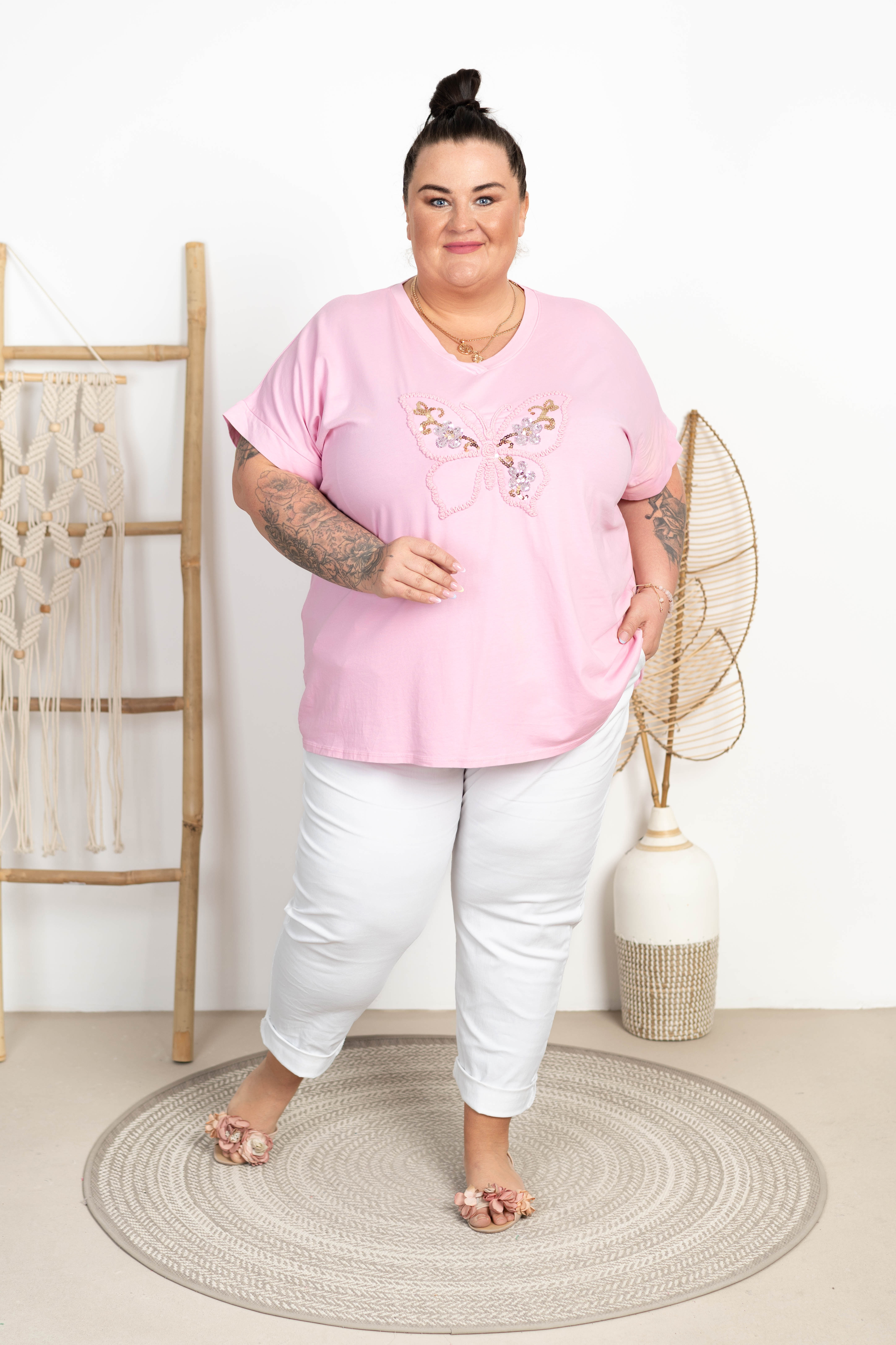 Dla Pań Plus Size to świetna propozycja do wąskich spodni, jeansów lub spódnicy.