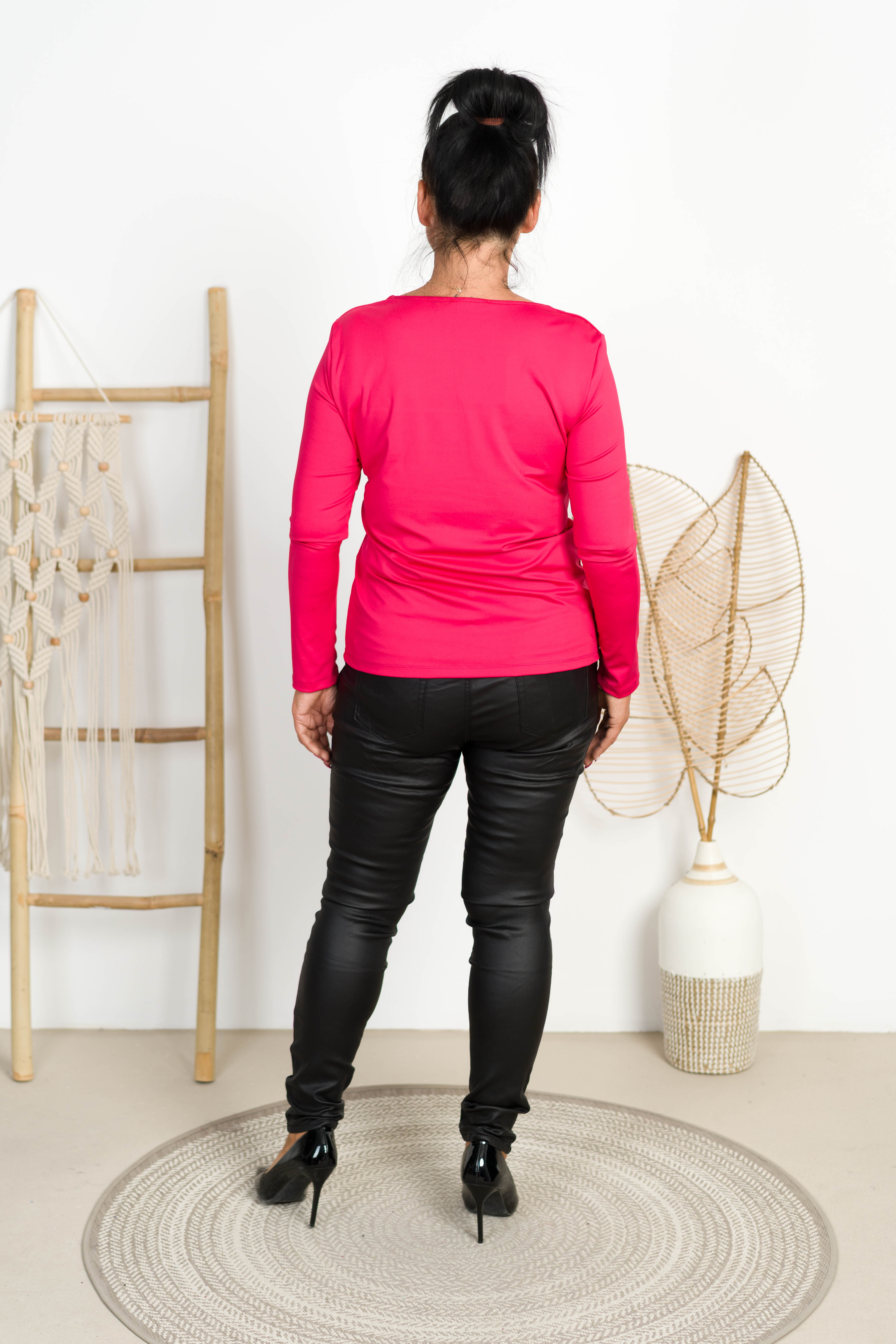 Bluzka z dekoltem EWA fuksja Plus Size 42/48