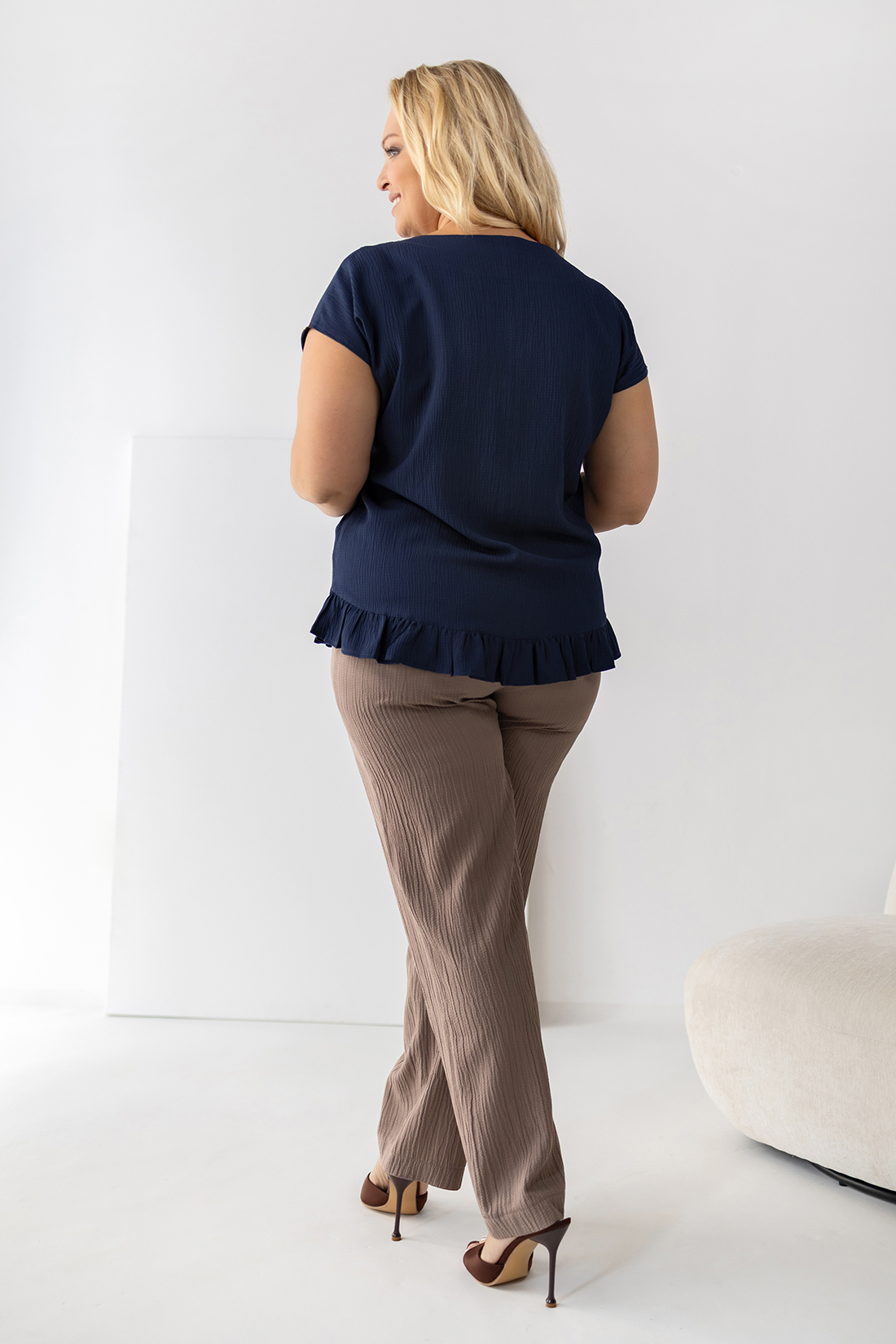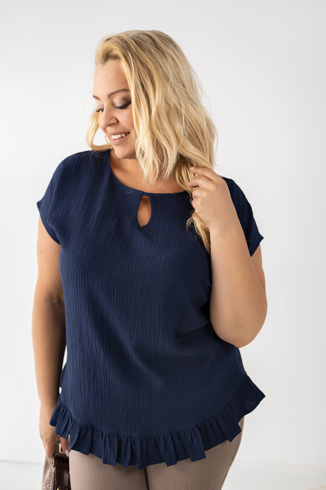 Bluzka z falbanką ROZALIA granatowa Plus Size 44-58