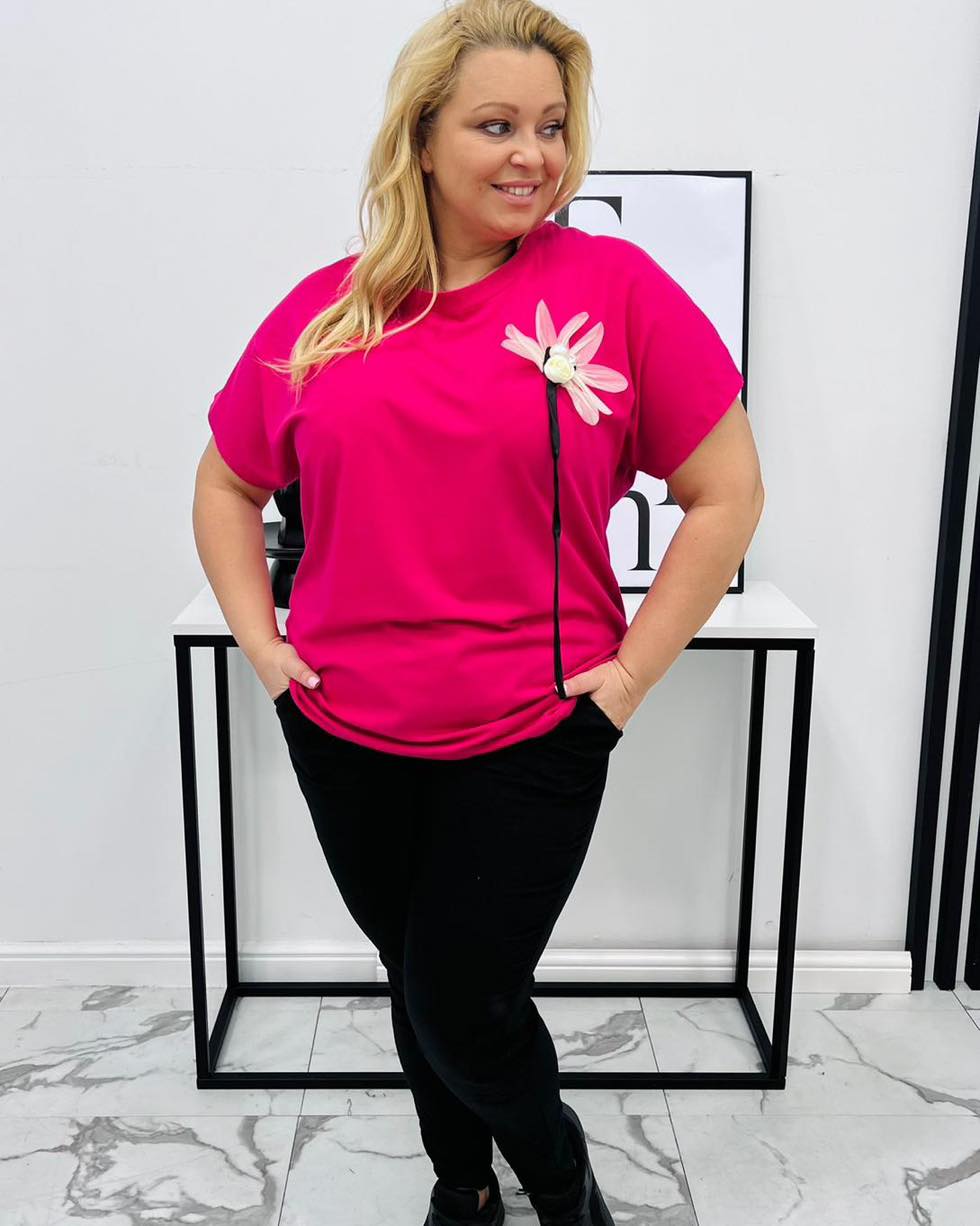 Bluzka z kwiatkiem ZIZU fuksja Plus Size 50-56