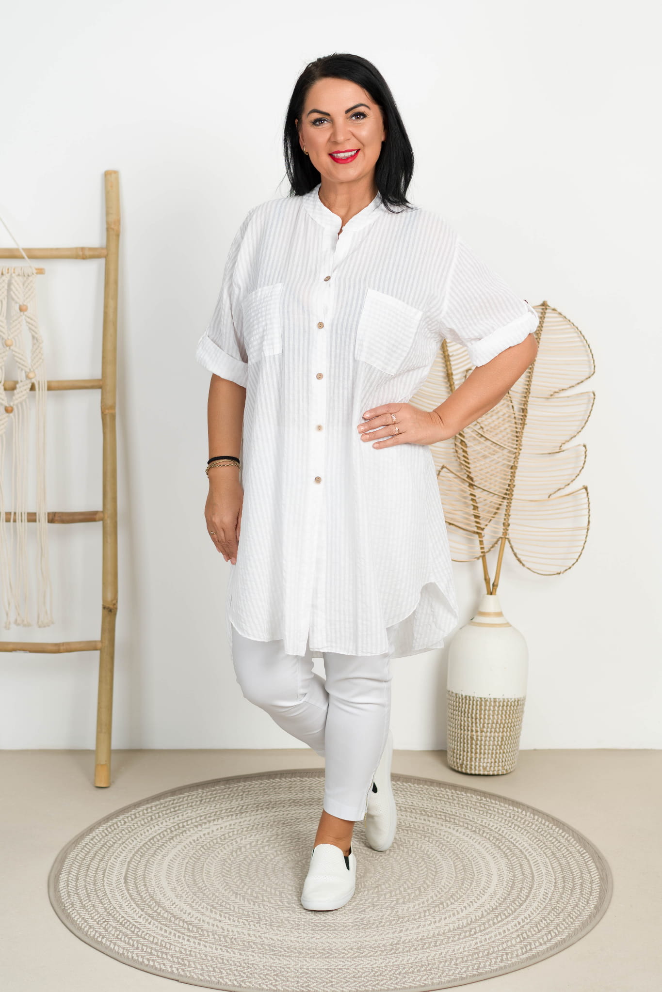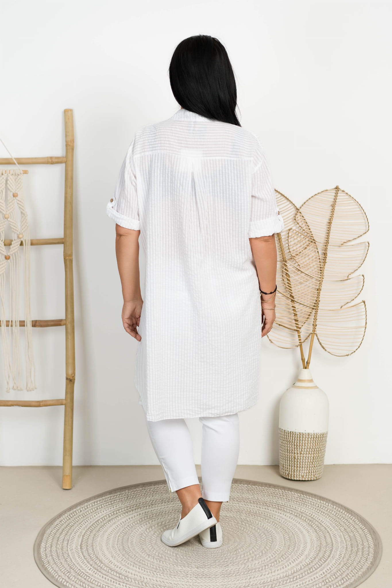 Długa Koszula w paski SAMI biała Plus Size 44/50