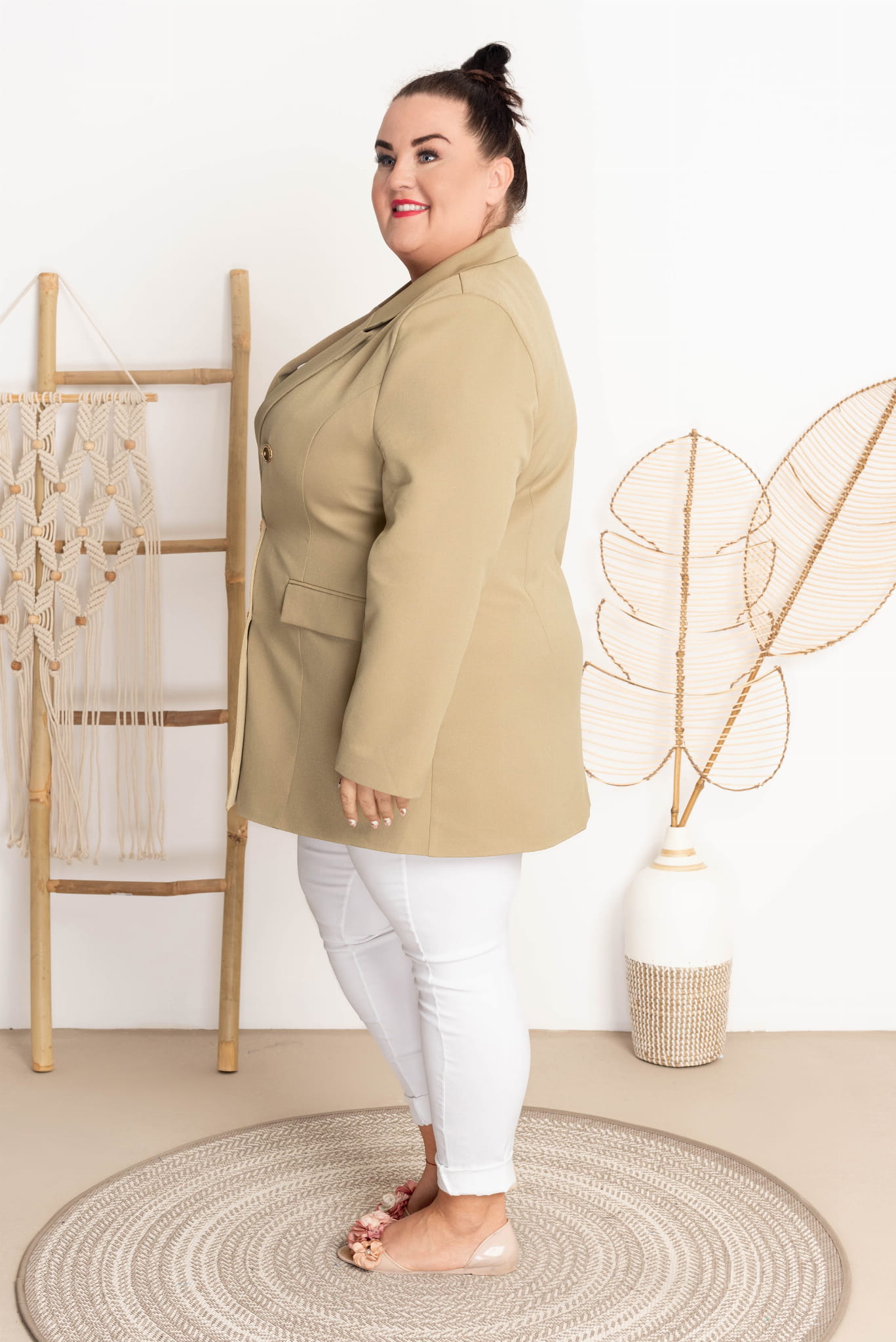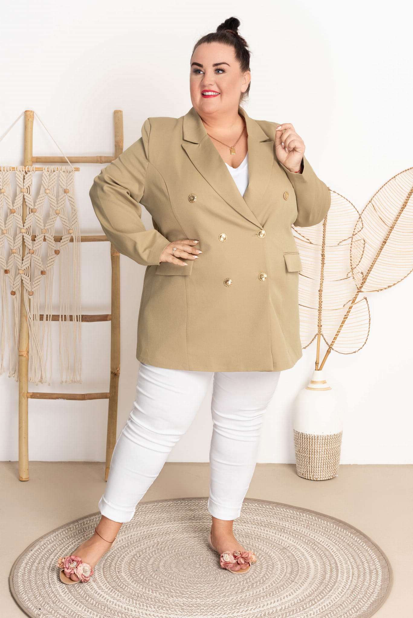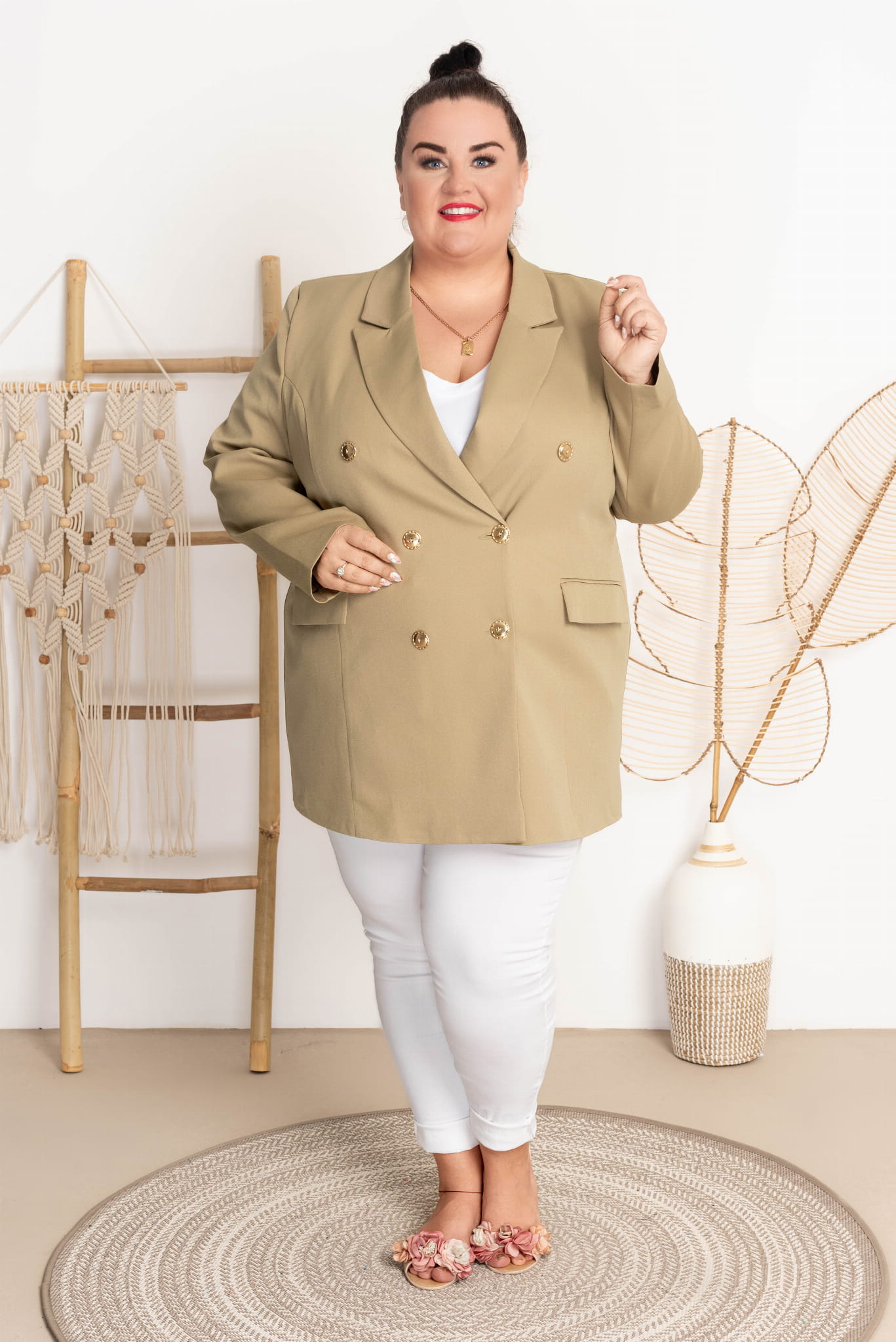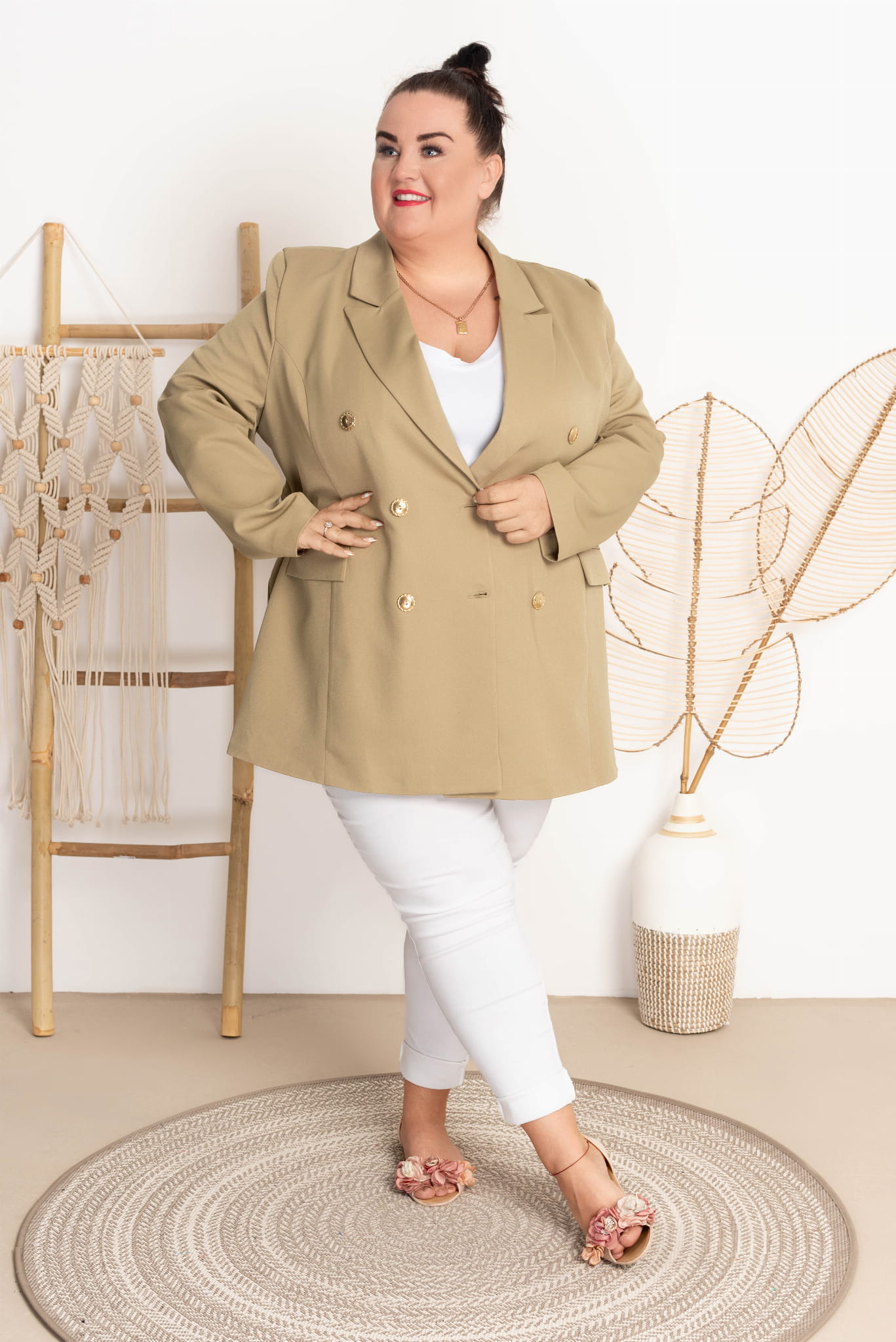 Długa Marynarka z guzikami MALAGA oliwka Plus Size 44-54