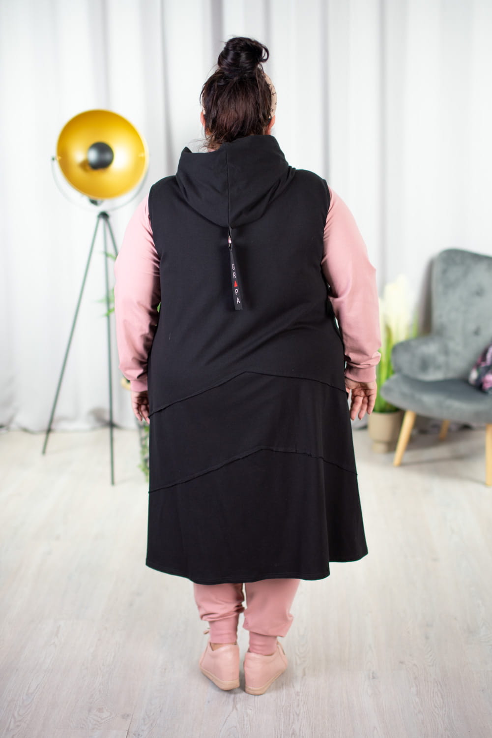 Długa Narzutka Kamizelka dresowa FLEX czarna Plus Size 44-54