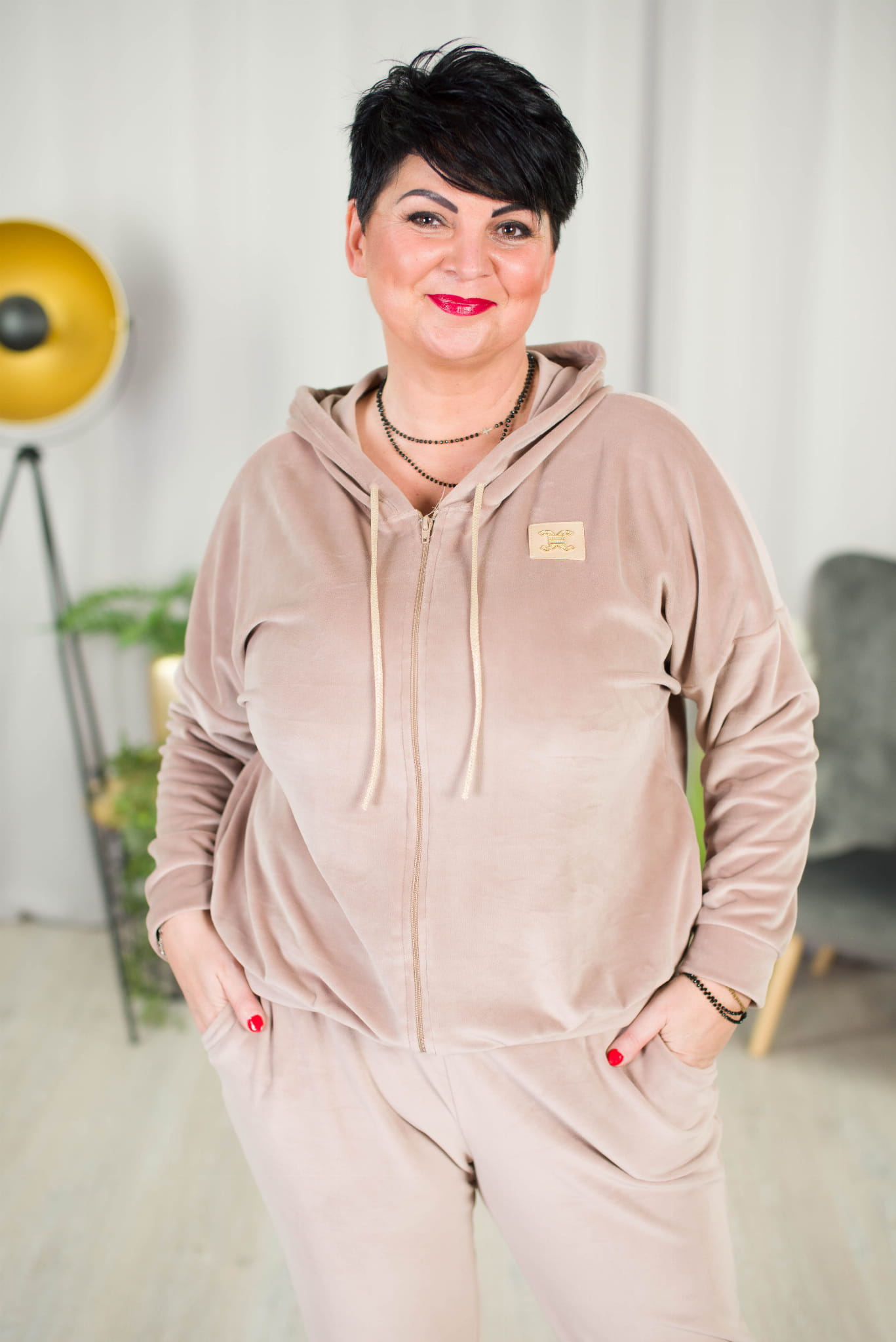 Dres welurowy z rozpinaną bluzą HARLEY beżowy Plus Size 42-50