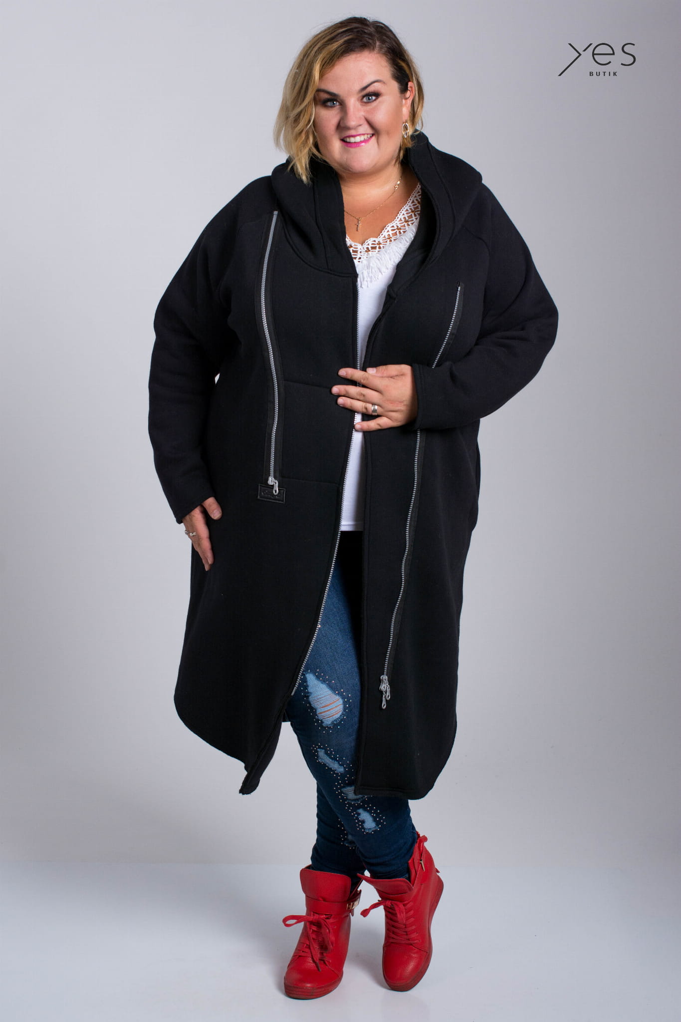 Płaszcz dresowy SYNC Plus Size - ciepły z dużym kapturem .