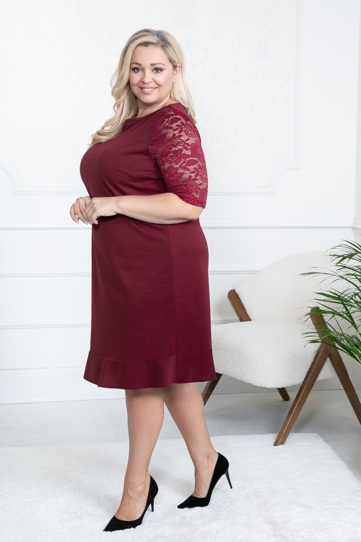 Elegancka Sukienka AVA bordo Plus Size 44-56