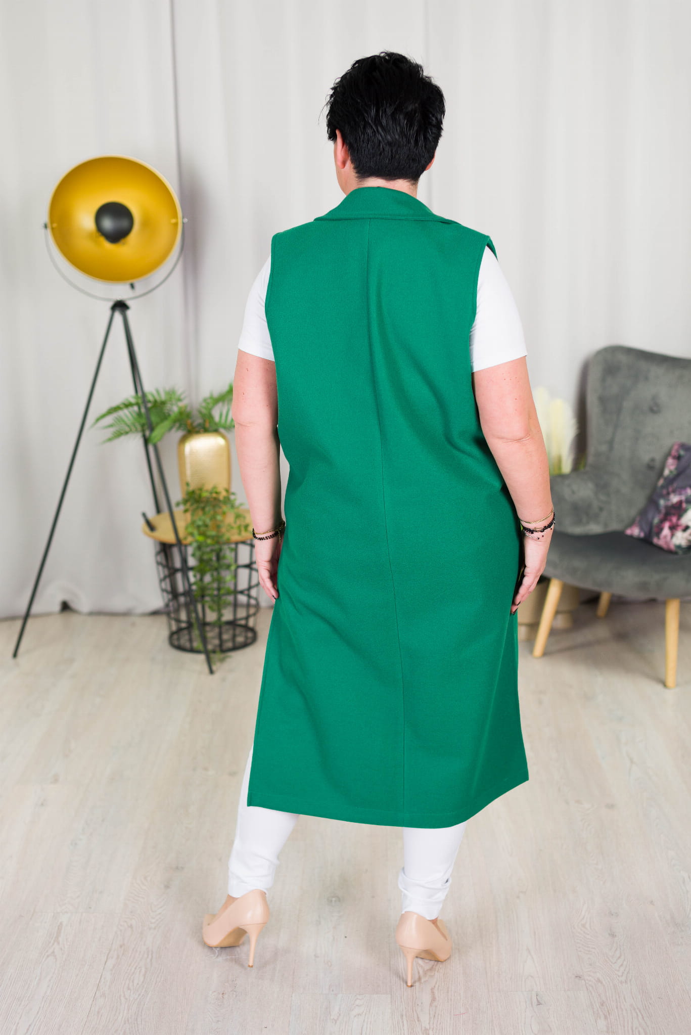 Kamizelka flauszowa z paskiem JUDY zielona Plus Size 44-52