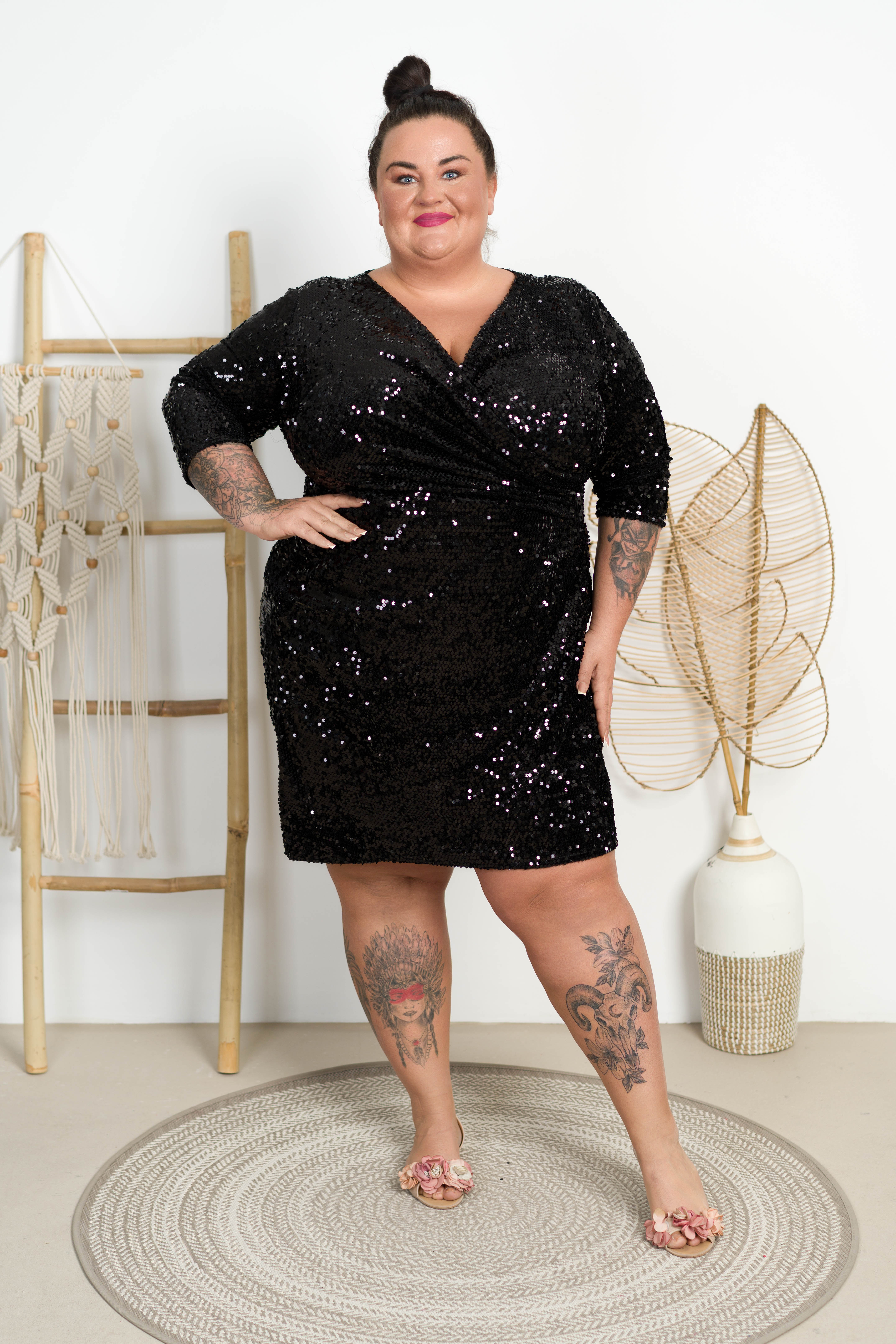 Kopertowa Sukienka cekinowa LUCKY czarna Plus Size 44/52