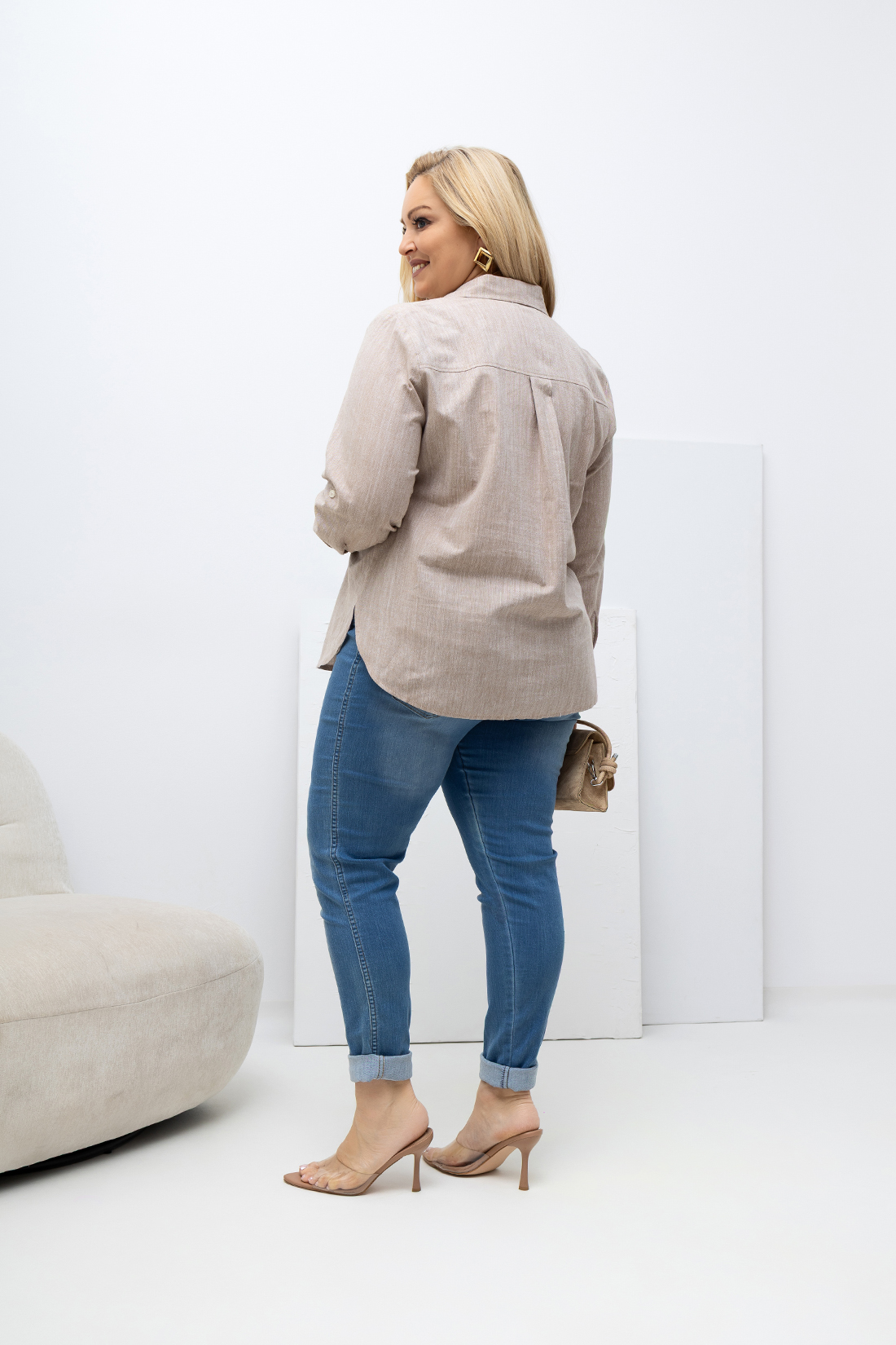 Koszula 100% VANESSA Oxford beżowa Plus Size 46-56