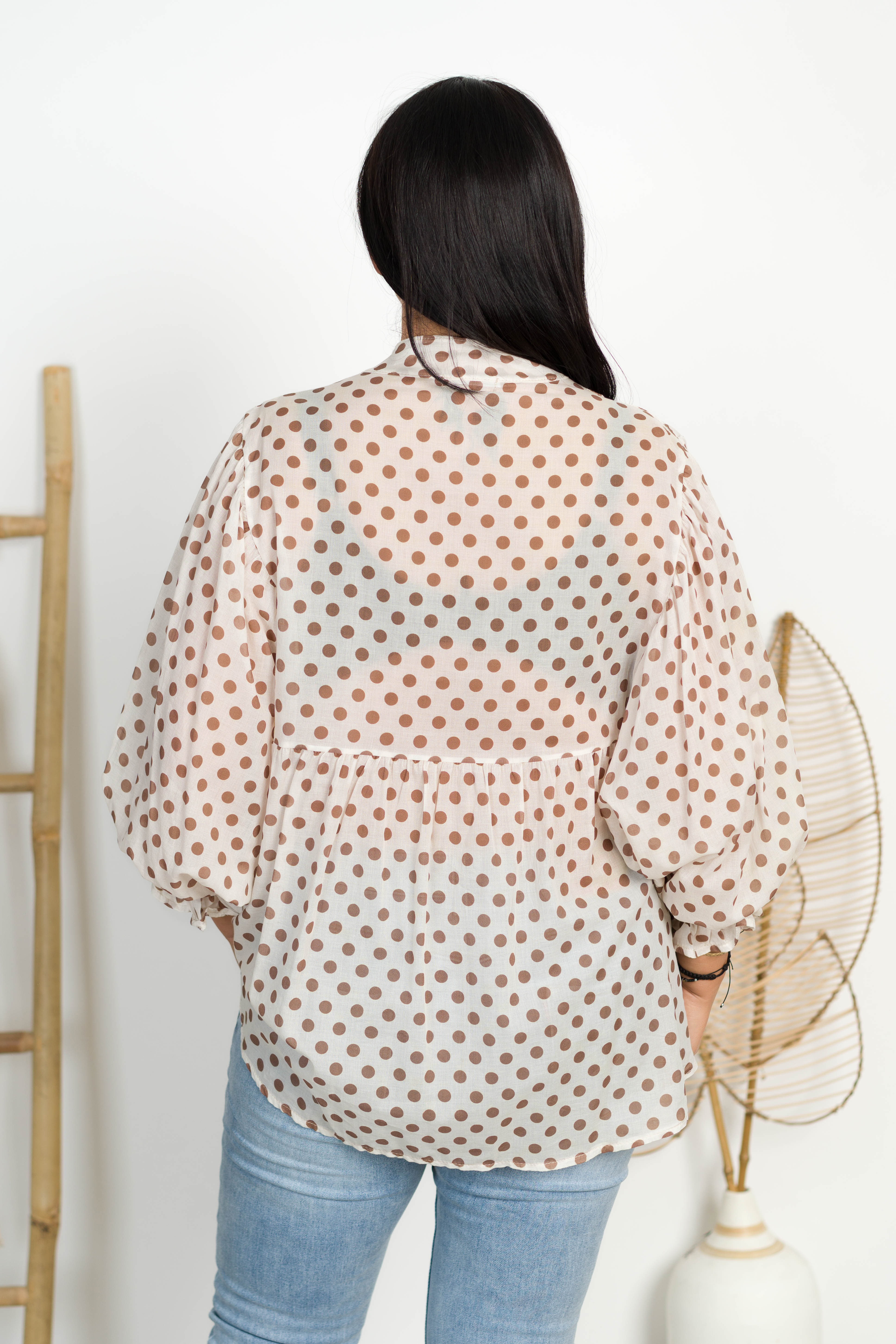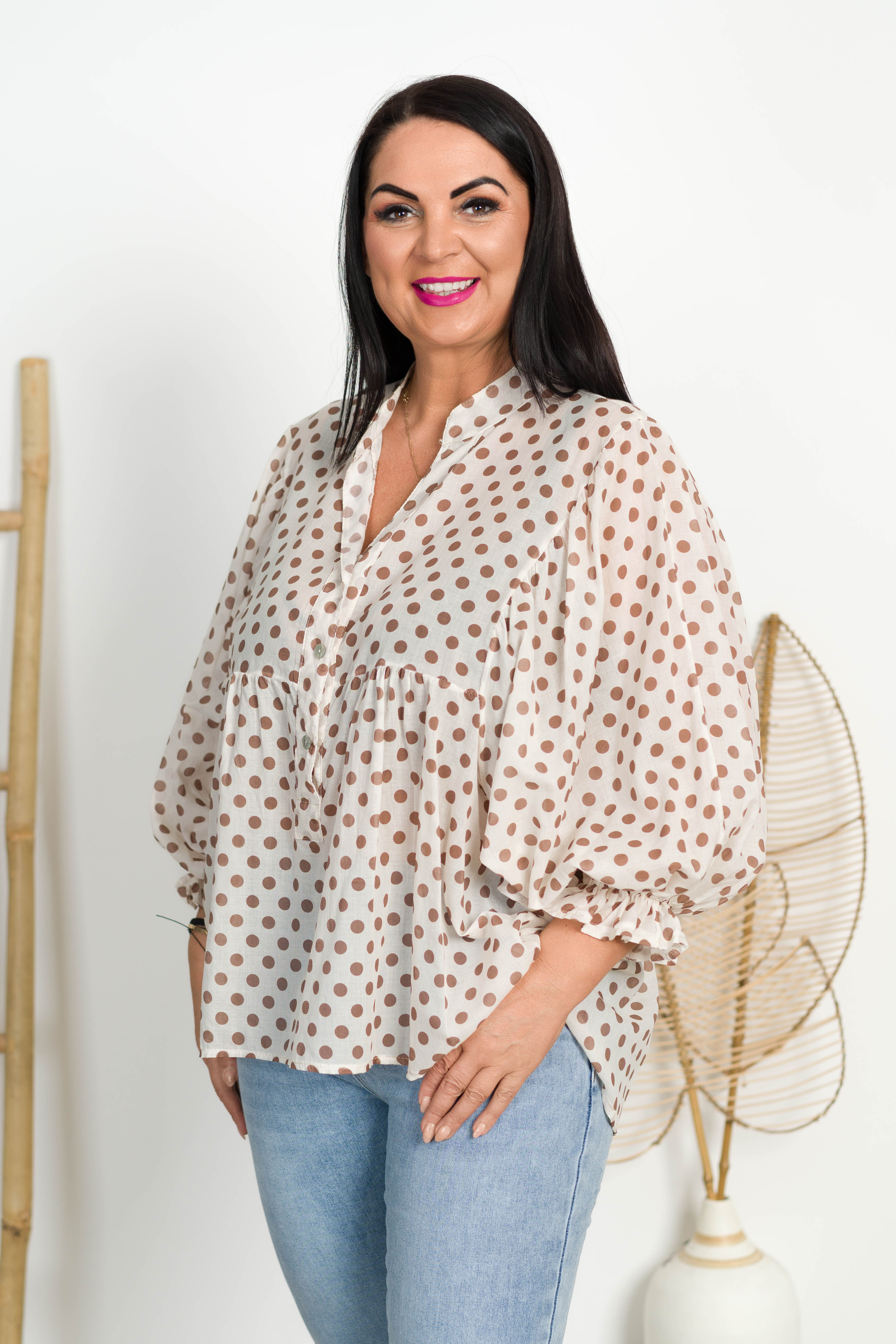 Koszula Boho w Groszki BRITA beżowa Plus Size 44/50
