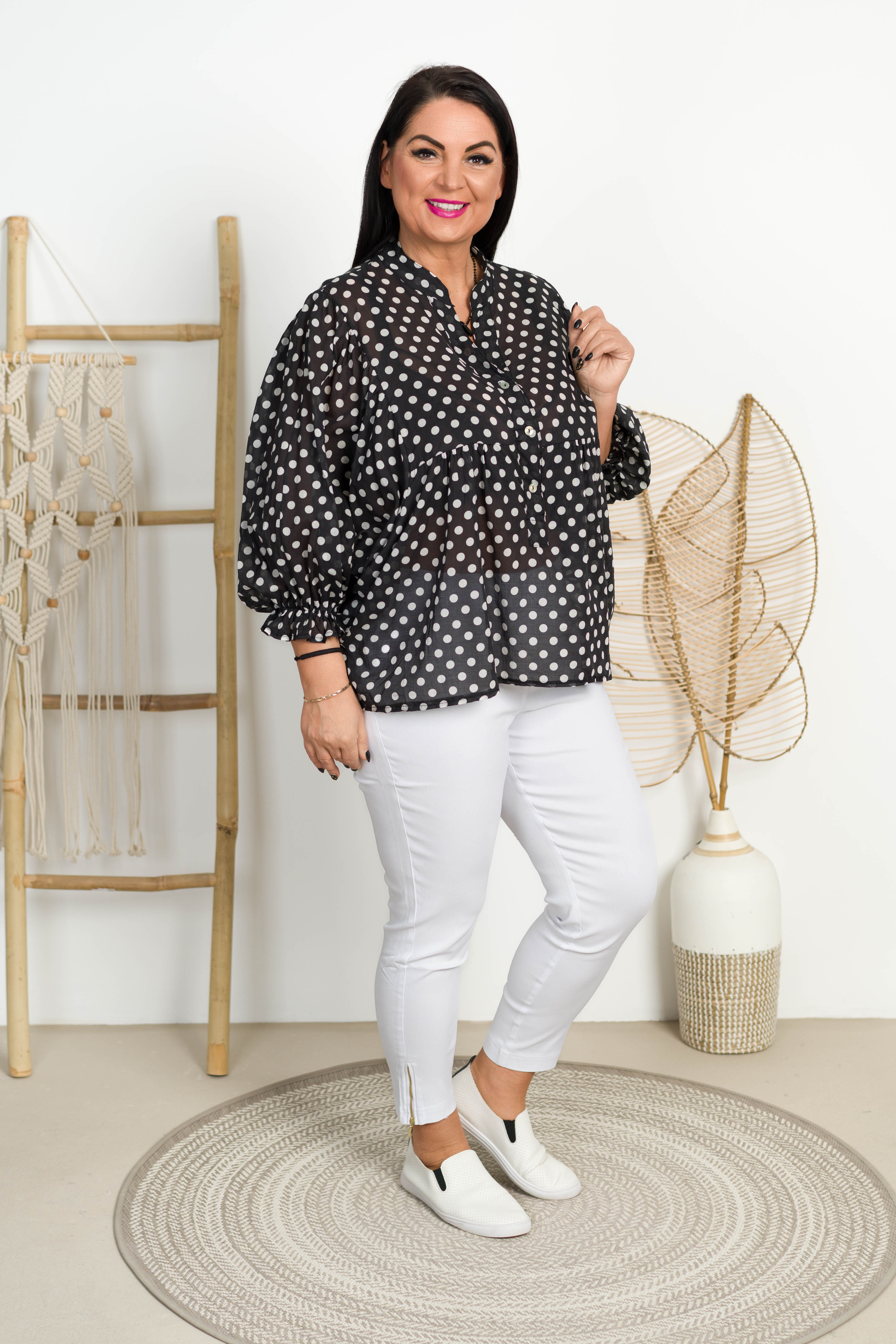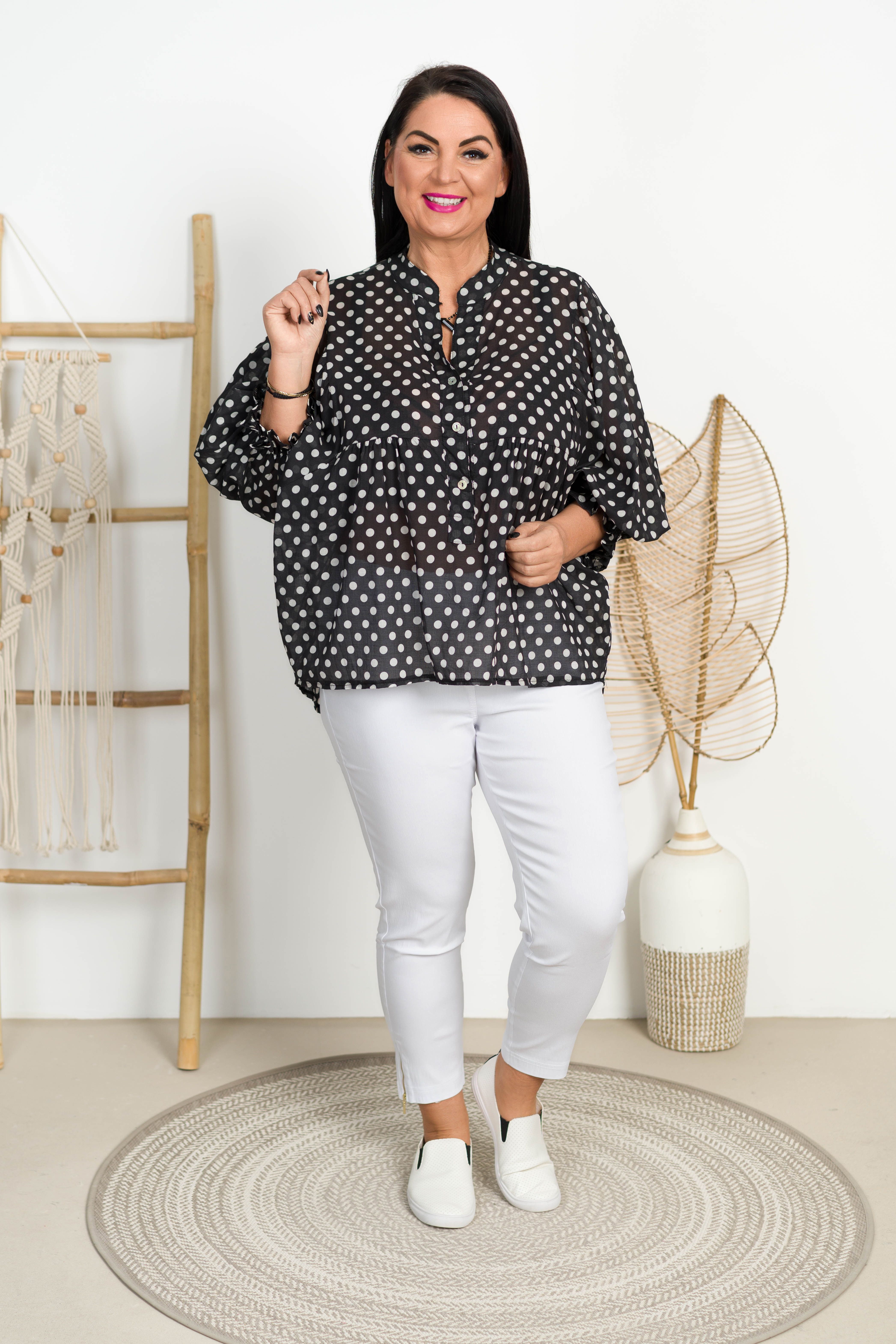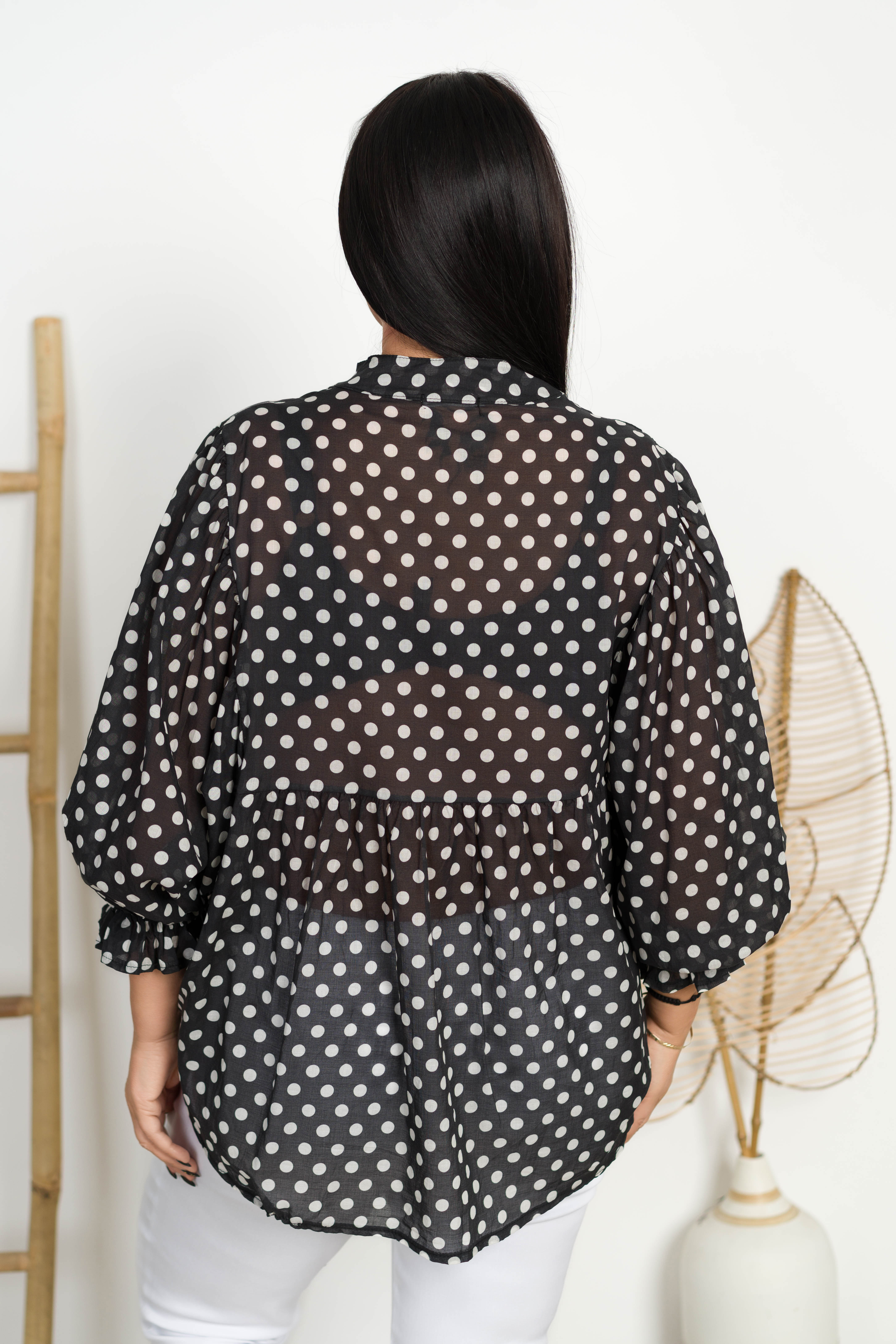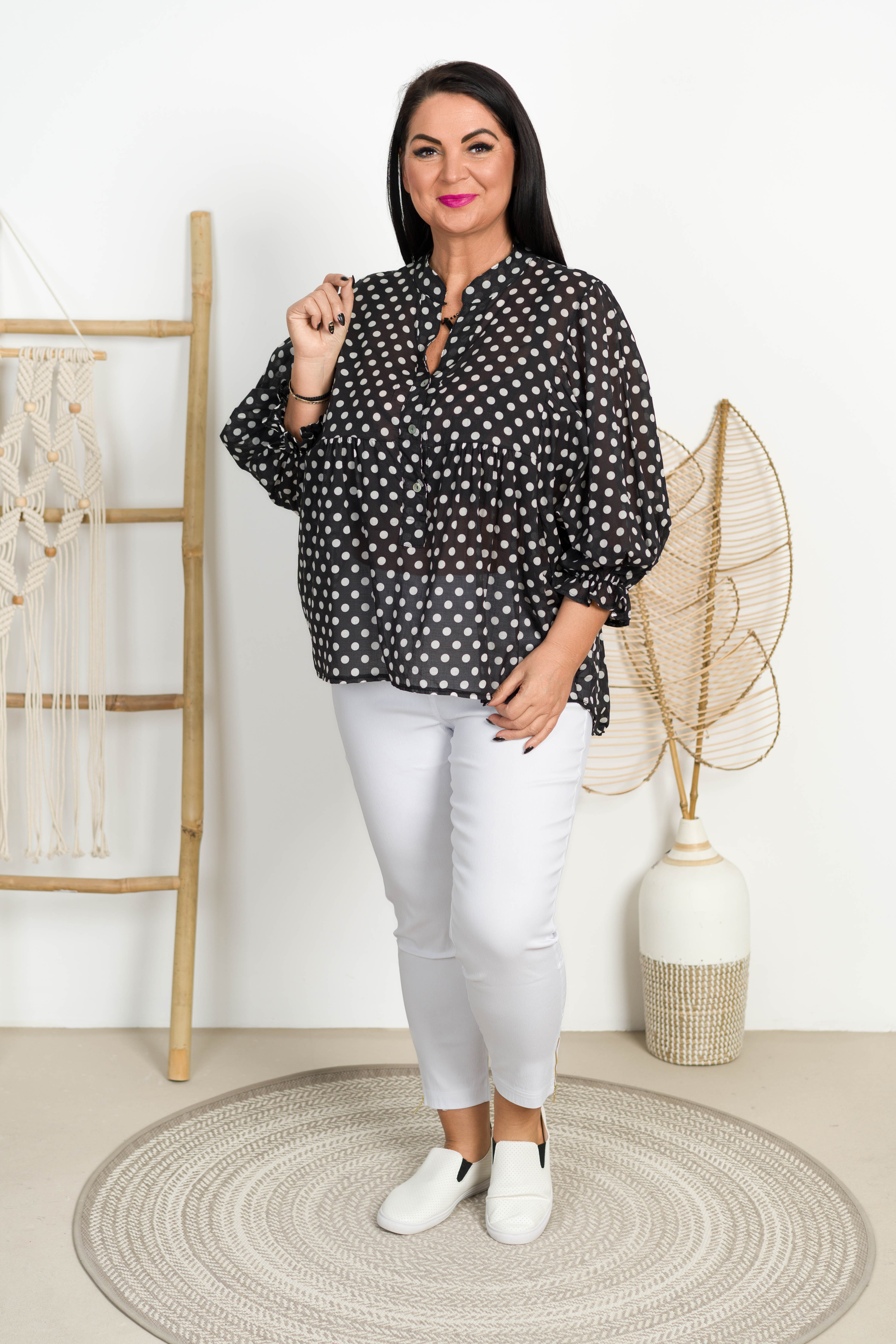 Koszula Boho w Groszki BRITA czarna Plus Size 44/50