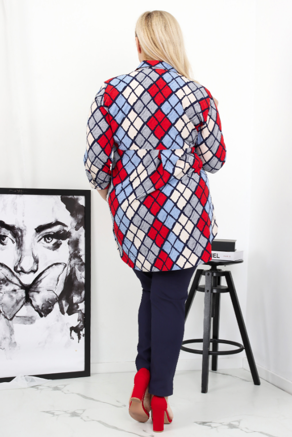Długa elegancka koszula w kolorowa kratę. Długość sięgająca poniżej linii bioder.