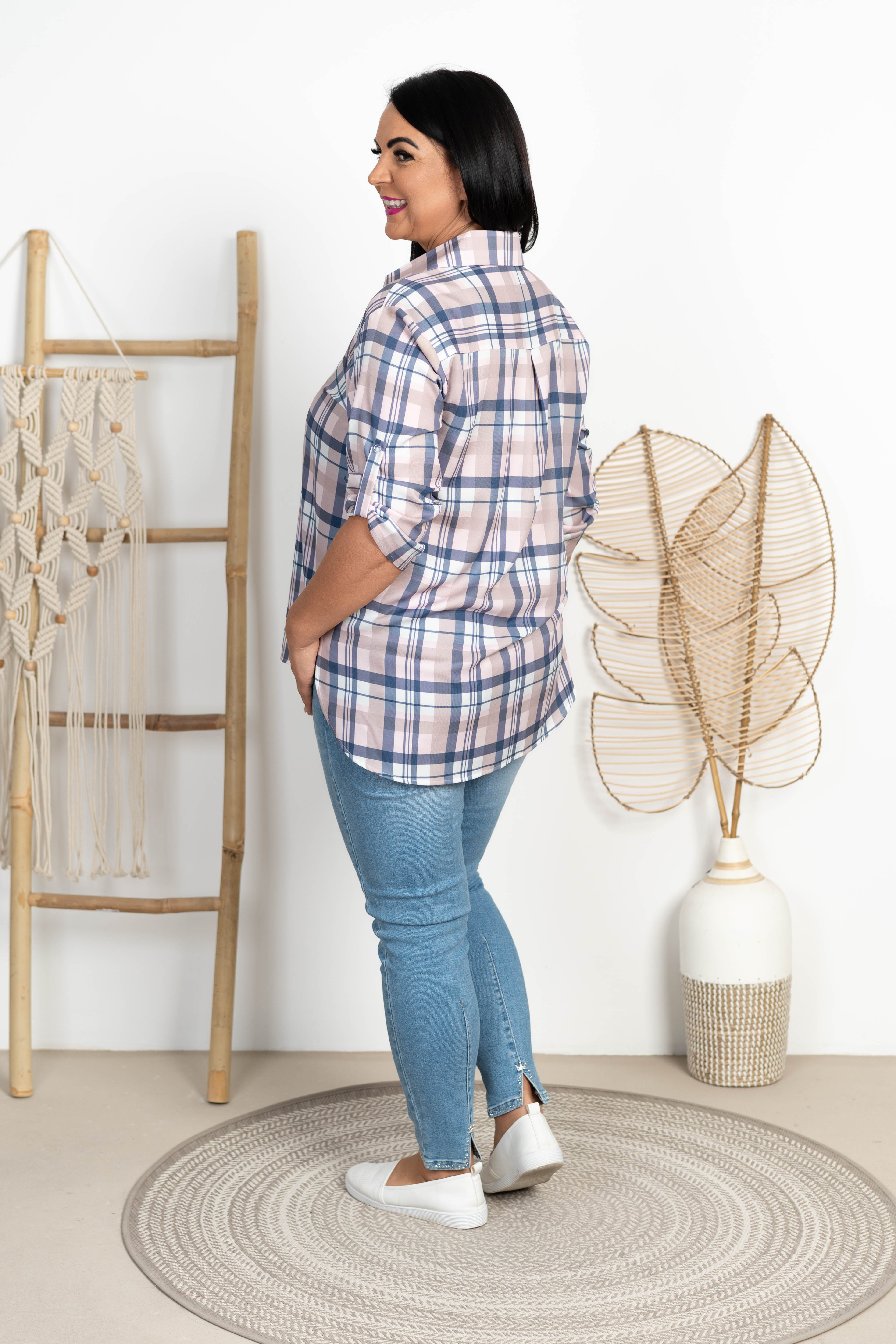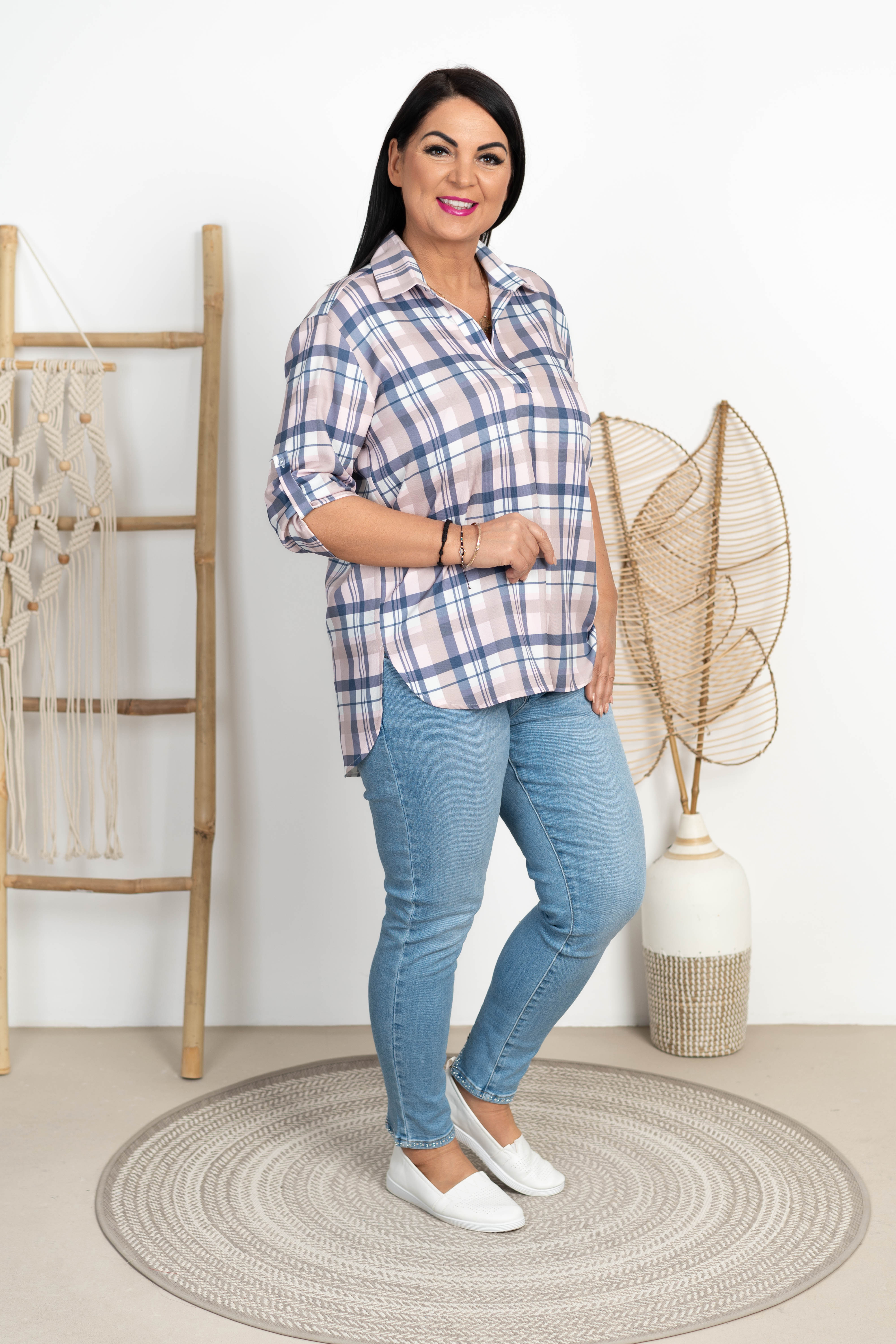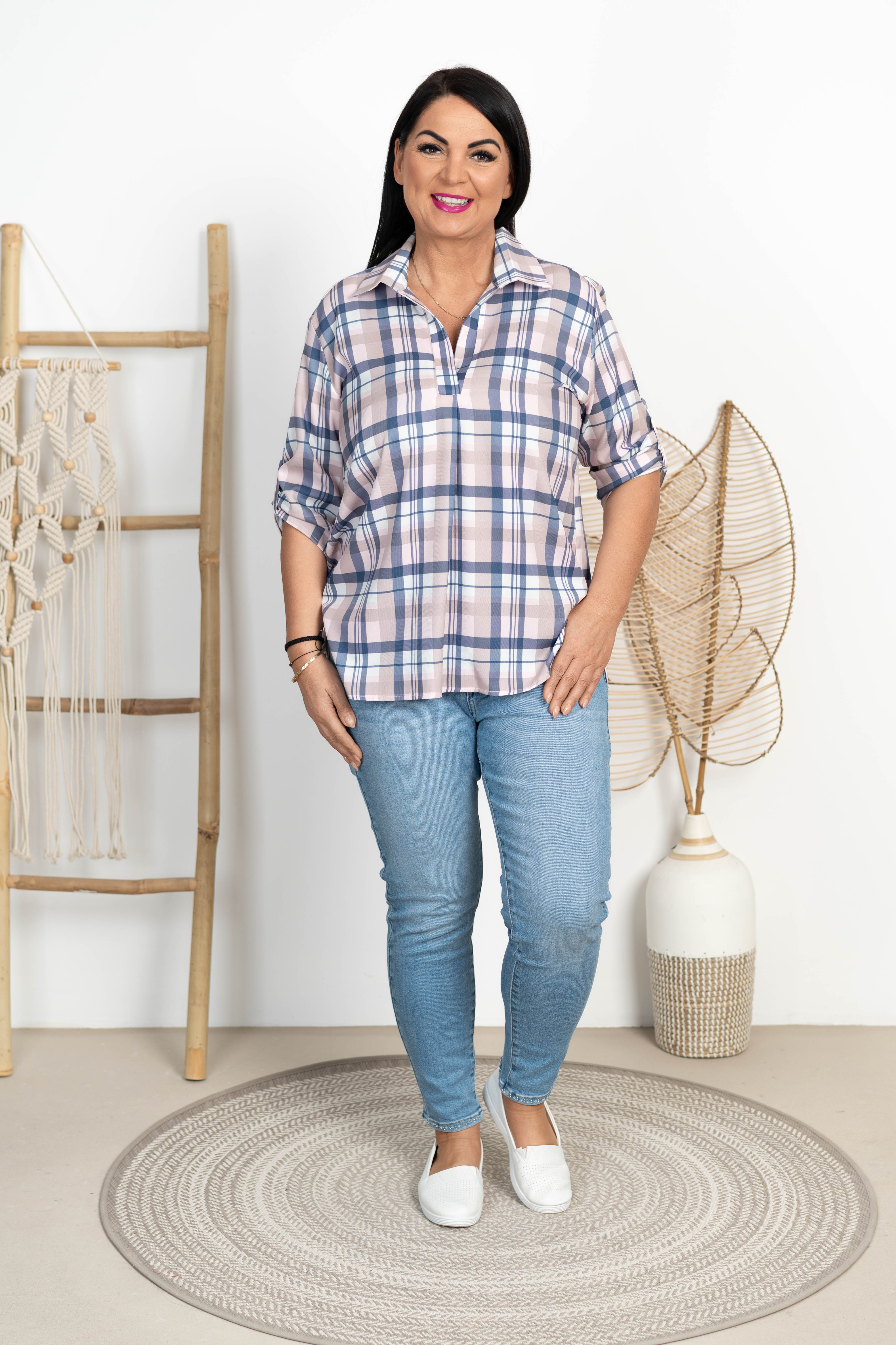 Koszula wkładana przez głowę SELEST kratka pudrowo-niebieska Plus Size 42-52