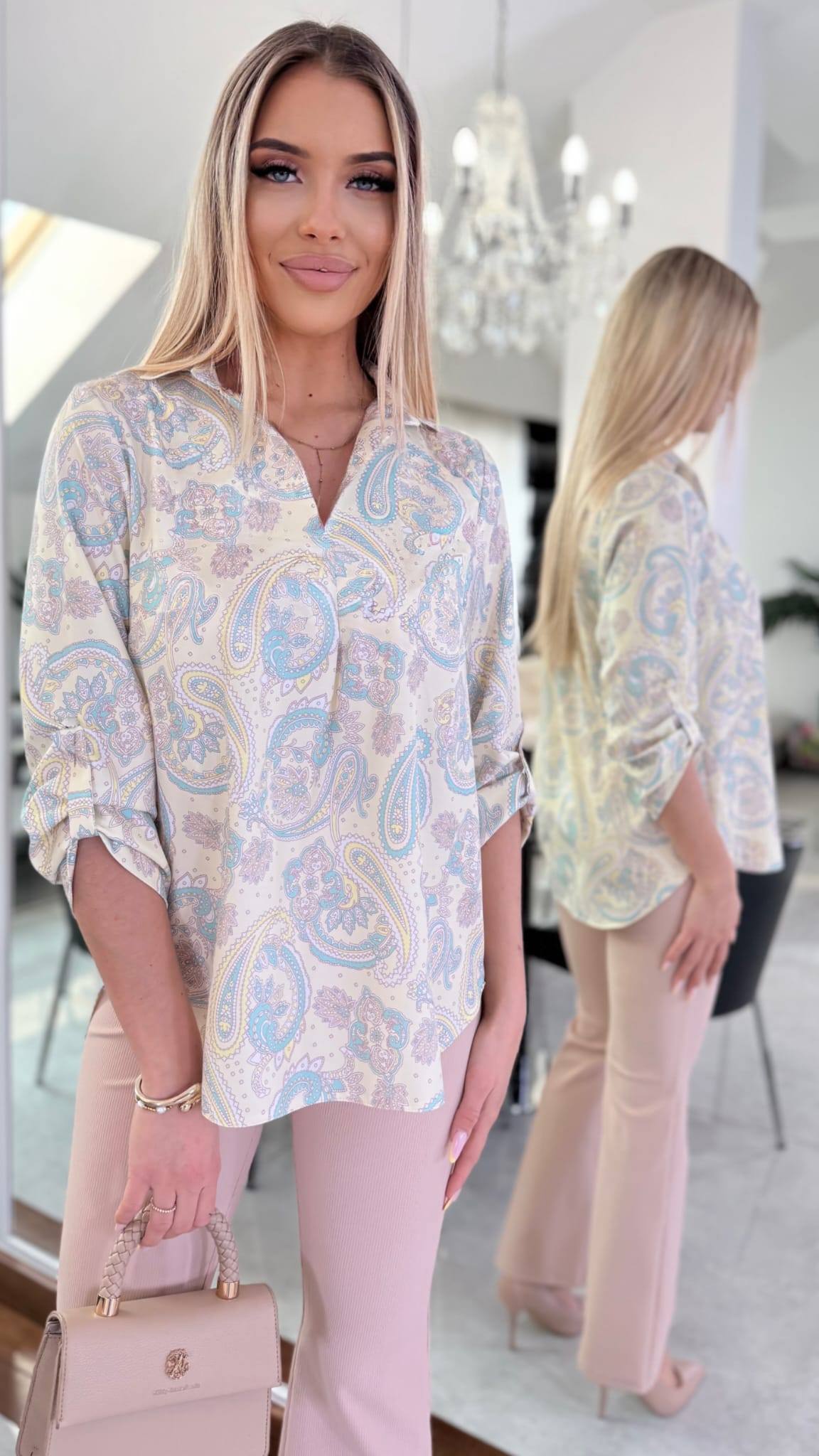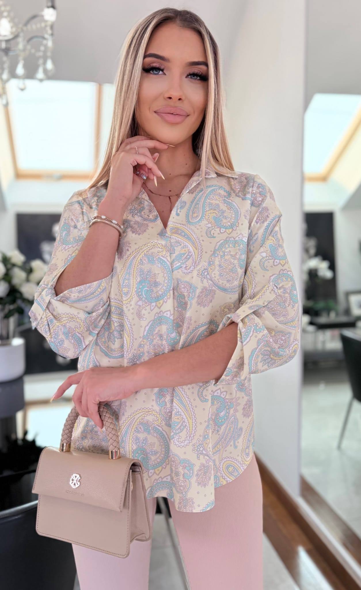 Materiał wiskozowy, delikatny, lejący. Bez guzików. Wkładana przez głowę.