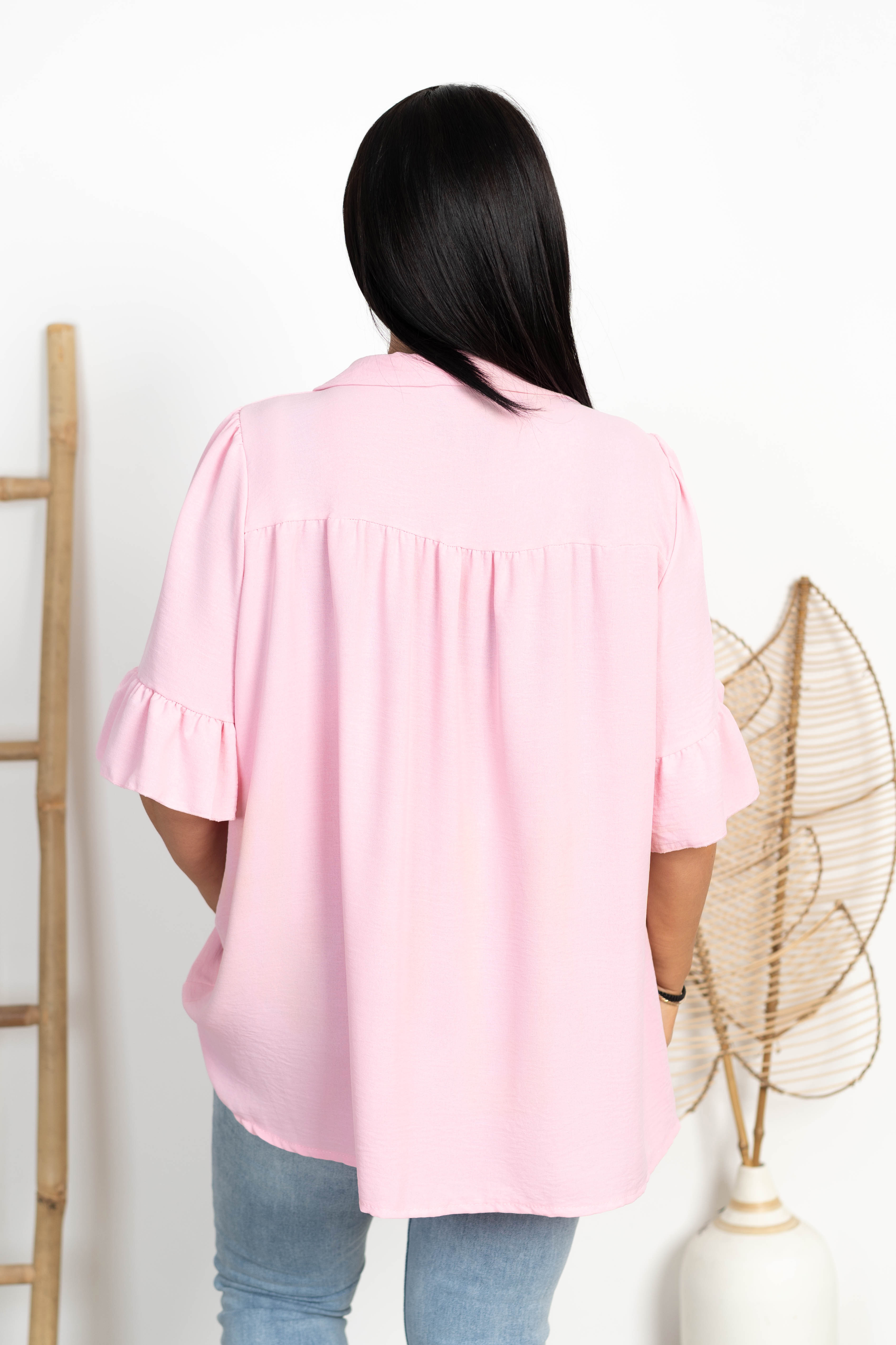 Koszula z crepy marszczona SKAY pudrowa Plus Size 46/54