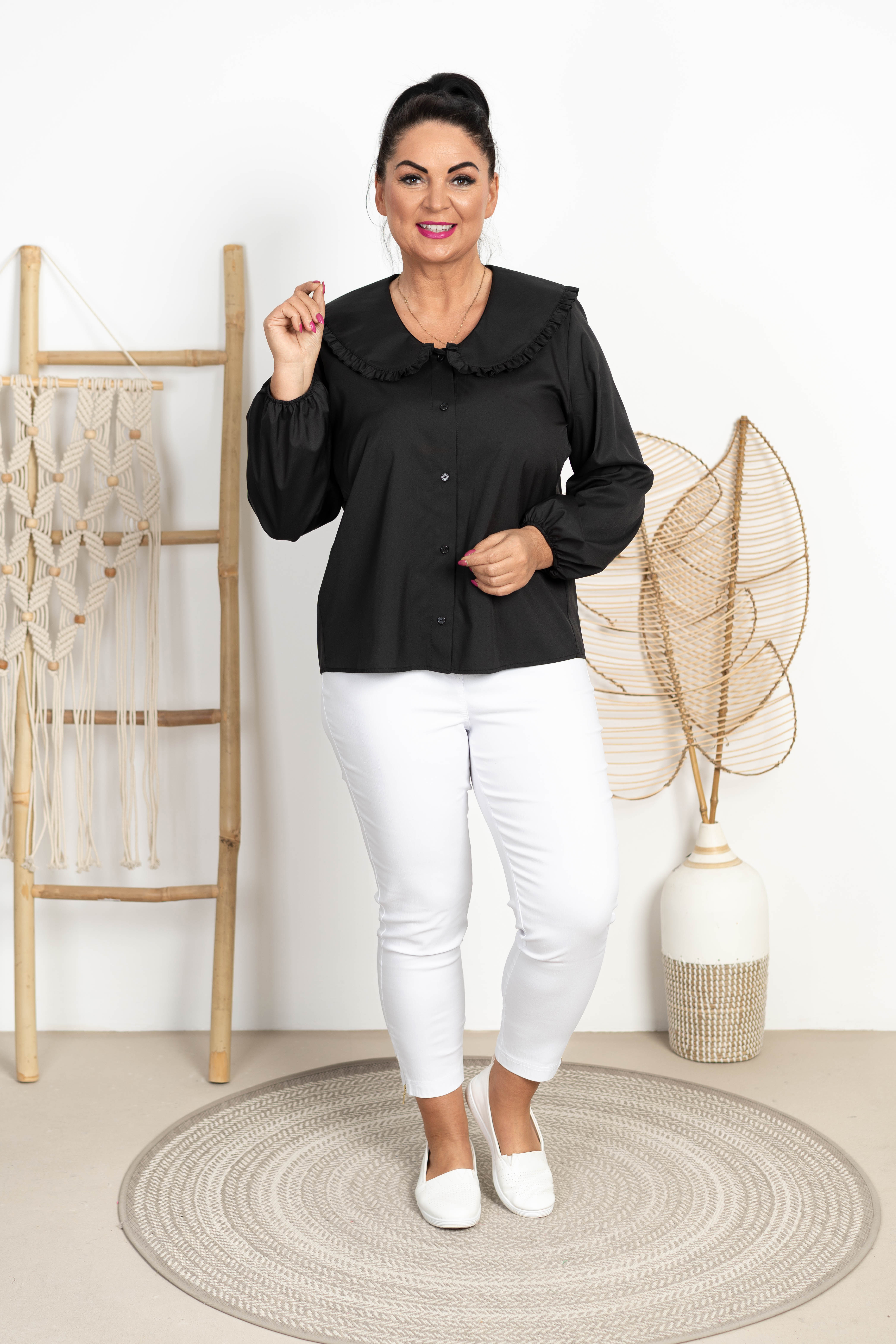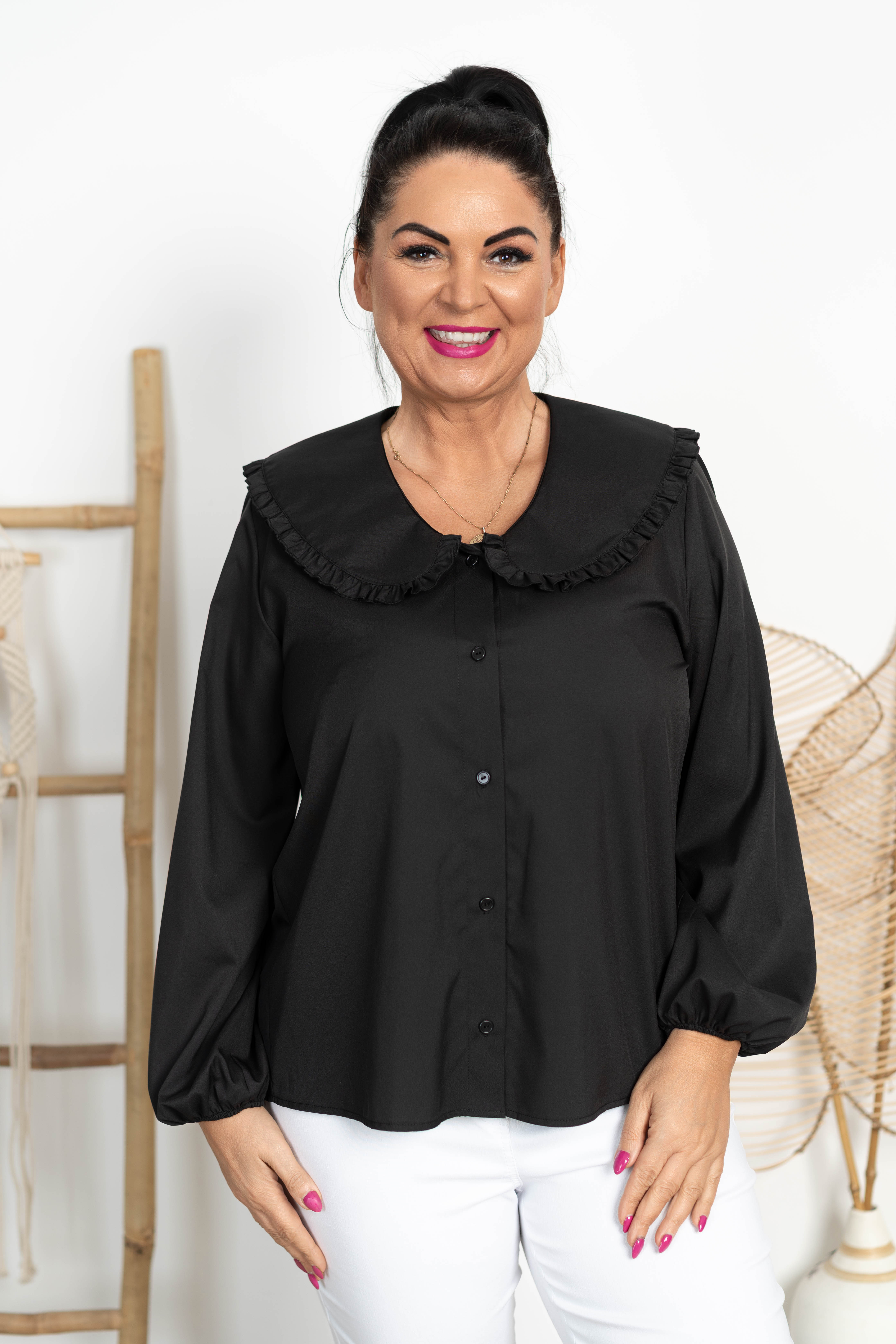 Koszula z kołnierzem ARLETT czarna Plus Size 42-52