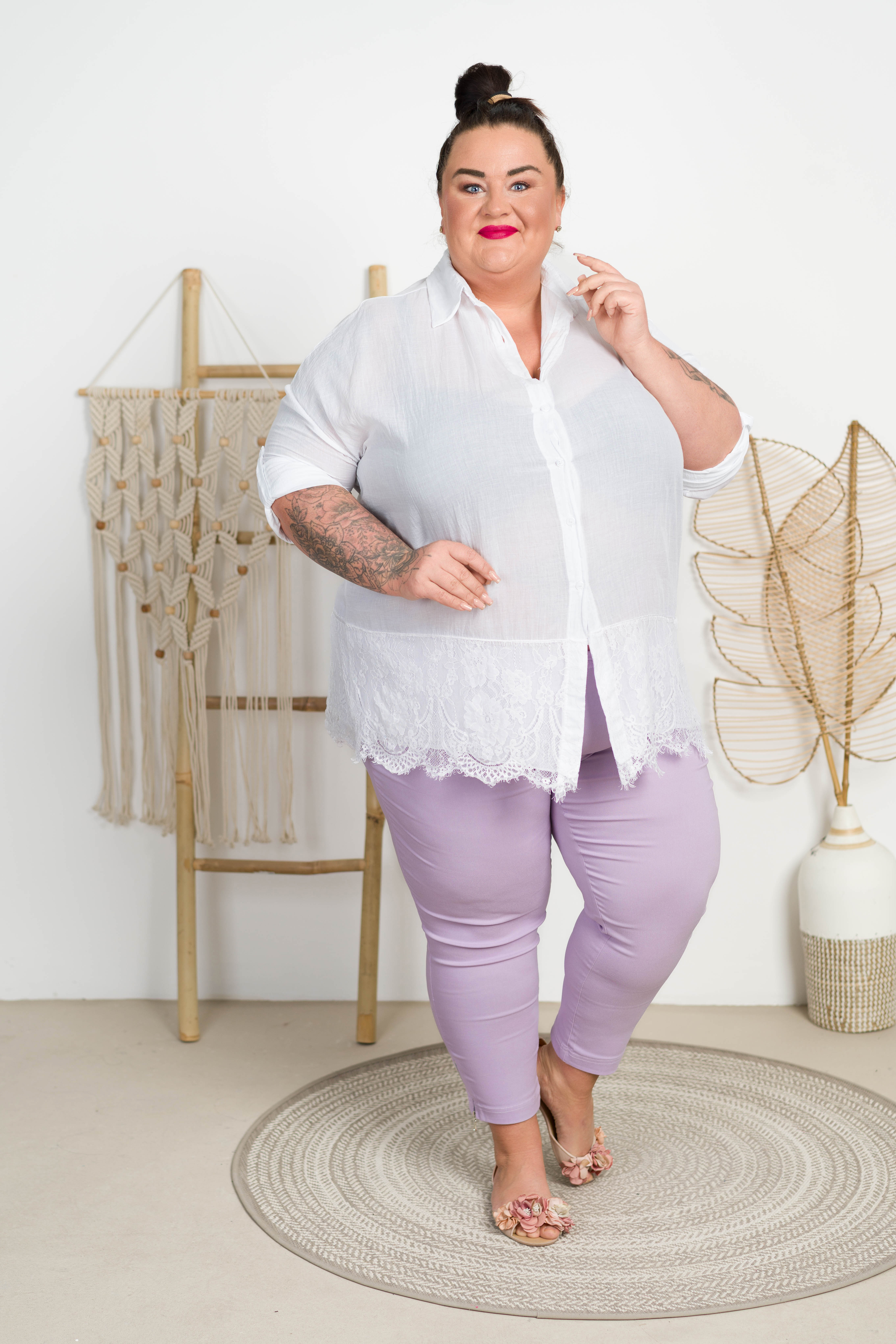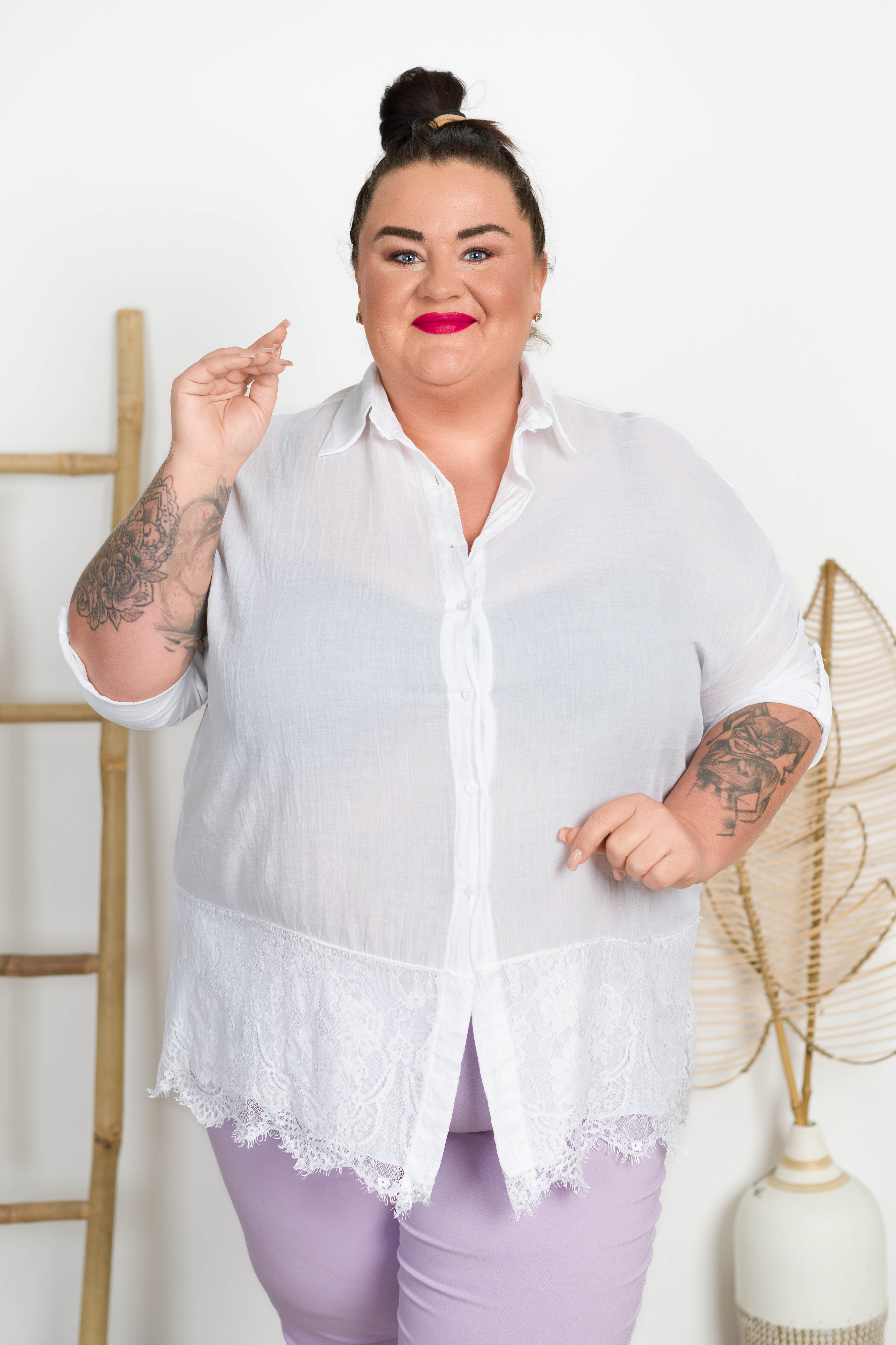 Koszula z koronką ELISA biała Plus Size 48/54