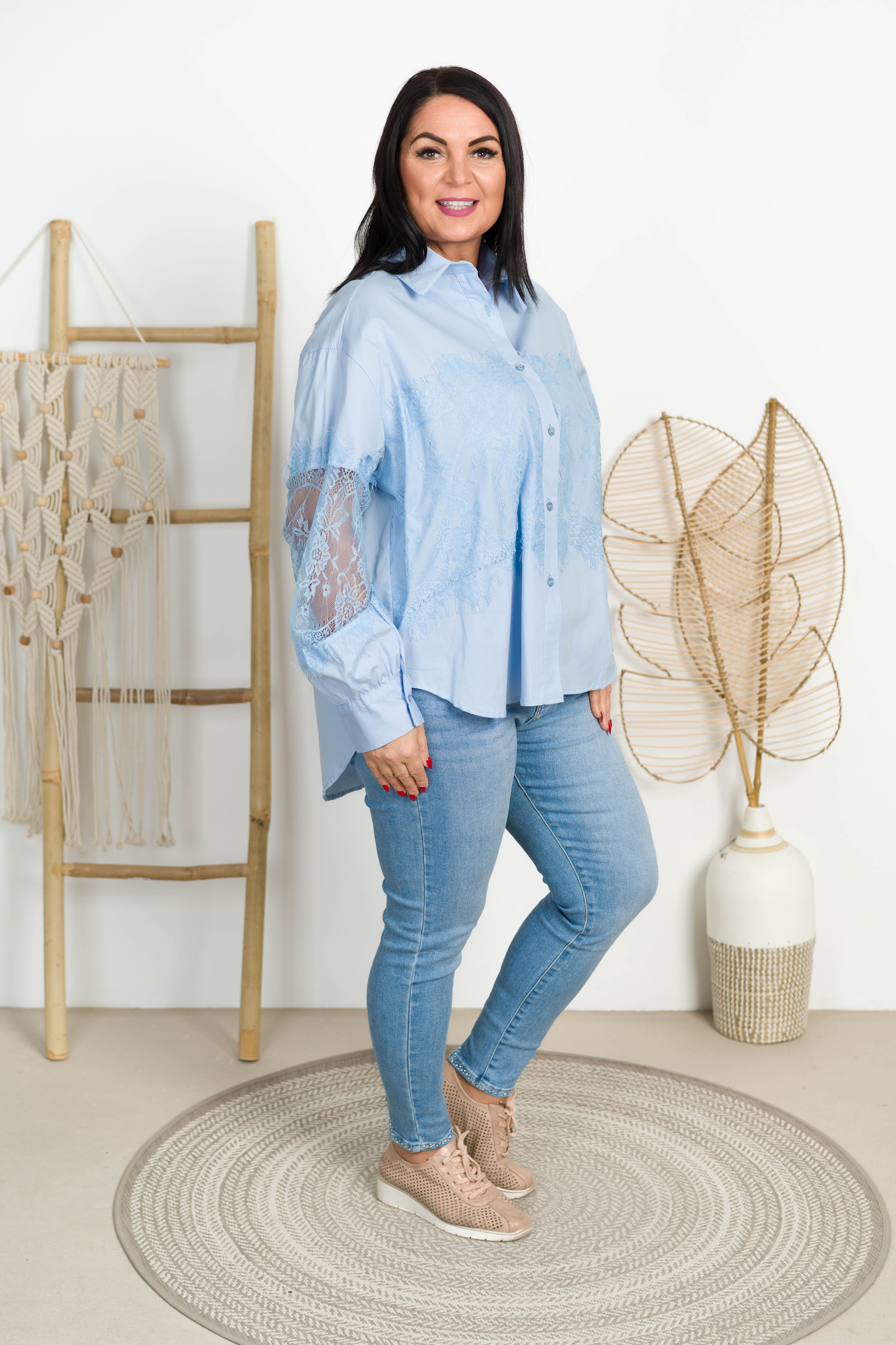 Koszula z koronką MELISA błękitna Plus Size 44/50