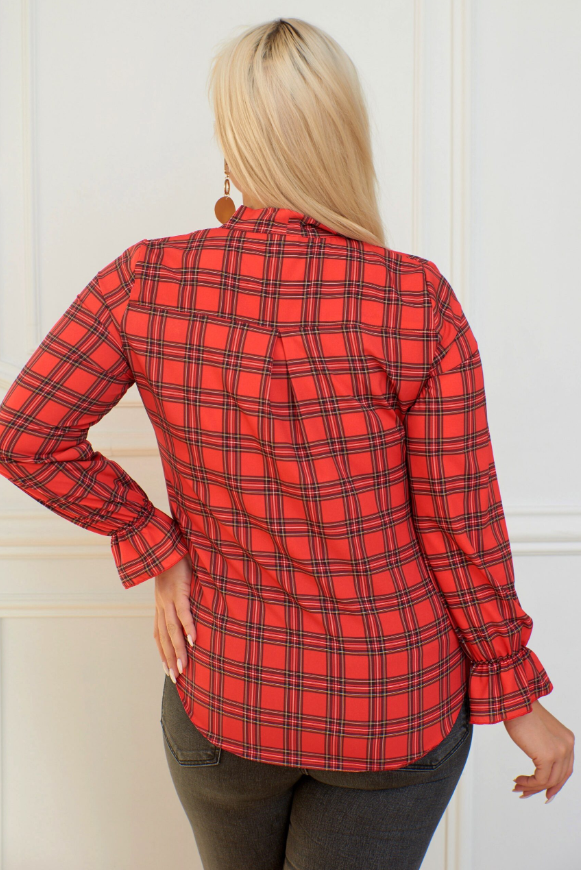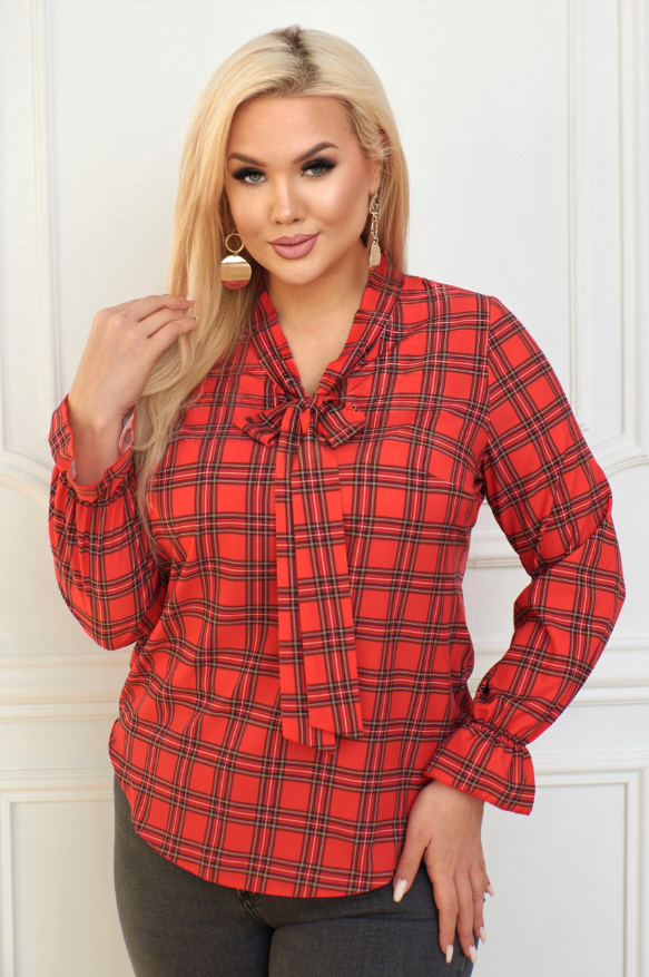 Koszula z krawatką RUDE czerwona krateczka Plus Size 44-58