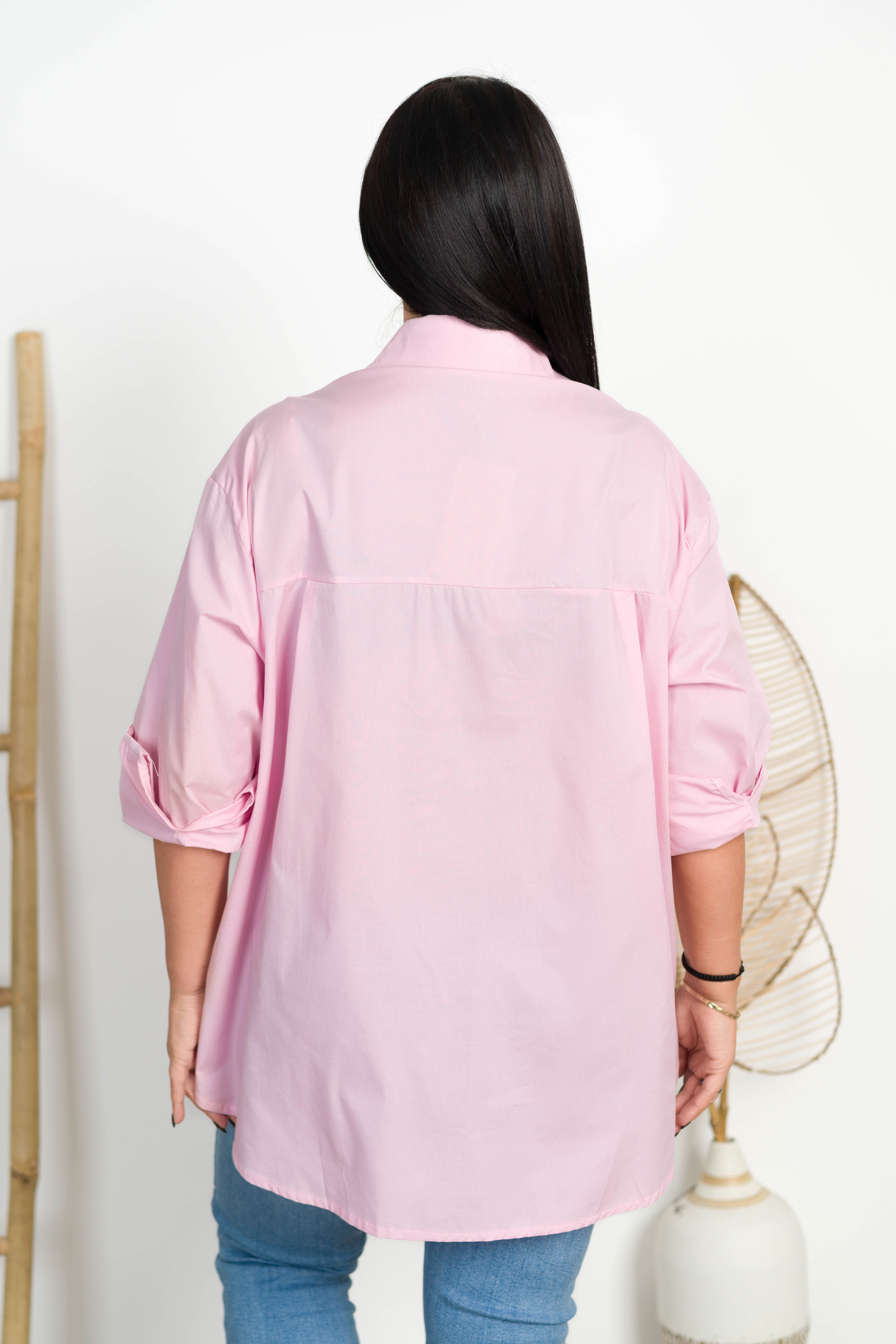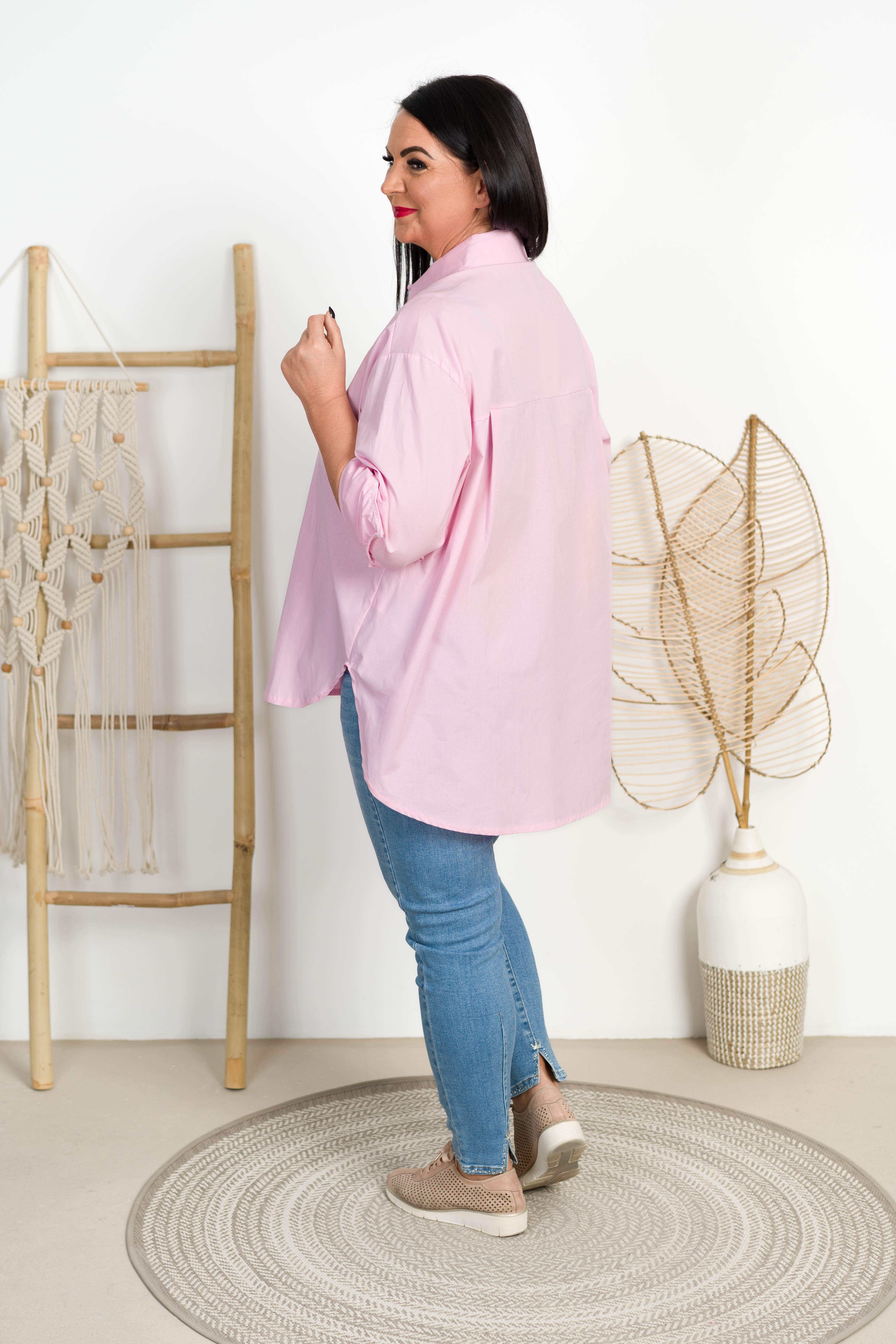 Koszula z ozdobnymi broszkami MELIA pudrowa Plus Size 44/50