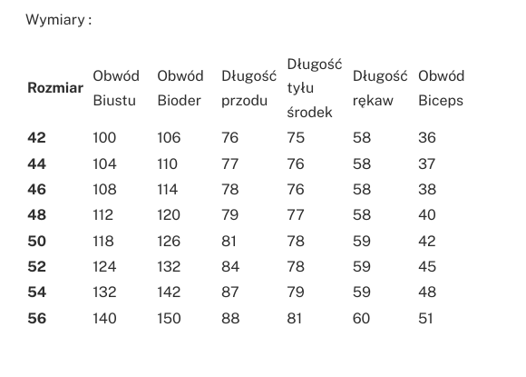 Modelka ma 172 cm wzrostu i prezentuje egzemplarz rozmiarze 42.