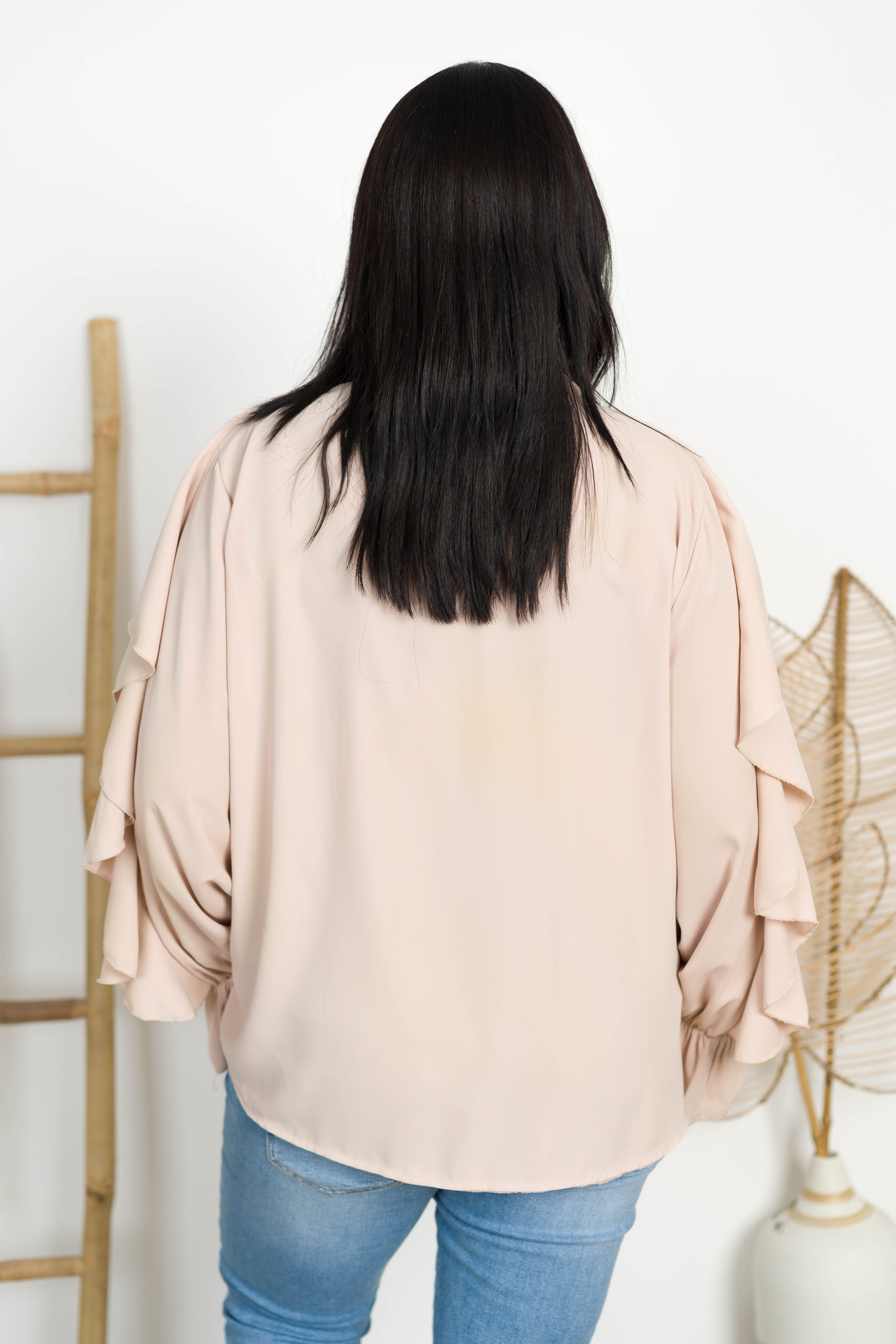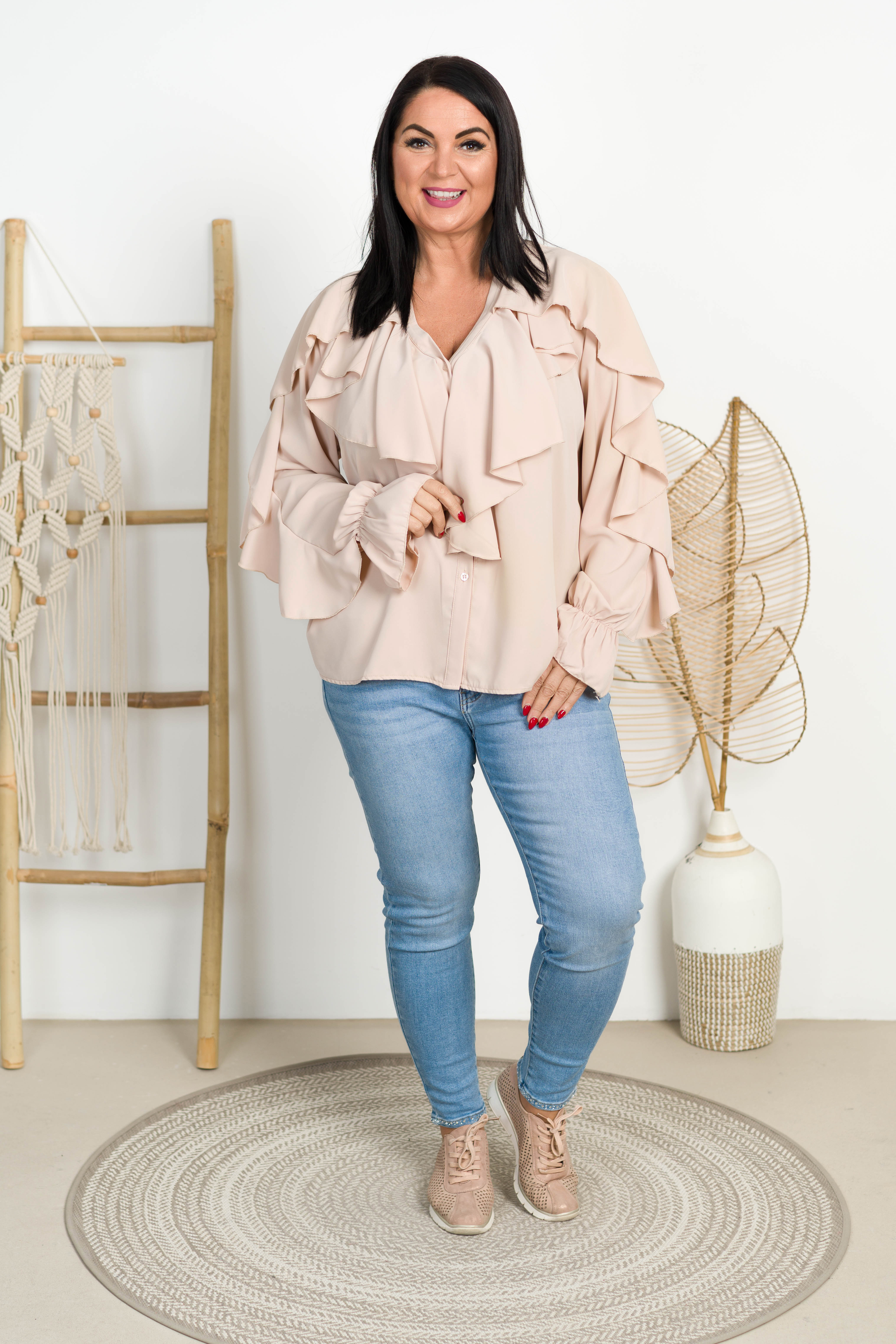 Koszula z żabotem RESIV beżowa Plus Size 44/48