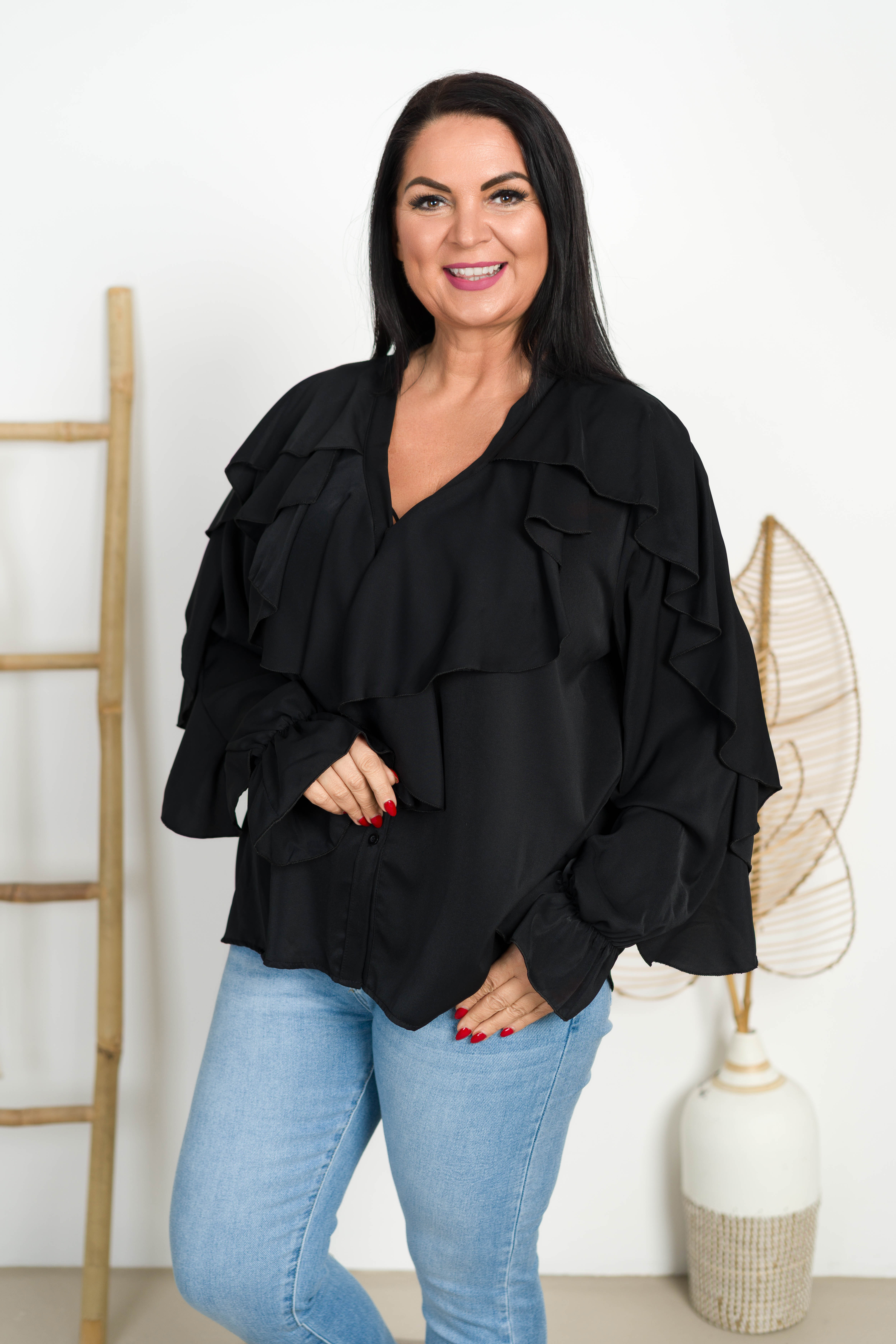 Koszula z żabotem RESIV czarna Plus Size 44/48