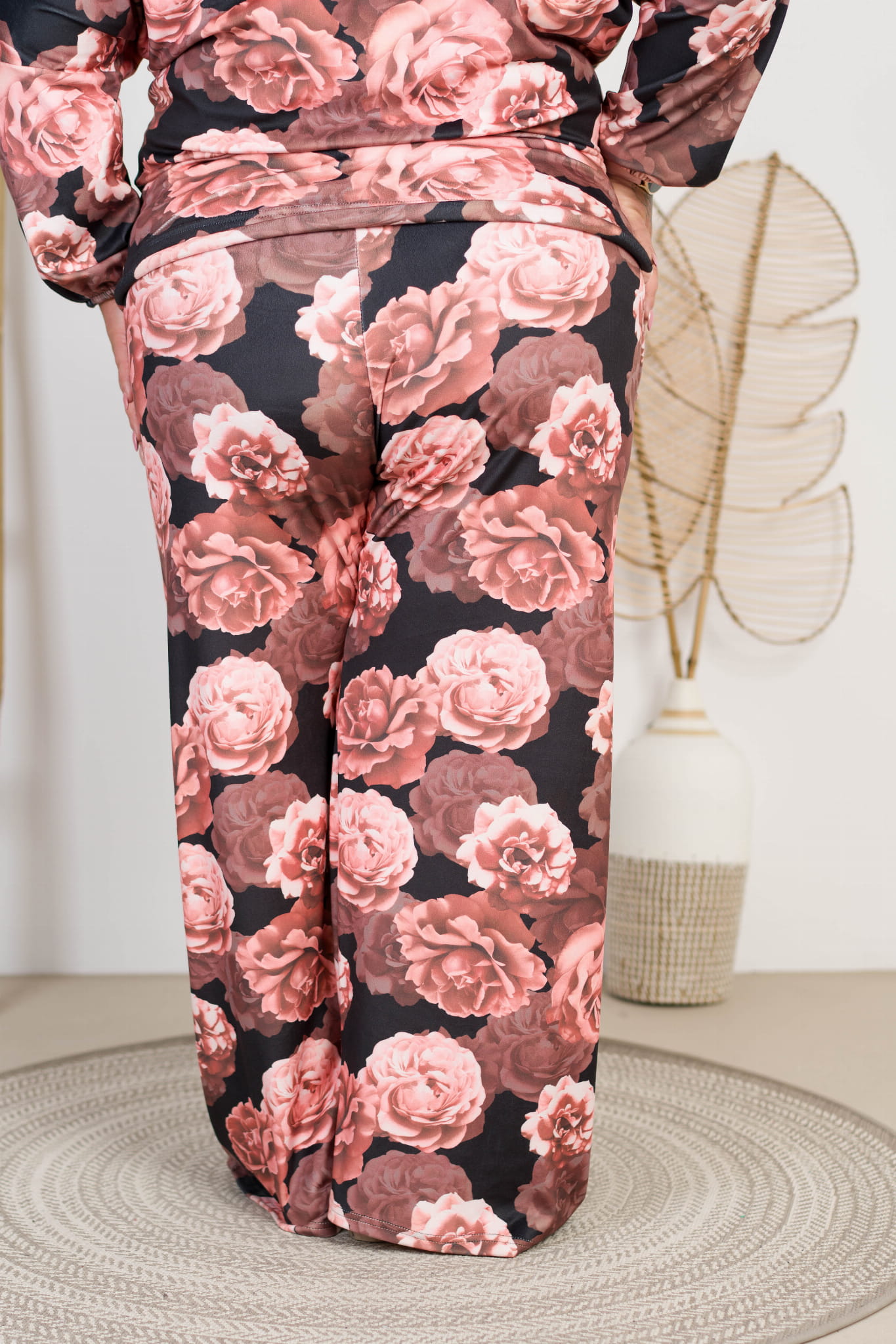 Kuloty z szeroką nogawką Welurowe DARIA wzór 3 Plus Size 48/54