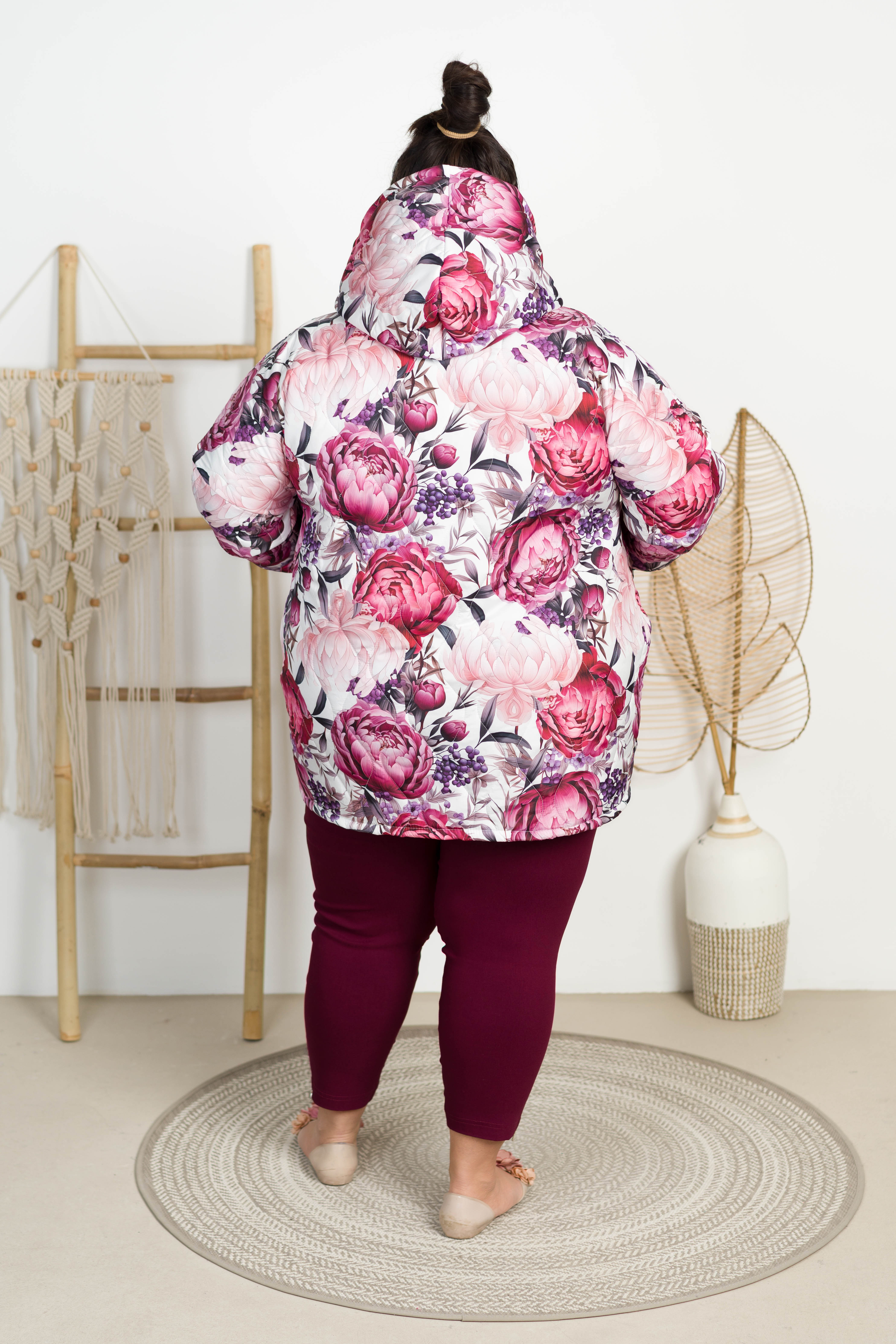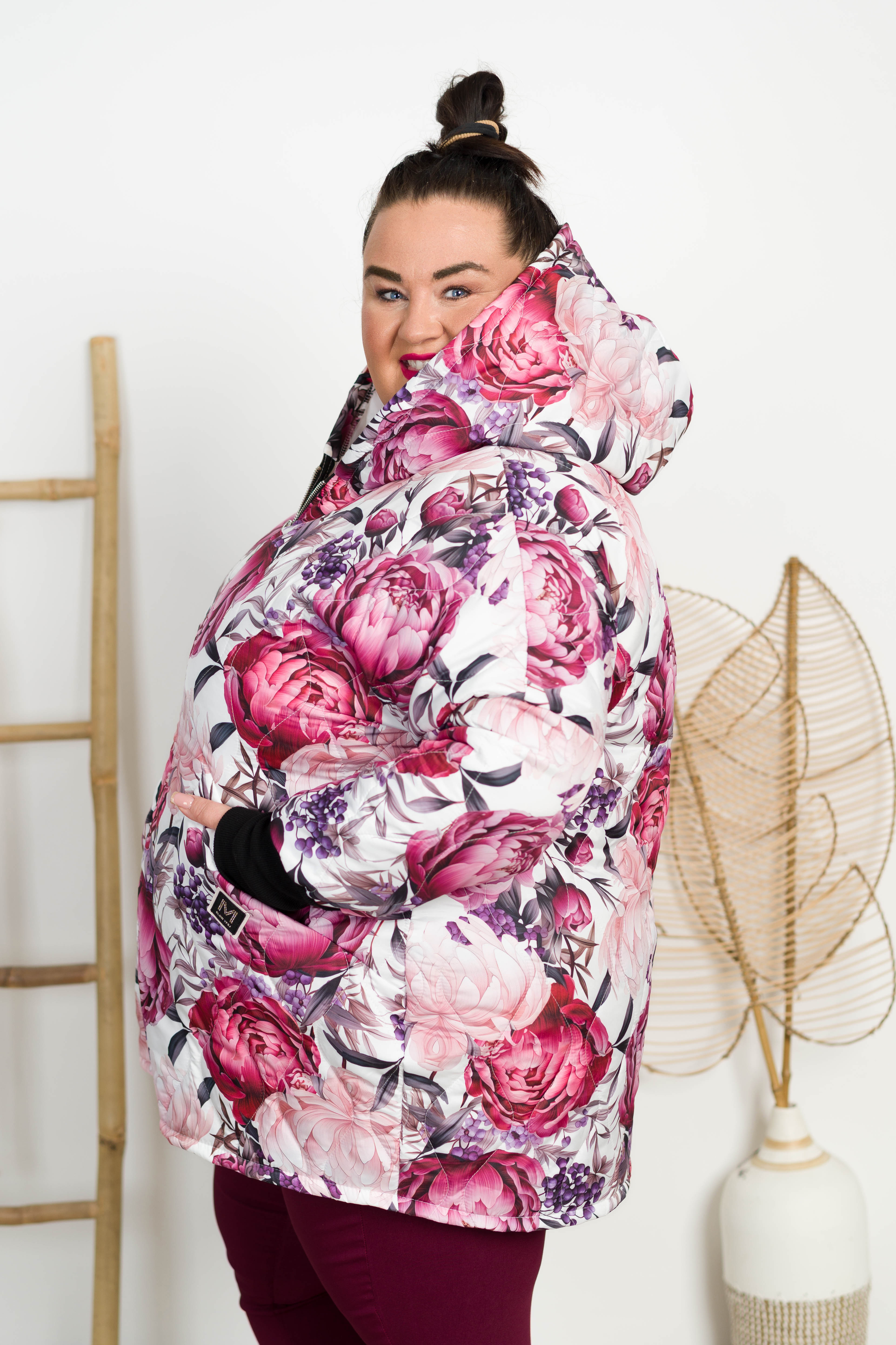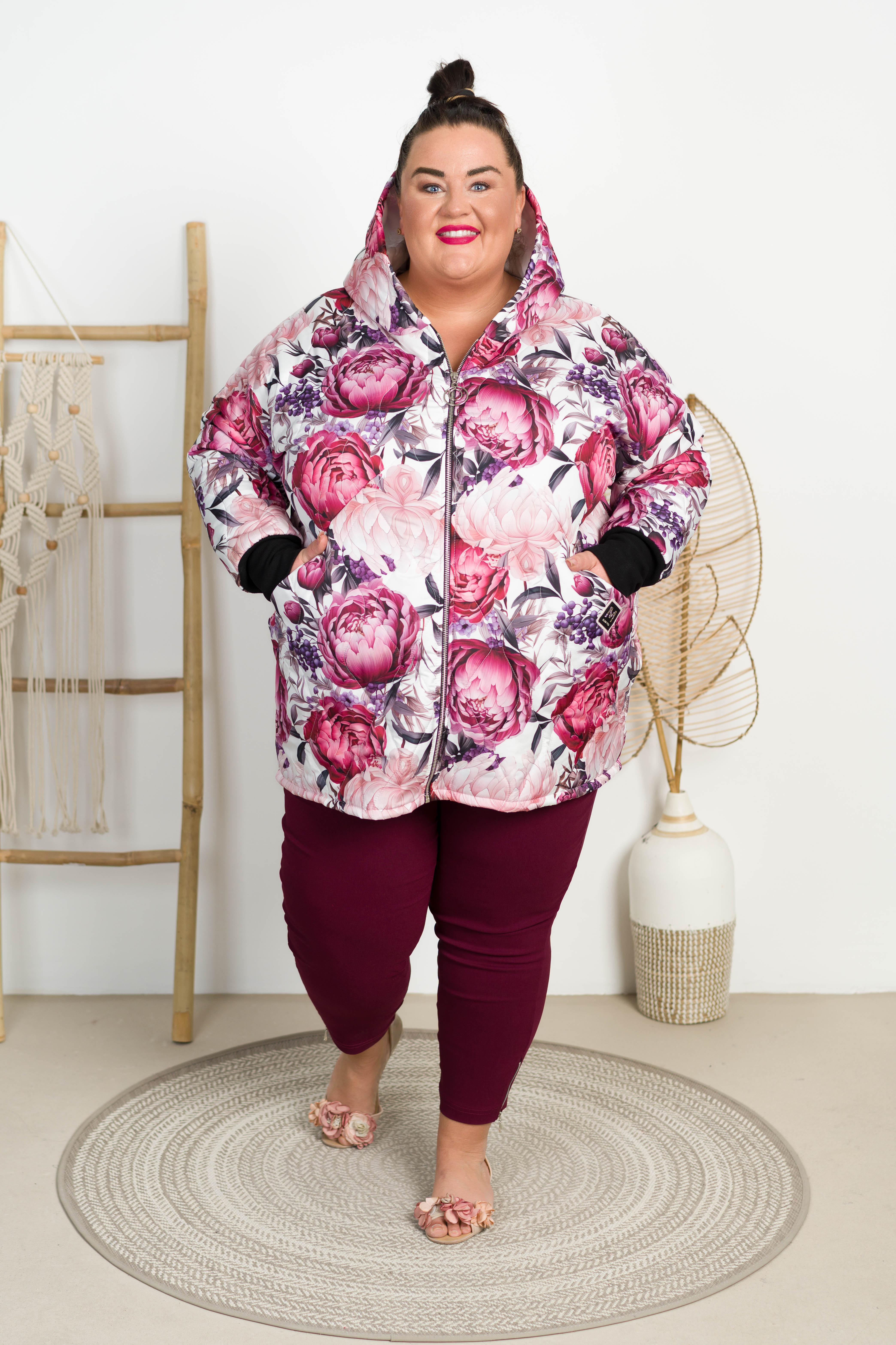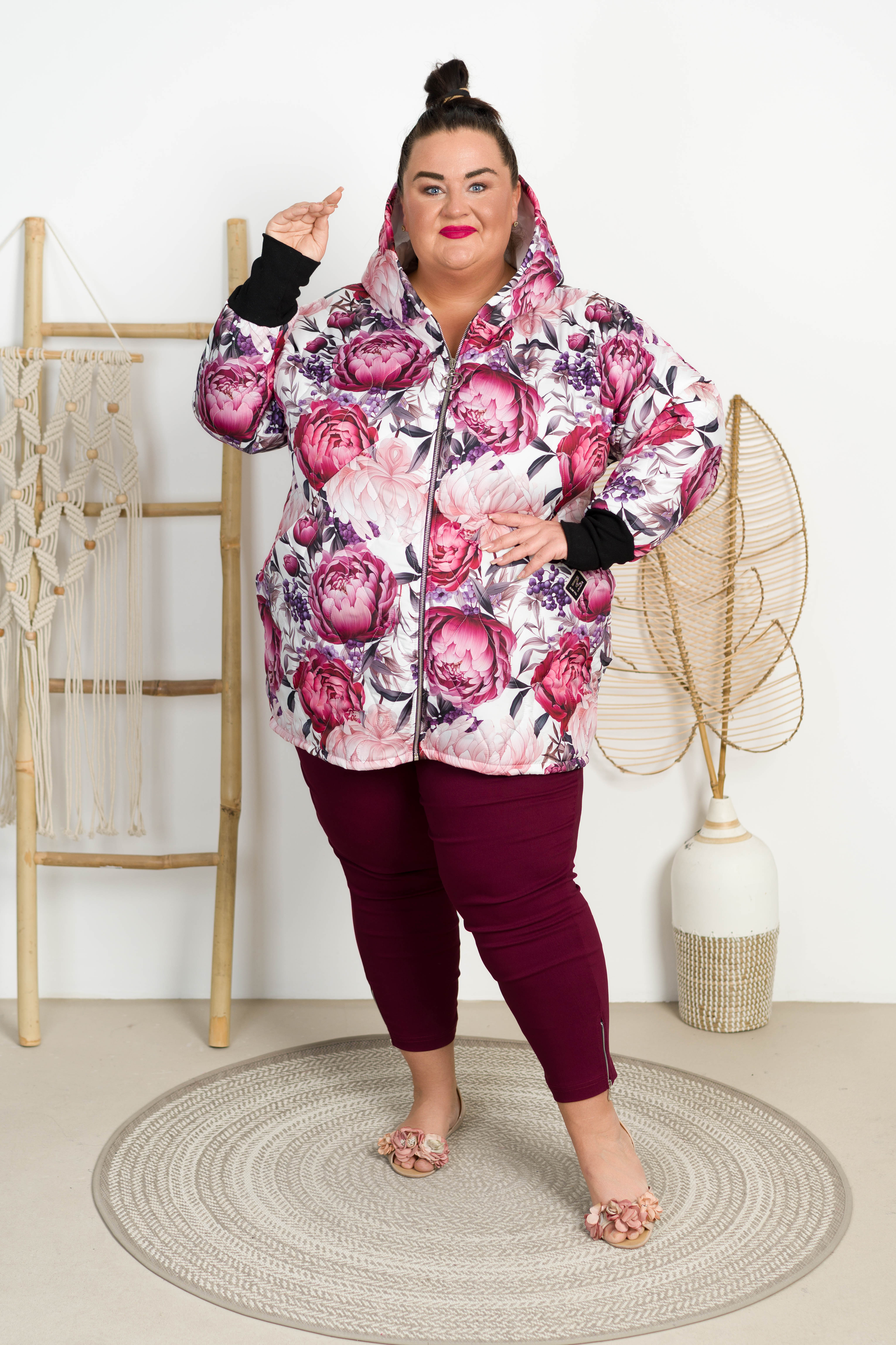 Kurtka Bombka Jesień-Wiosna DUALI czerwone kwiaty 50/54