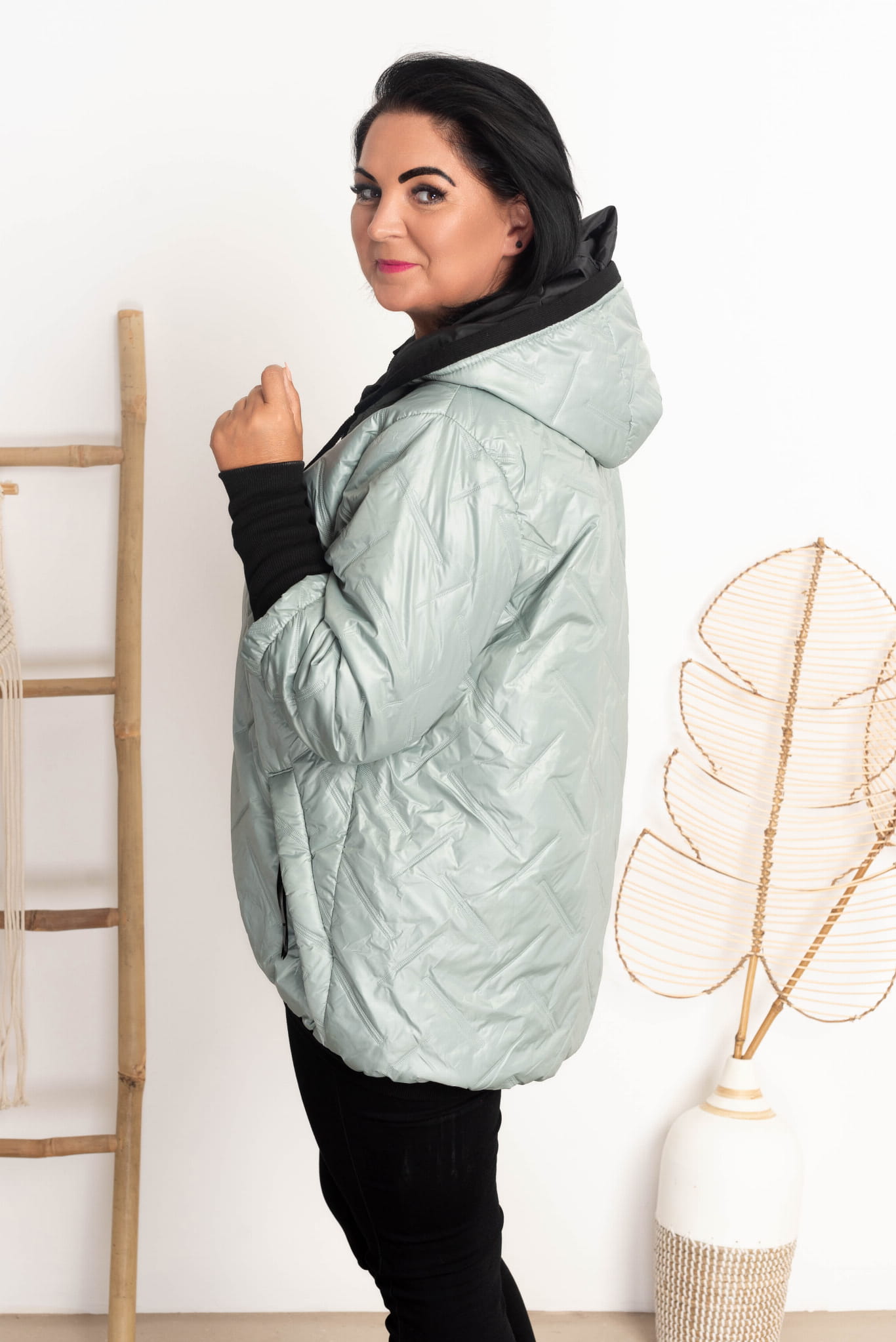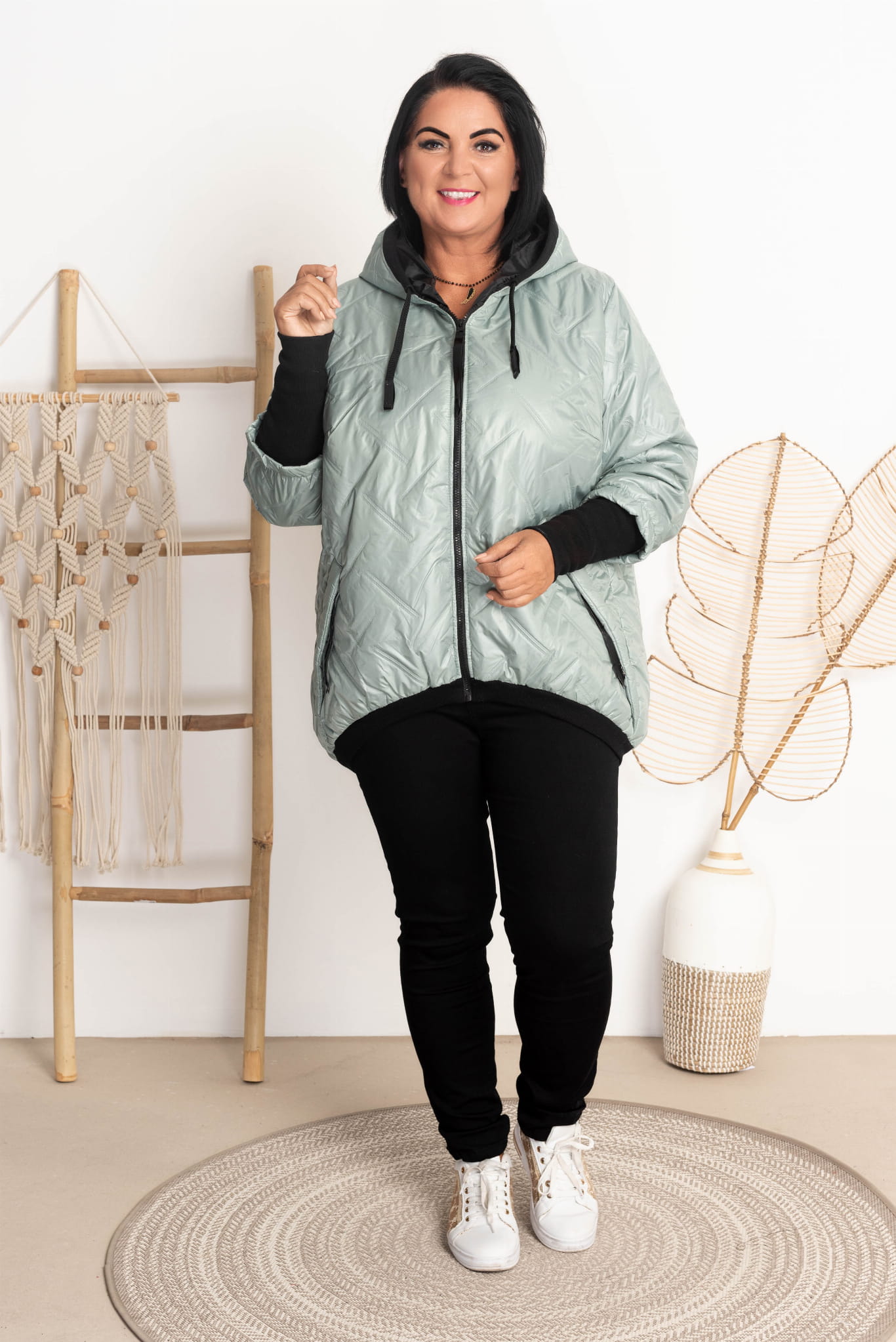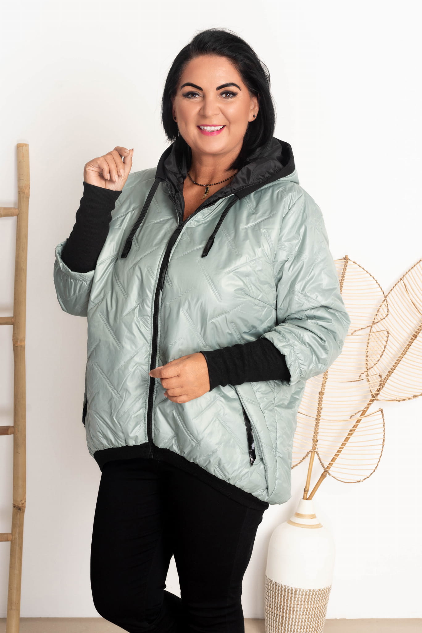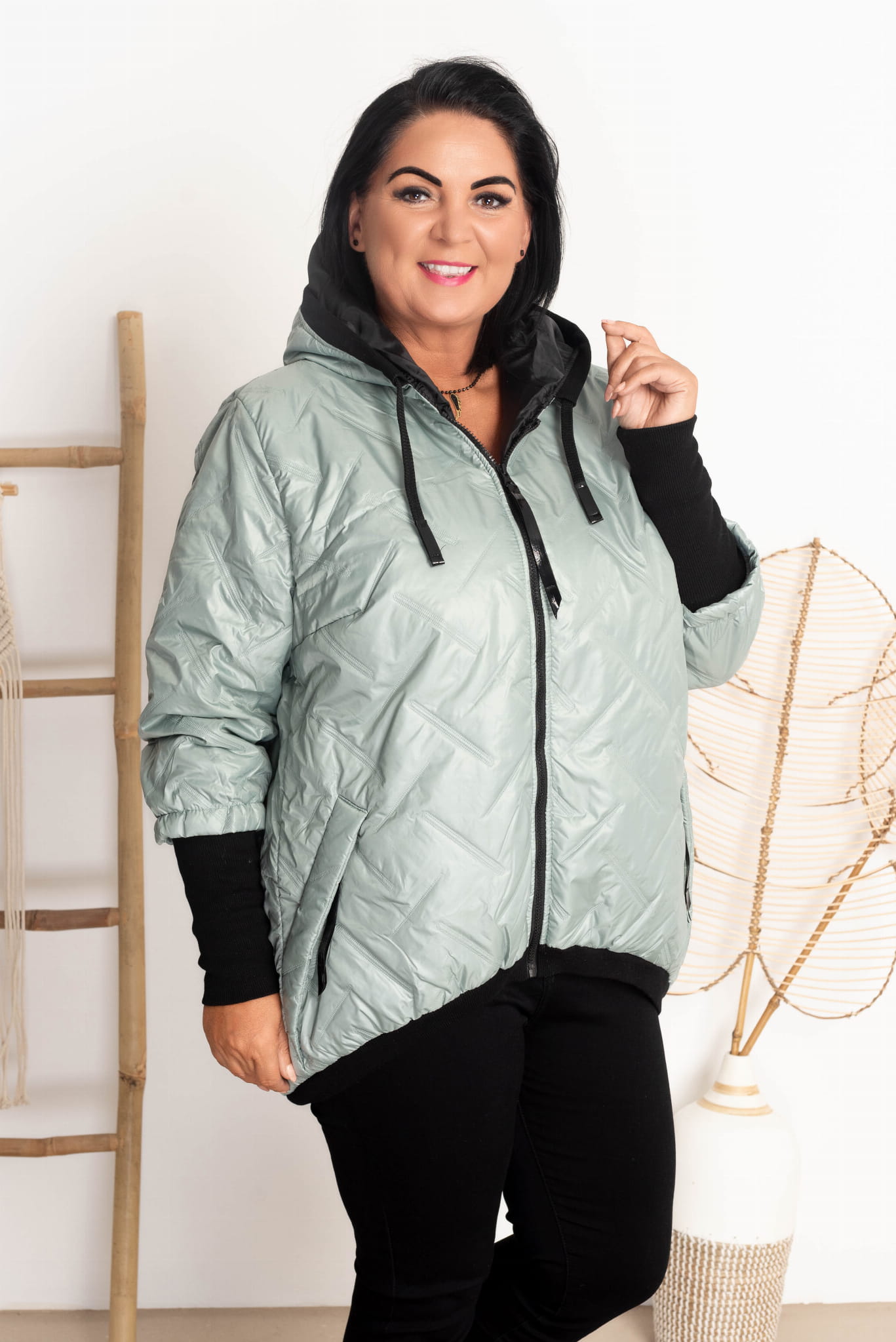 Modna kurtka z kapturem plus size.