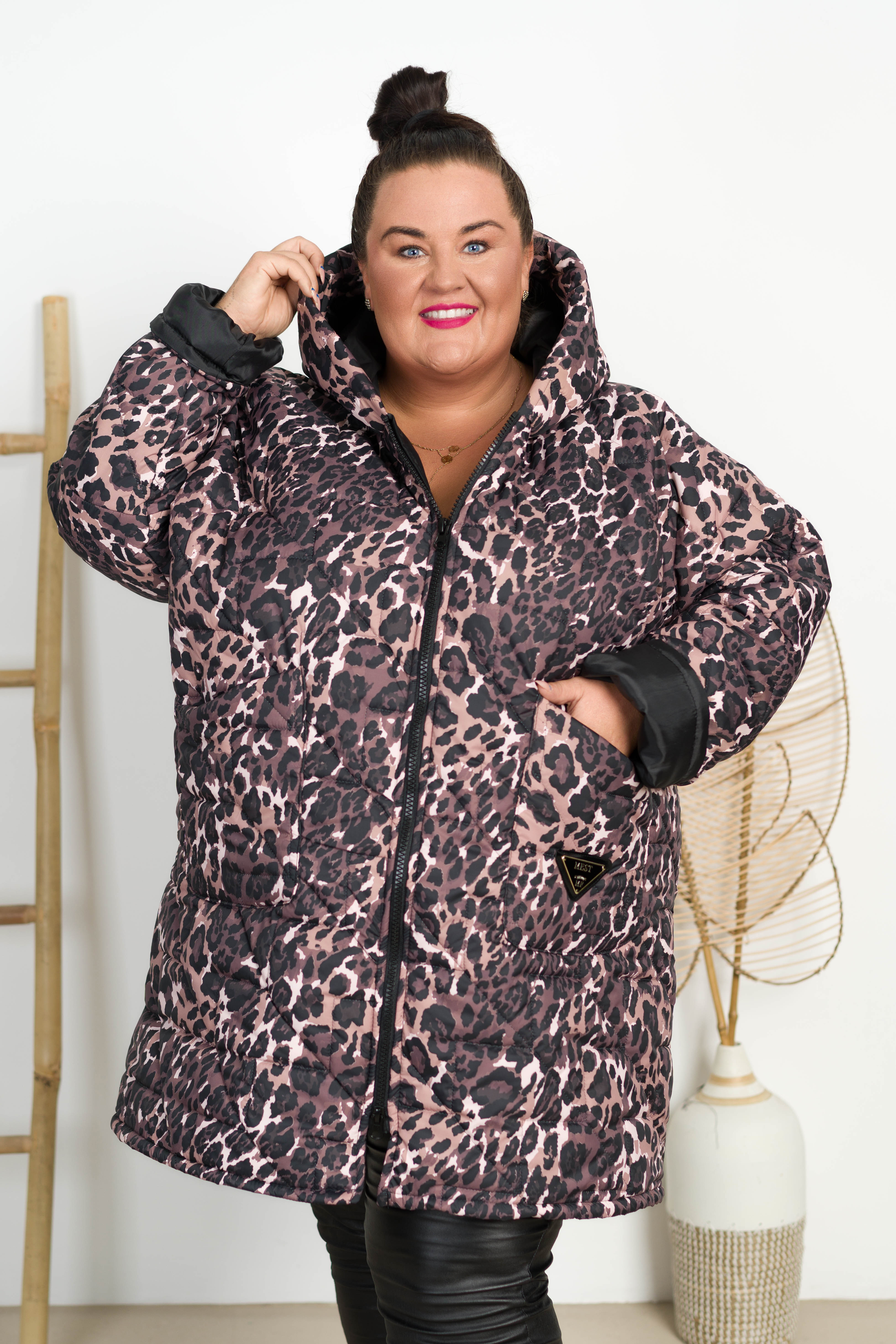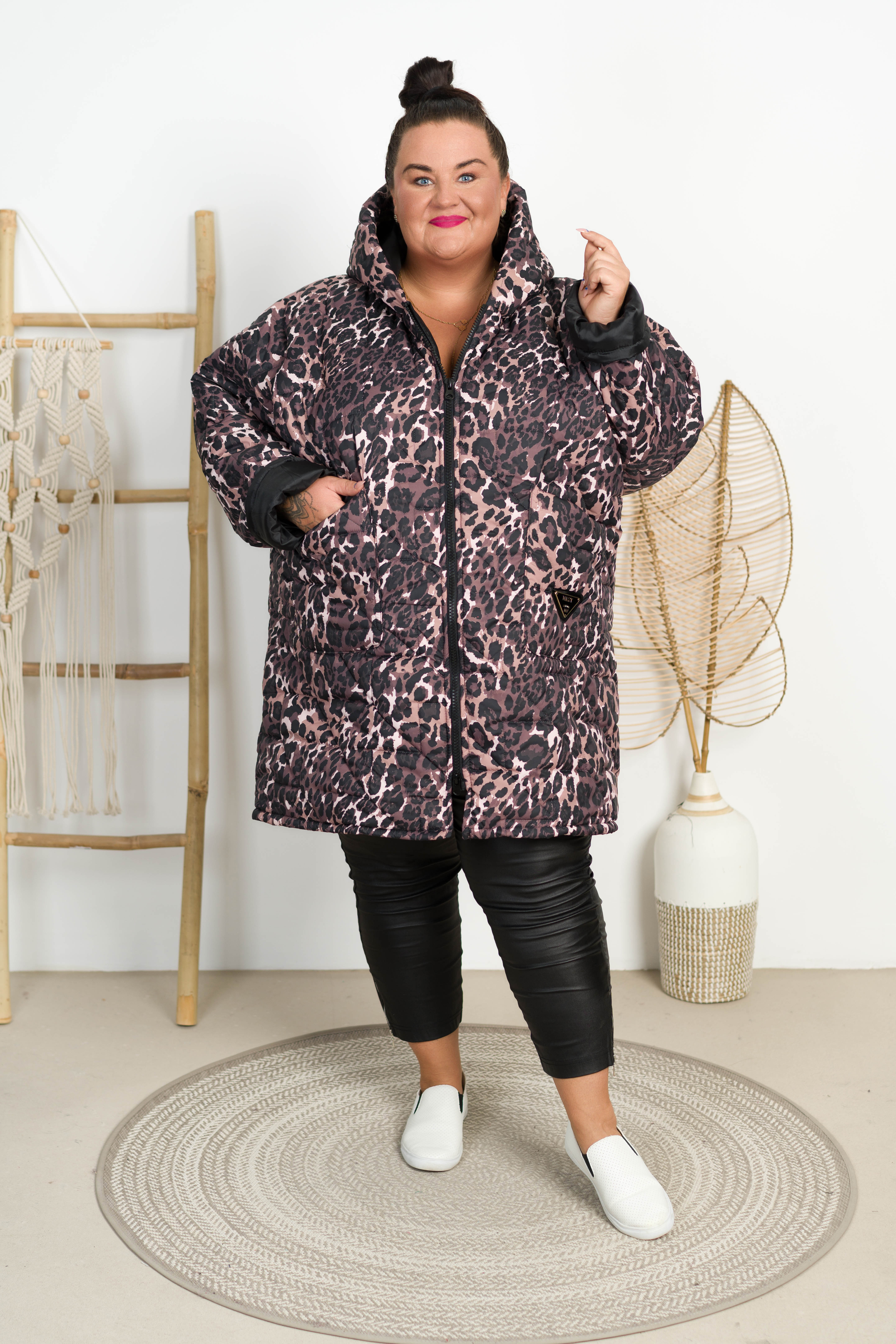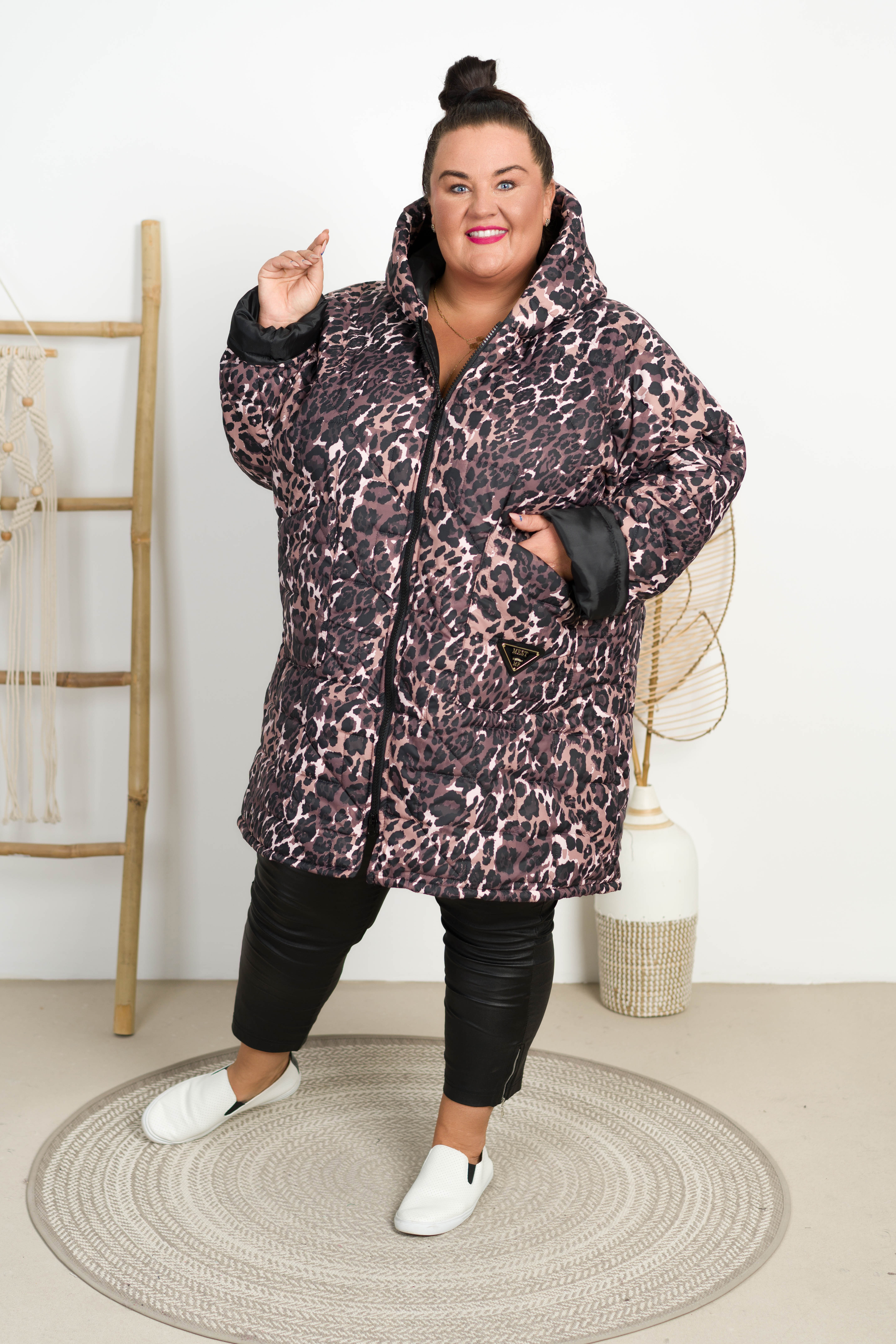 Kurtka Oversize na zimę YOLO panterka #3 Plus Size 50-58