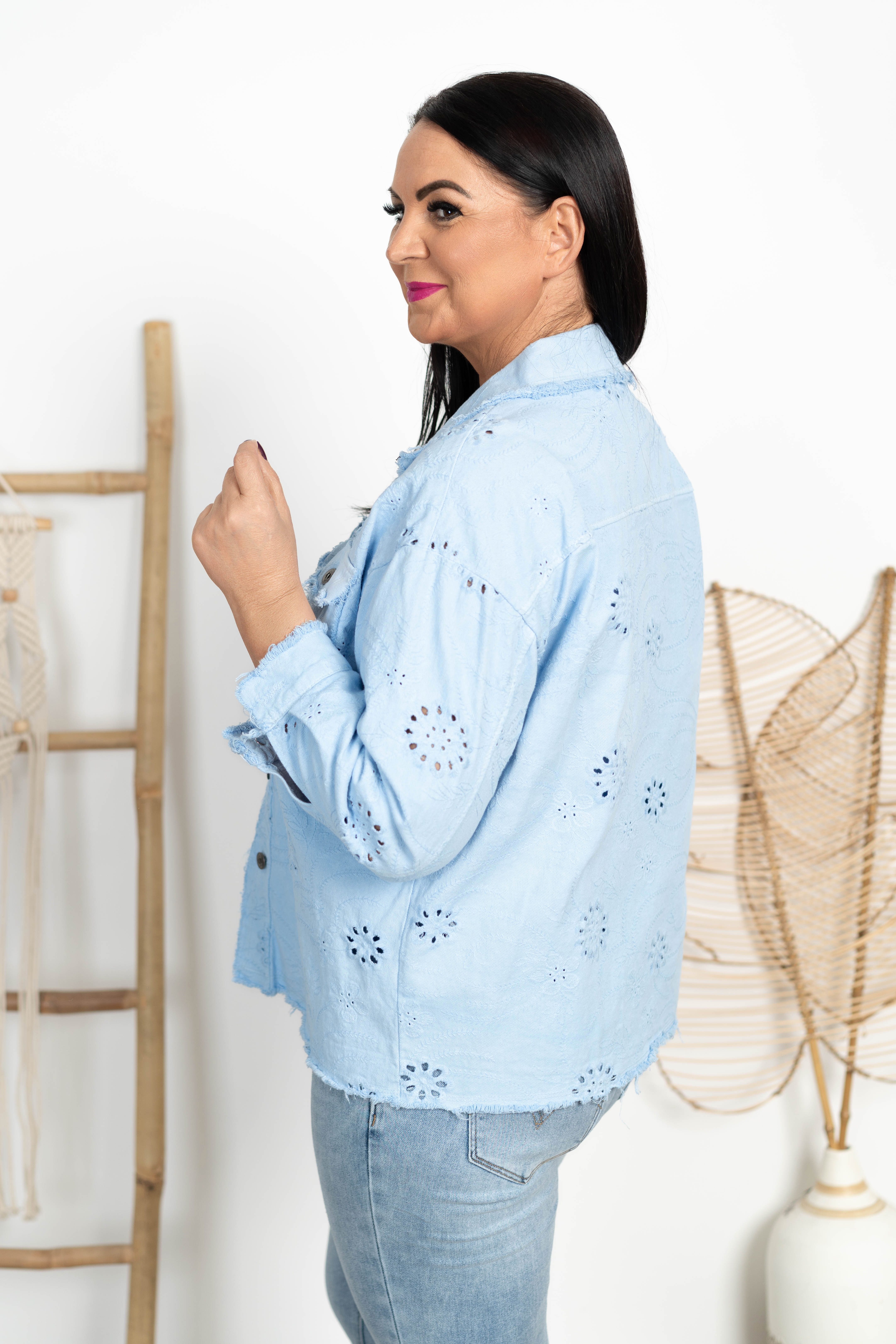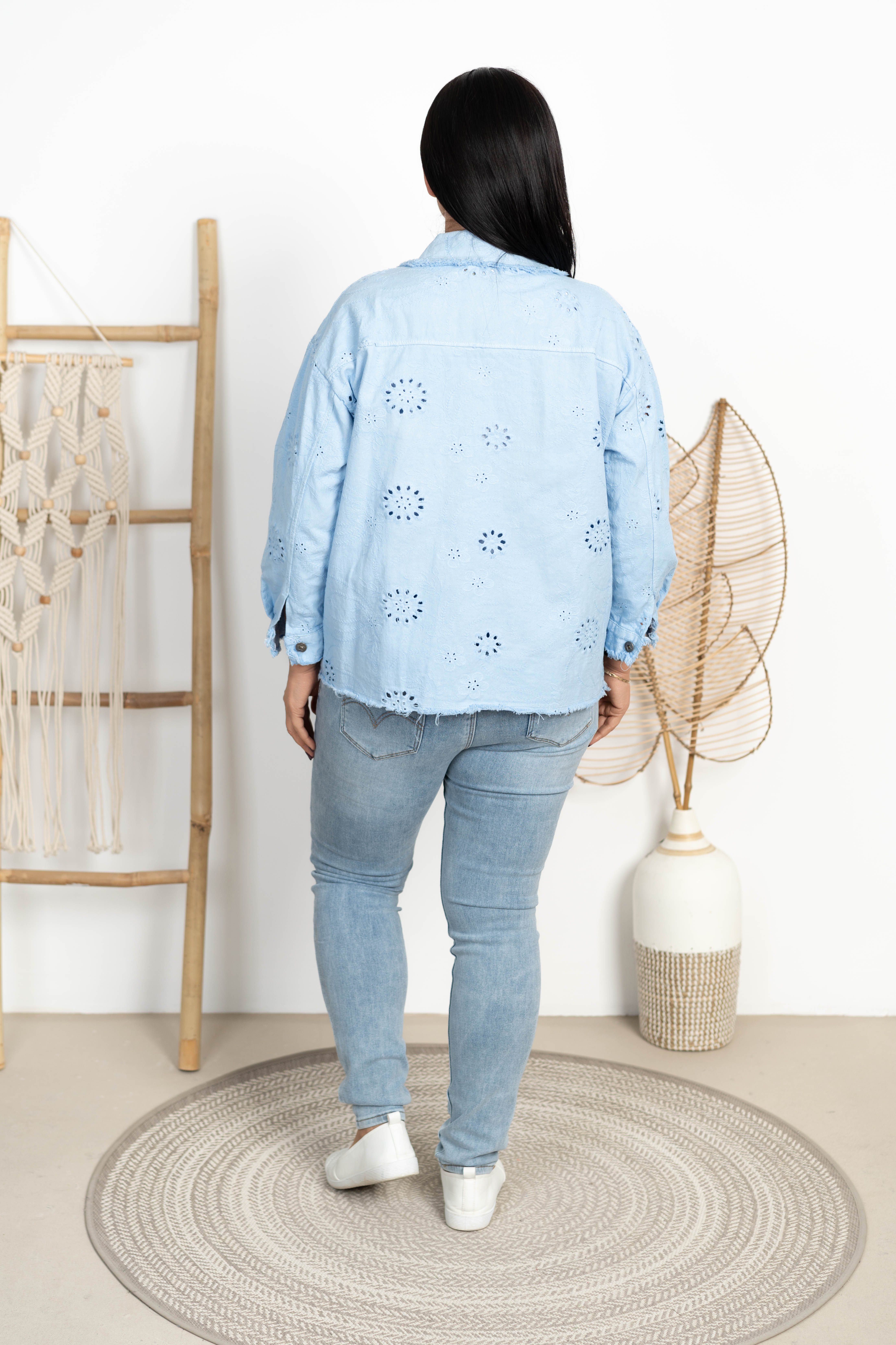 Kurtka jeansowa ażurowa FRIDAY błękitna Plus Size 42/48