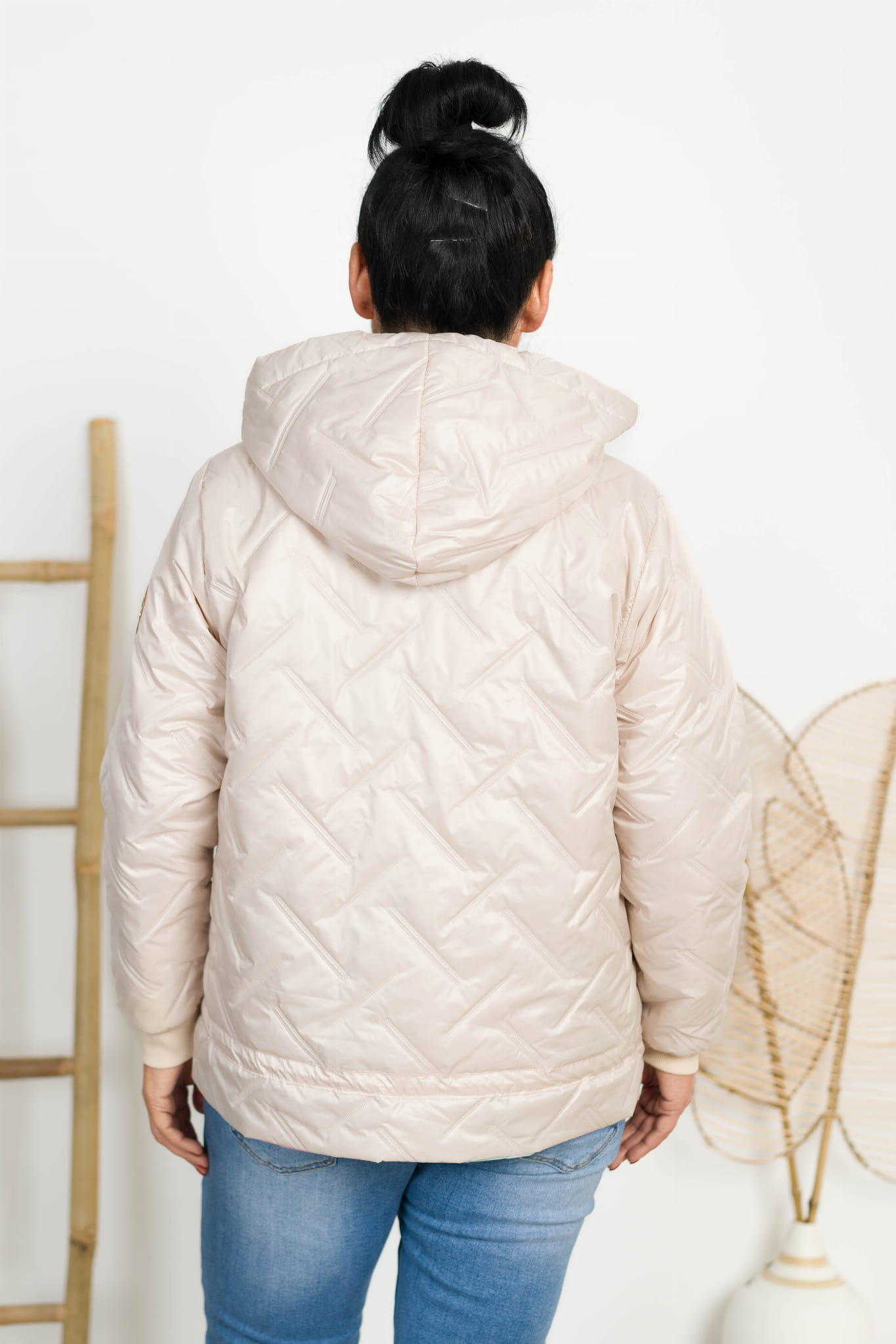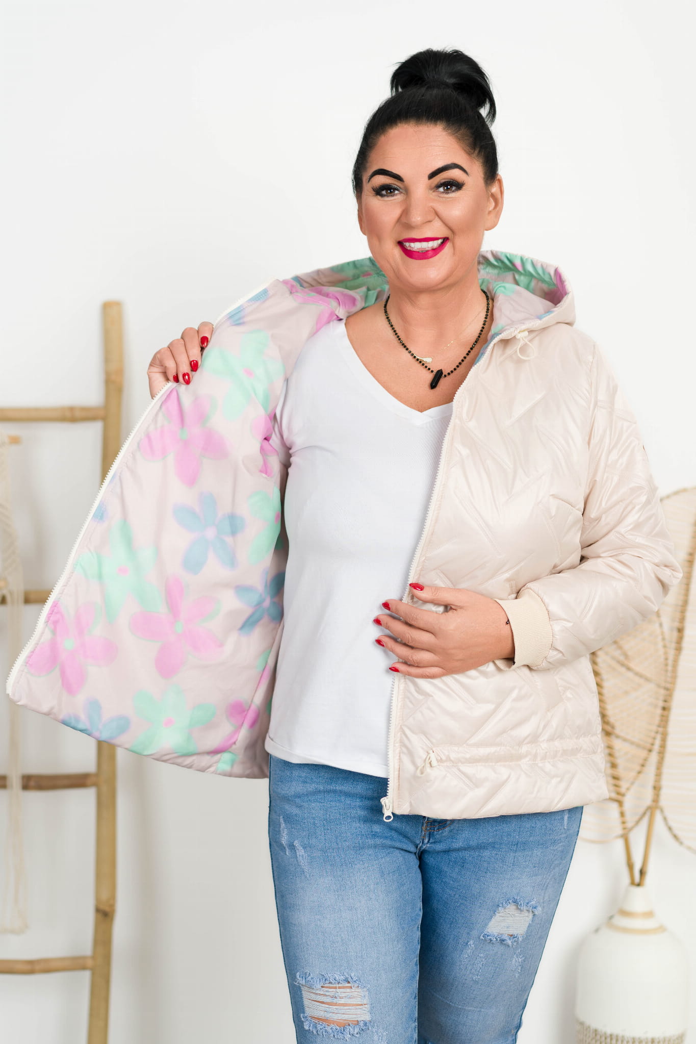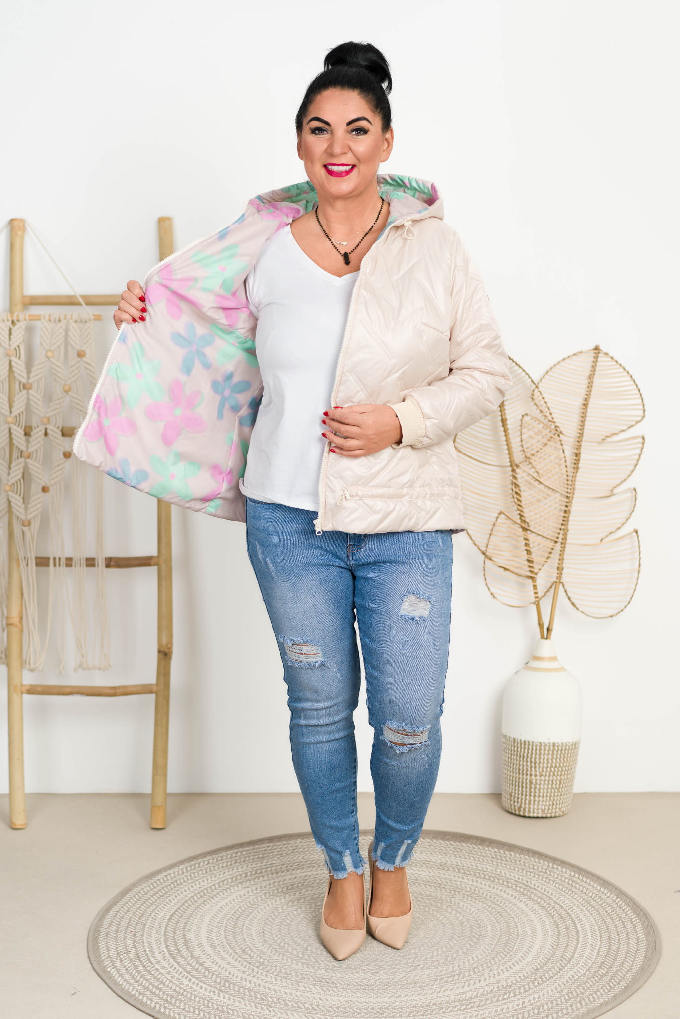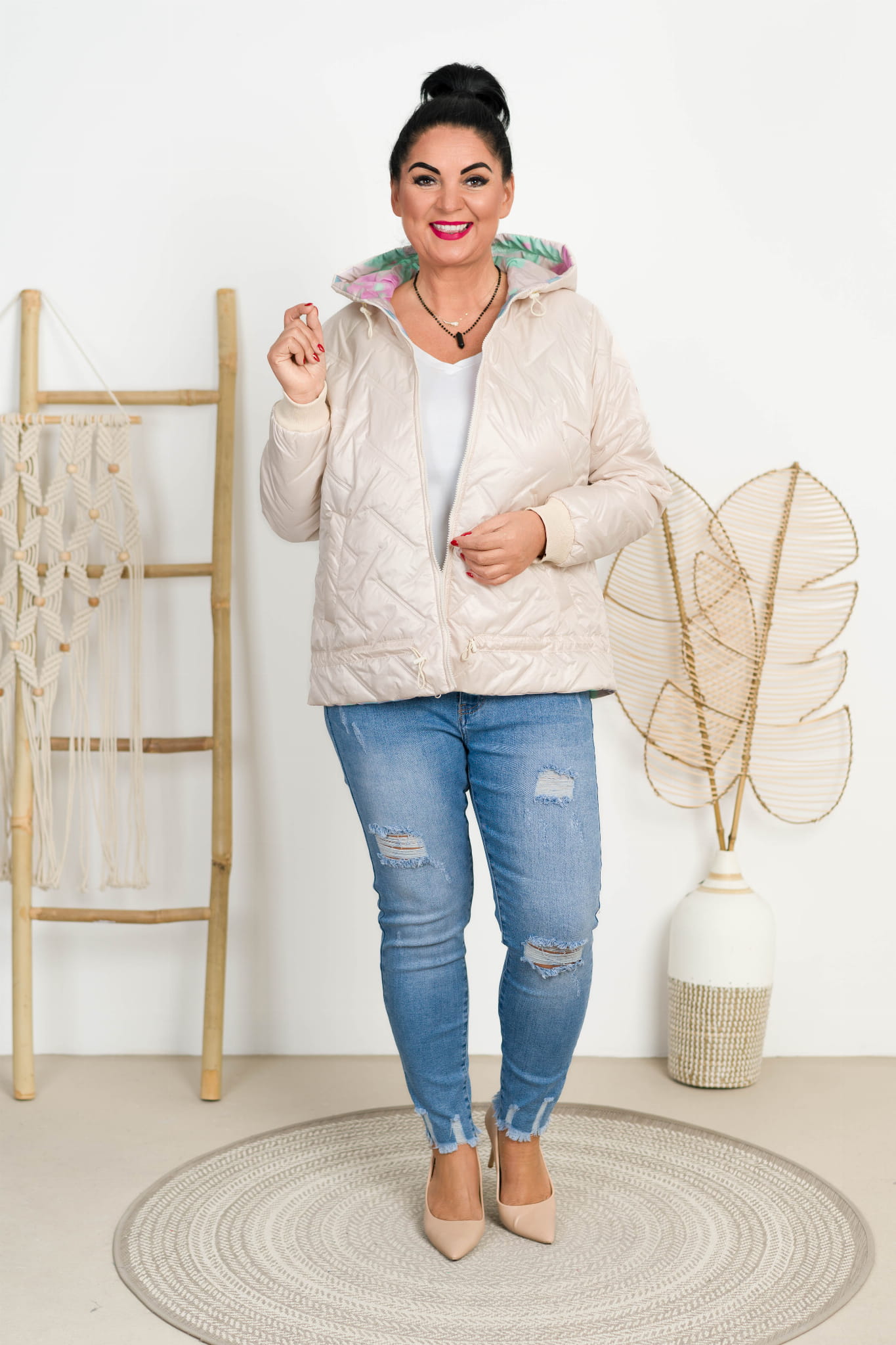 Kurtka na kolorowej podszewce RONDA beżowa Plus Size 44-50