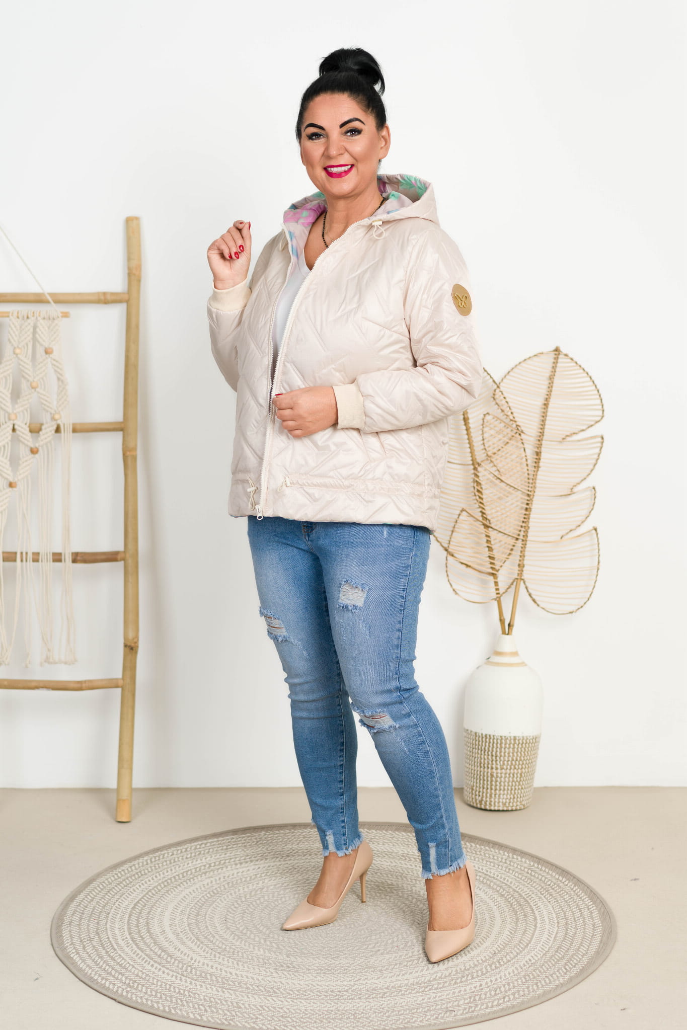 Modna kurtka z kapturem plus size.