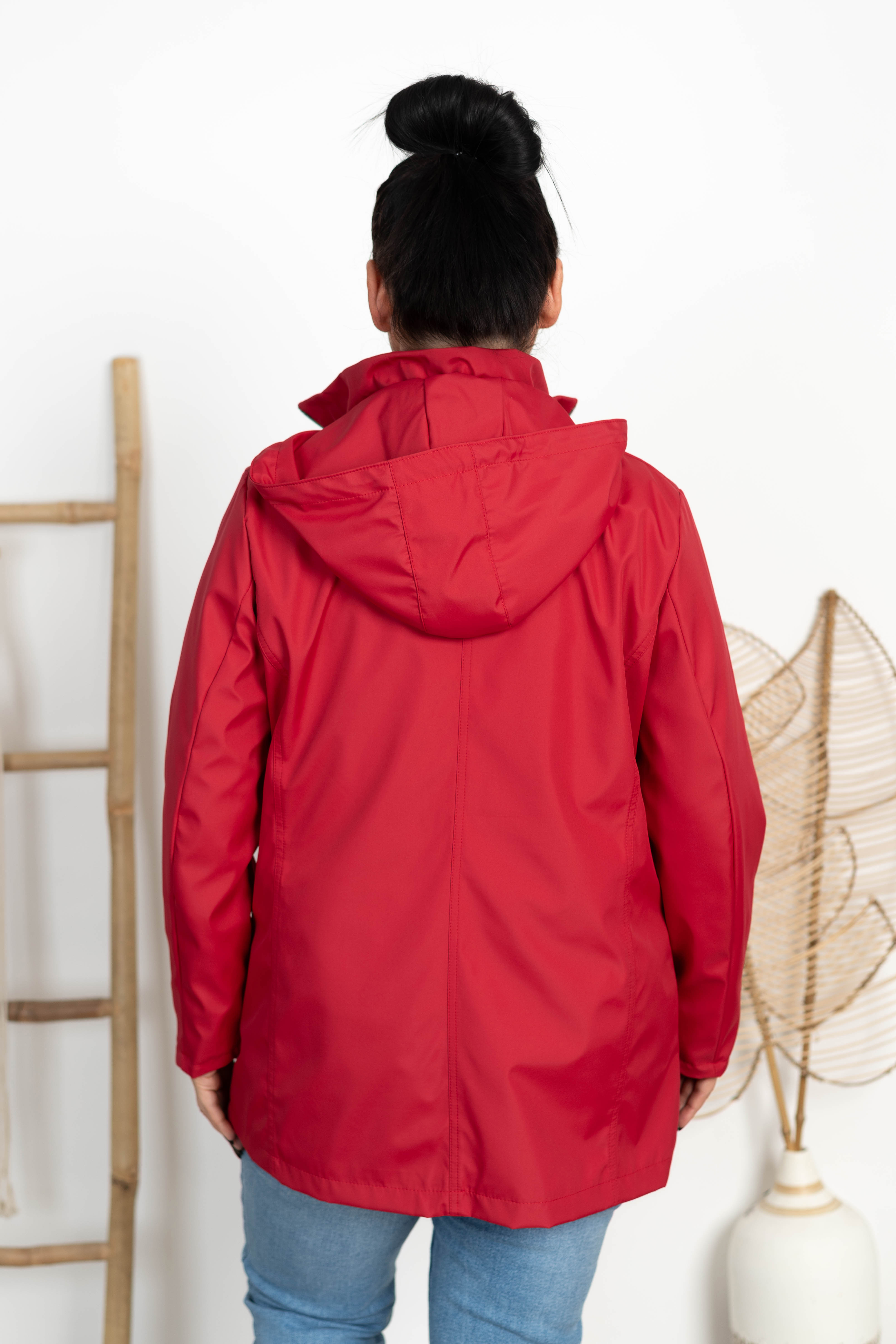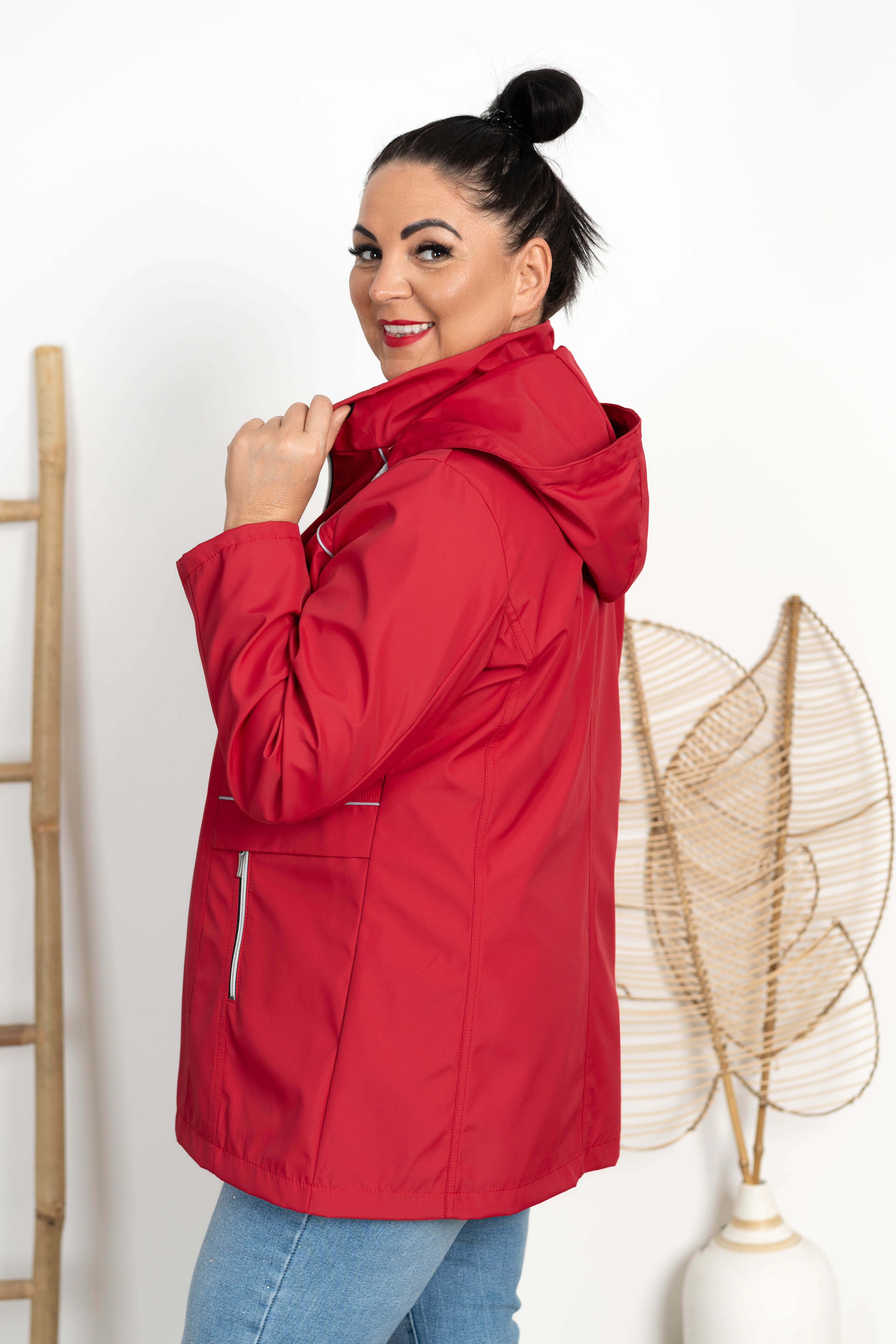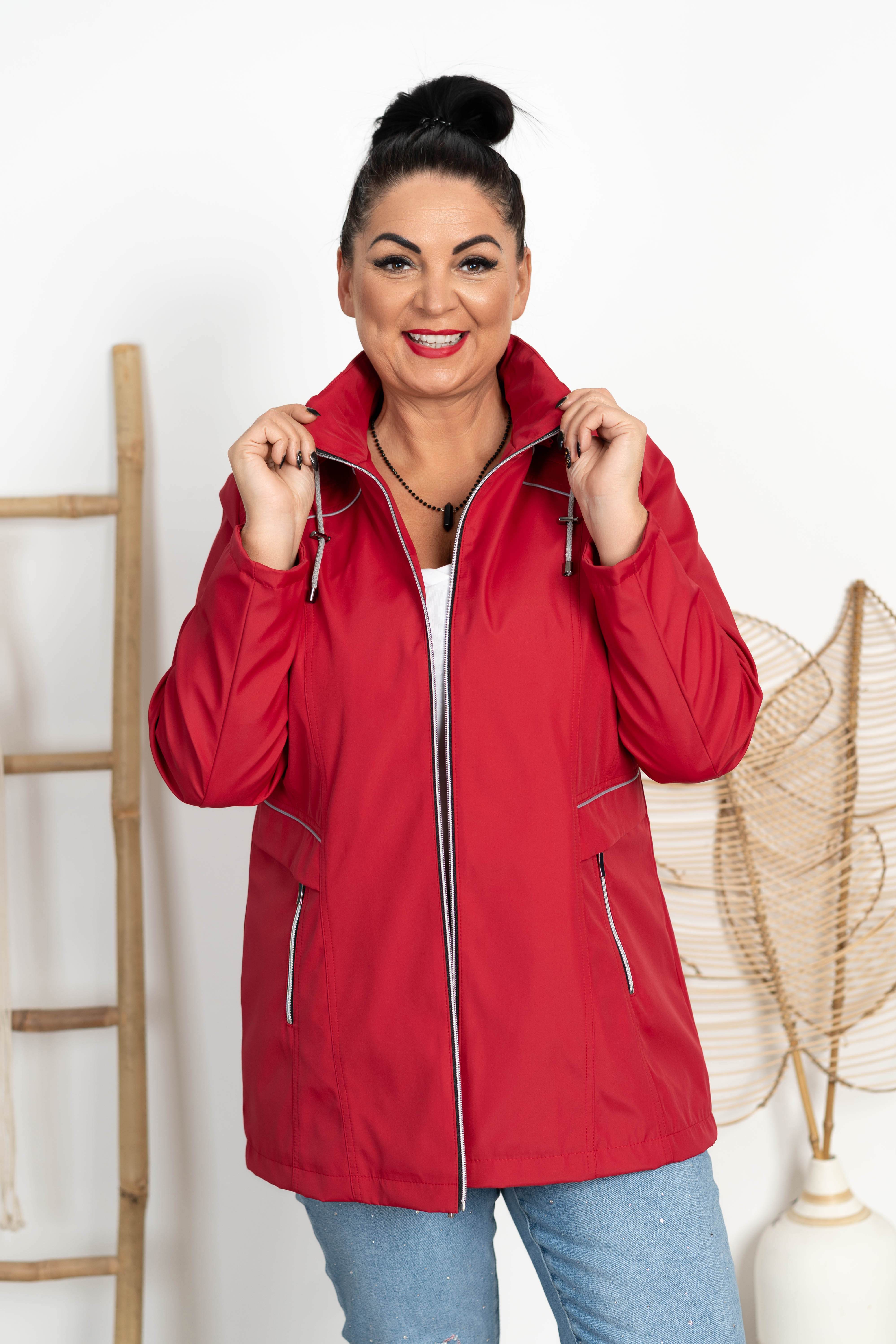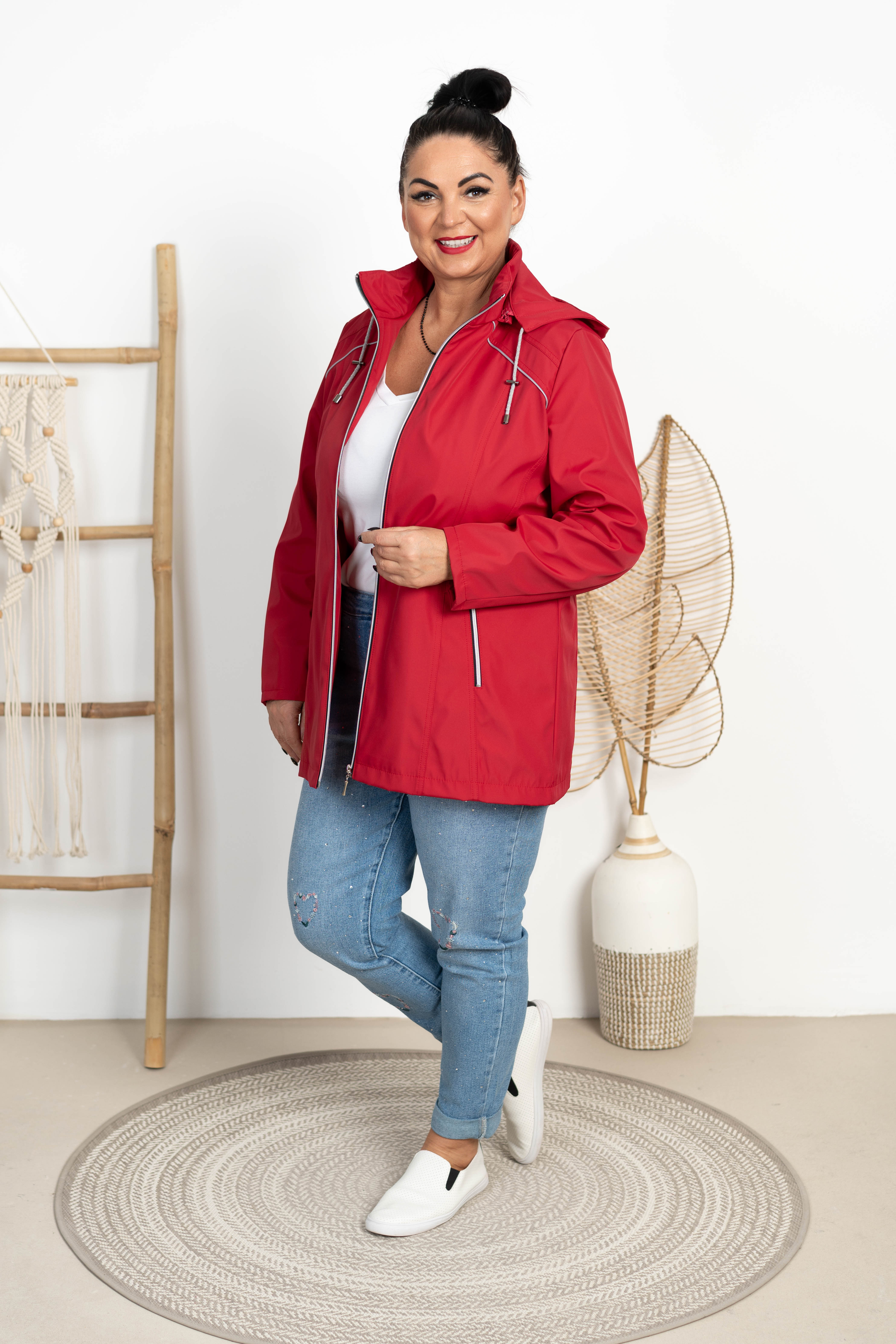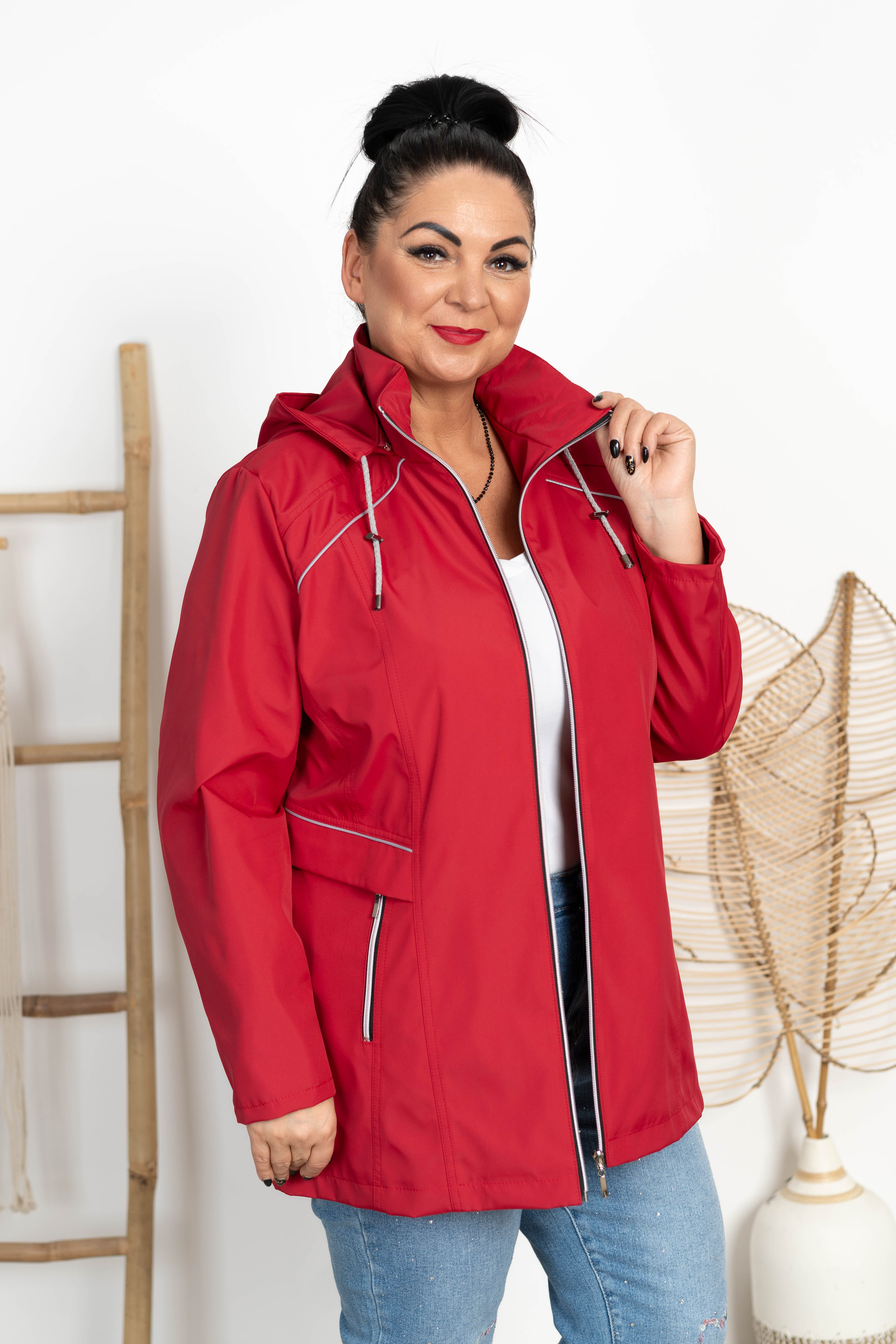 Kurtka z odpinanym kapturem ELA ciemna czerwona Plus Size 44-52
