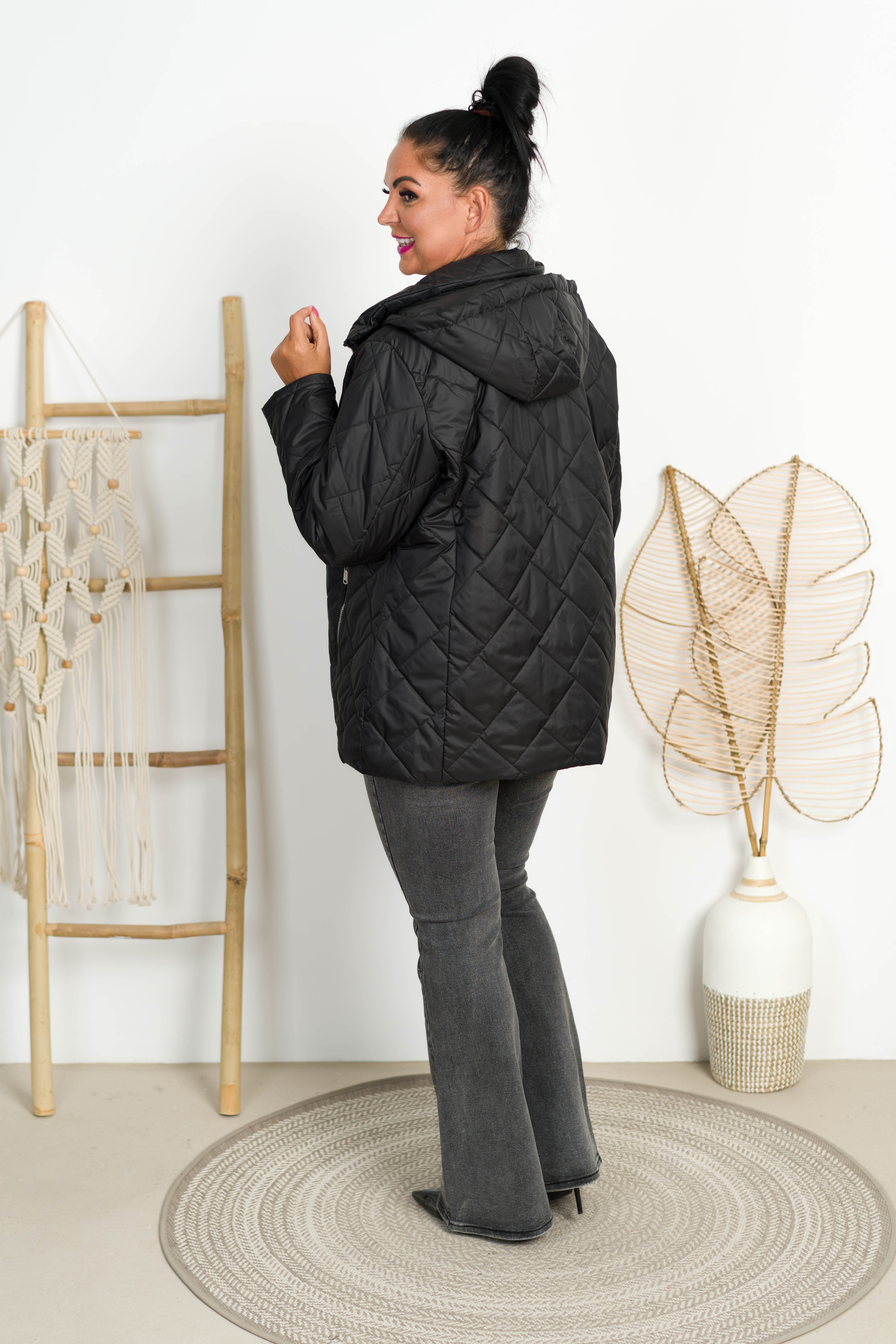 Kurtka z odpinanym kapturem MIRA czarna Plus Size 44-52
