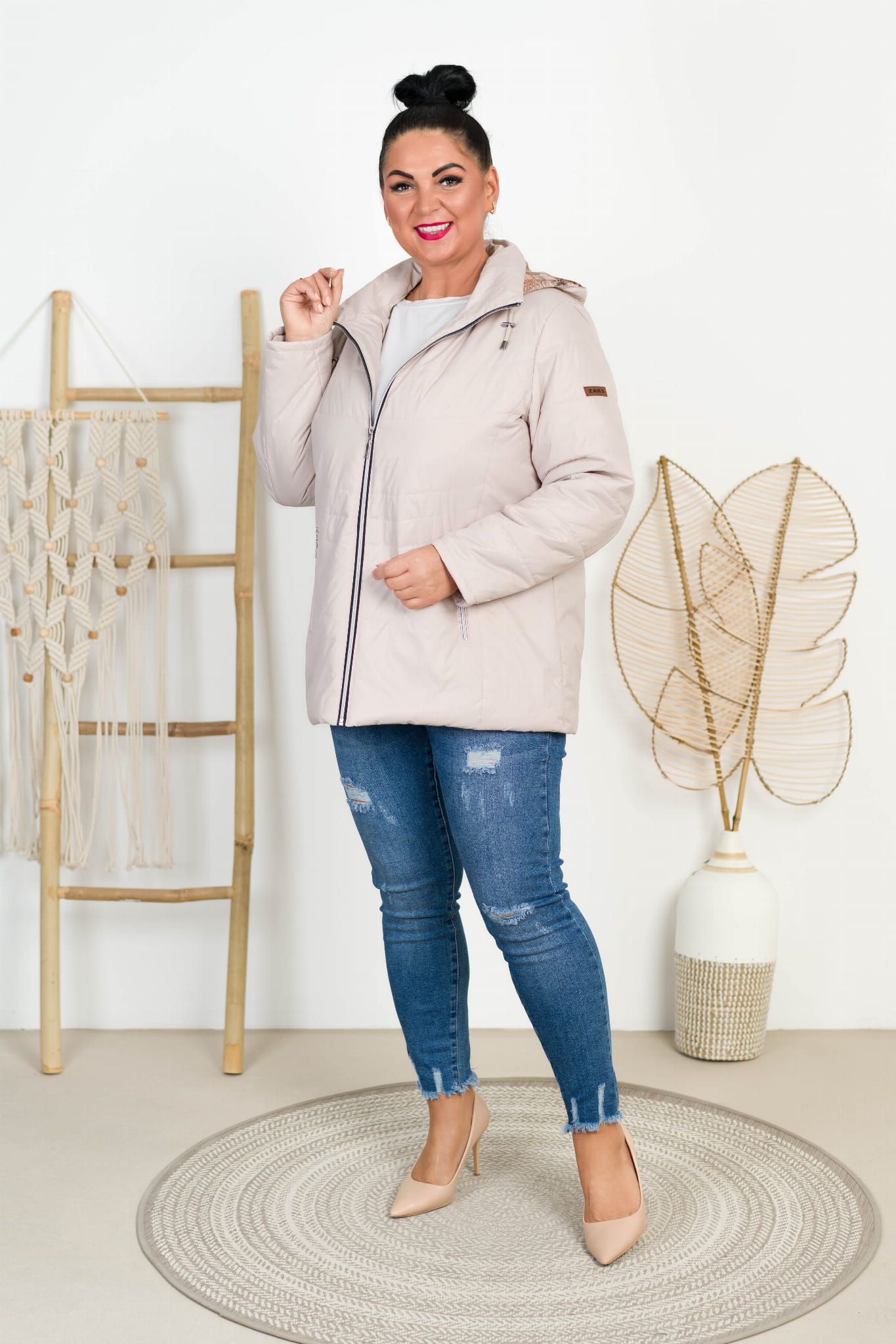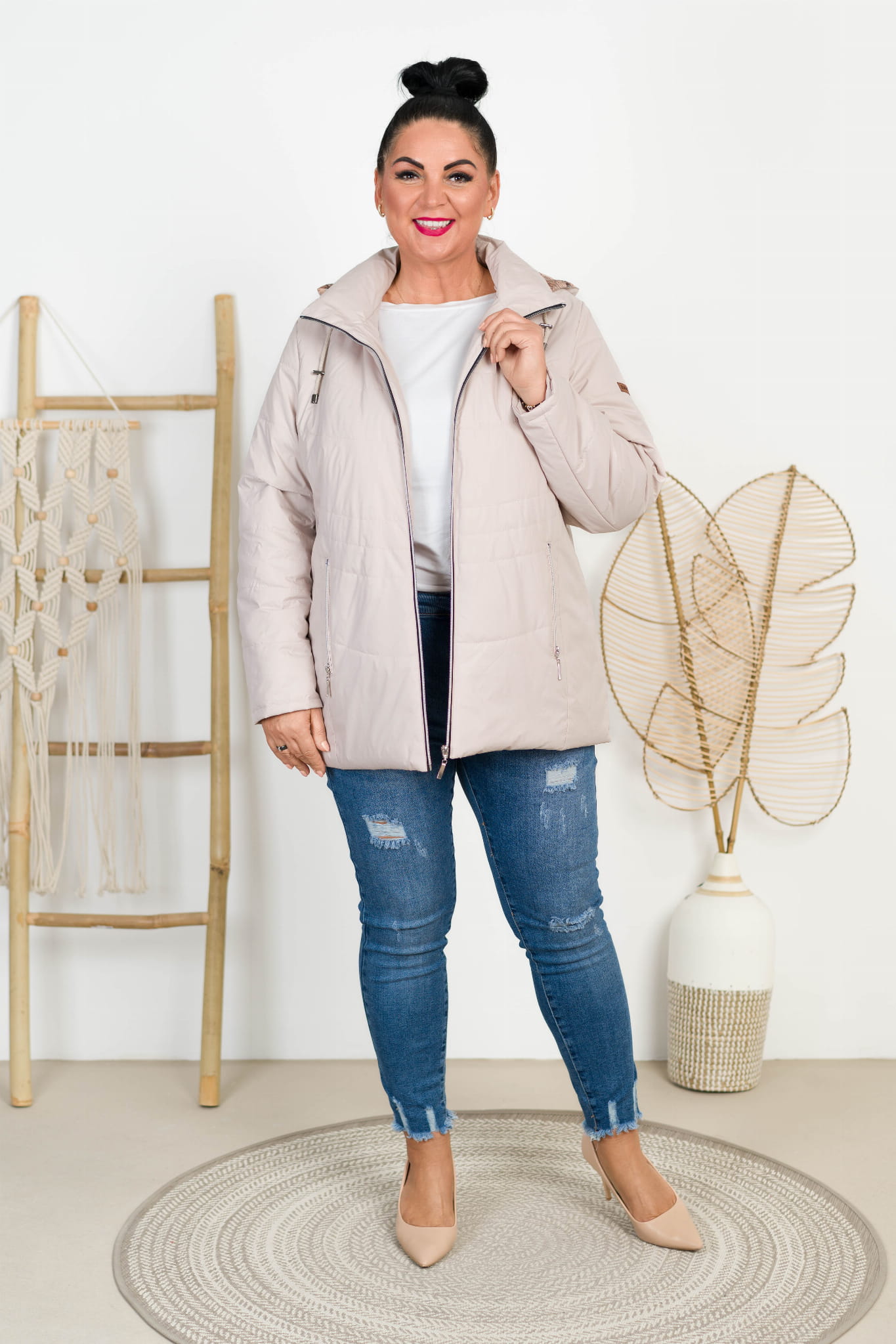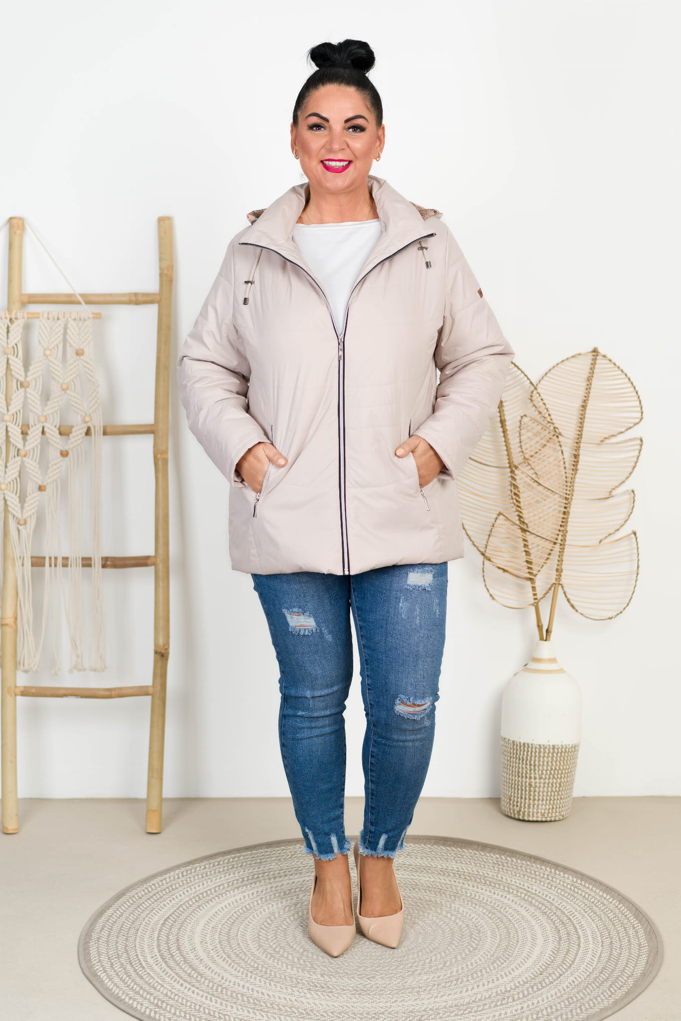 Kurtka z odpinanym kapturem TOLA beżowa Plus Size 44-52