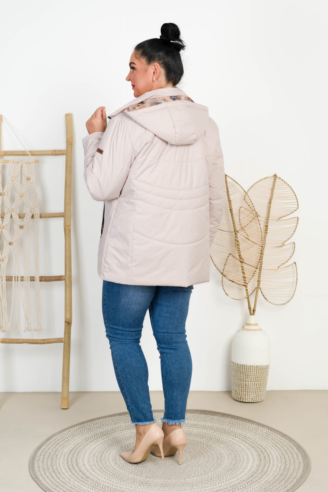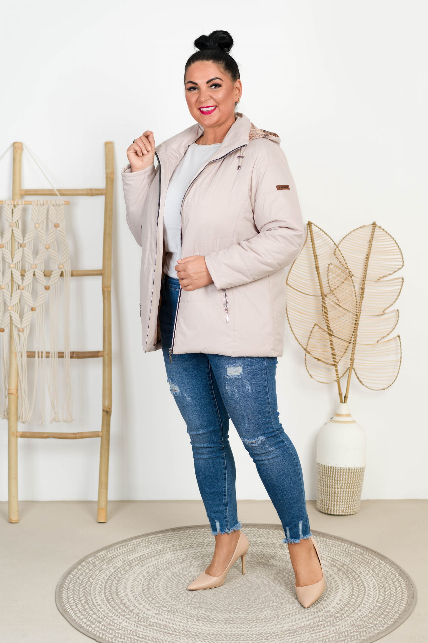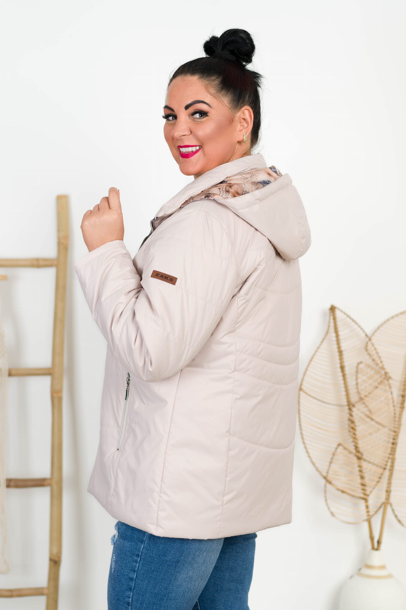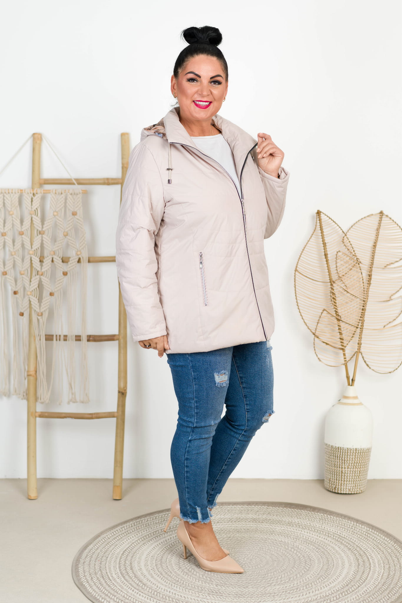 Kurtka z odpinanym kapturem TOLA beżowa Plus Size 44-52